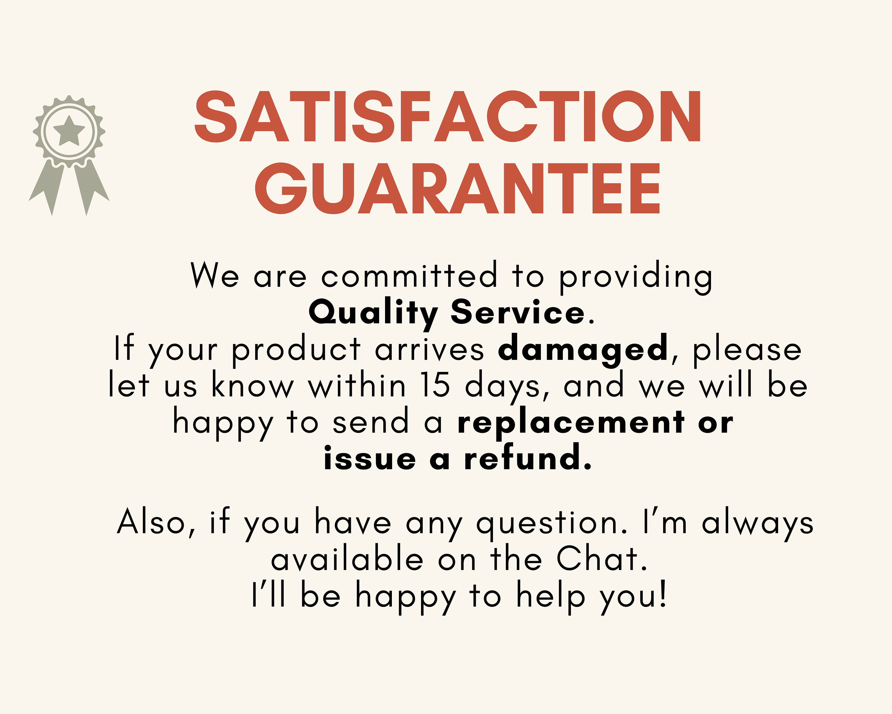 • If your purchase arrives to you defective/damaged, we will fully refund your order or send a replacement to you.