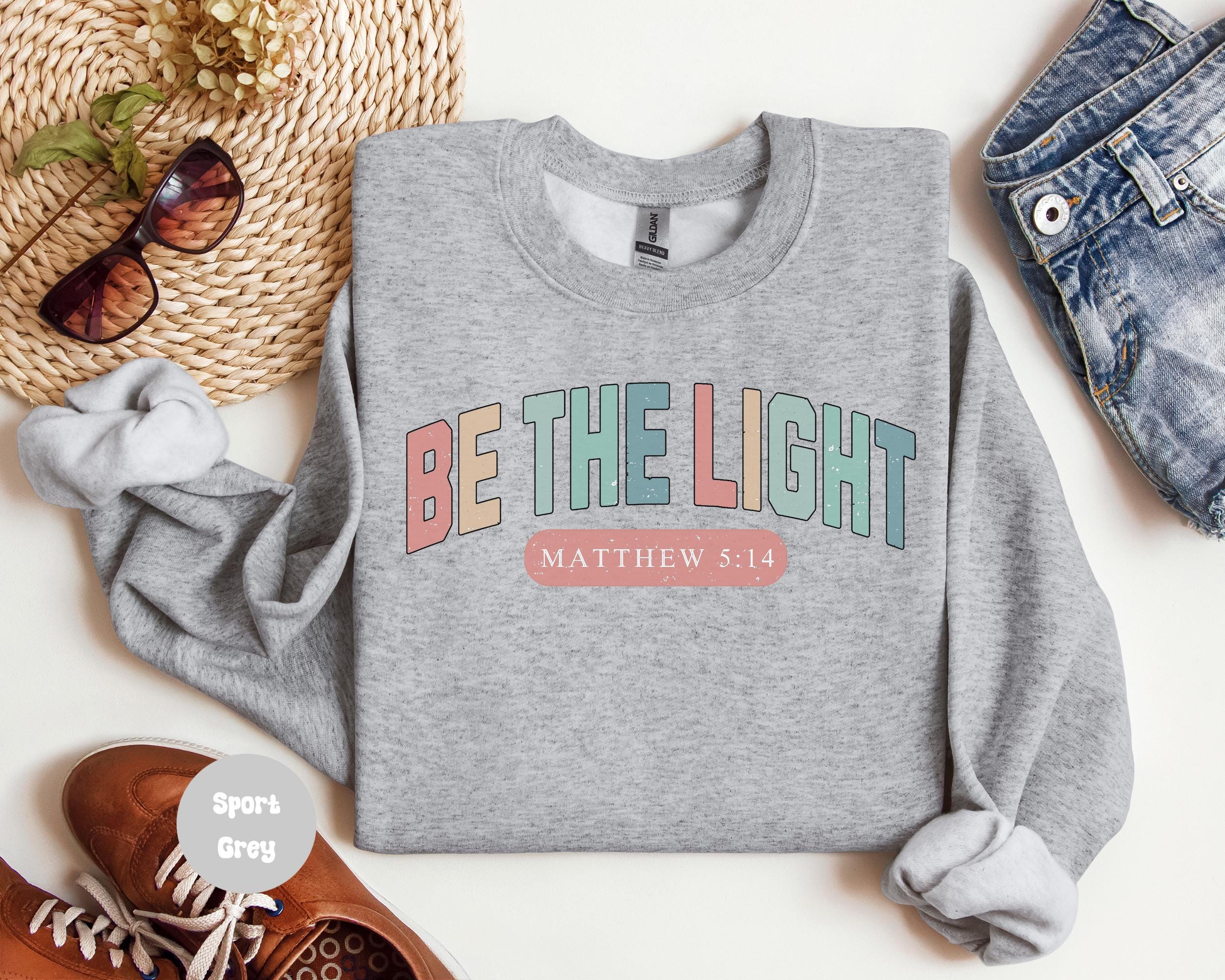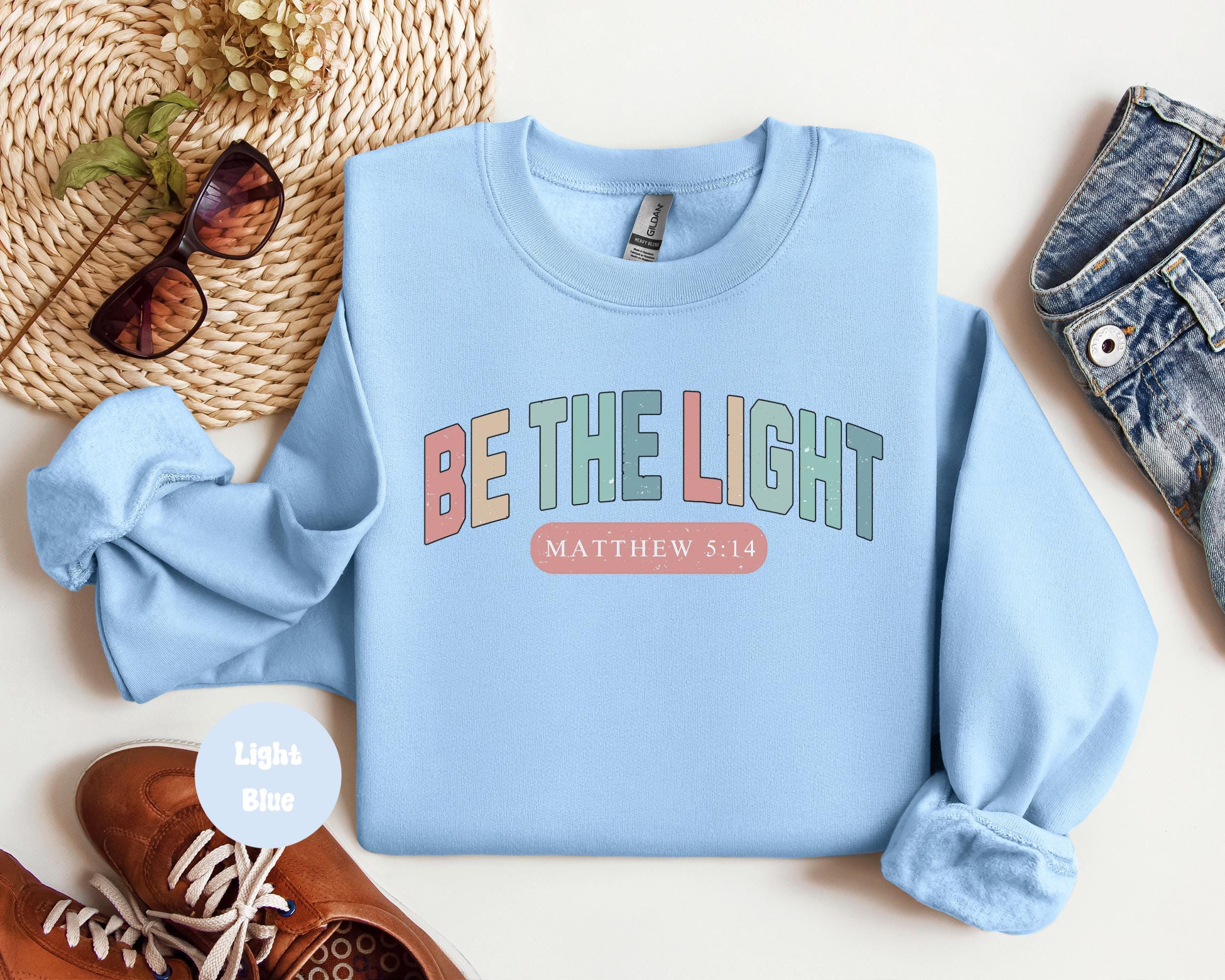Be The Light Back Print Sweatshirt Gift For Christians,Mathew 5:14 Sweatshirt,Bible Verse Sweater,Religious Hoodie,Faith Outfit,Church Shirt