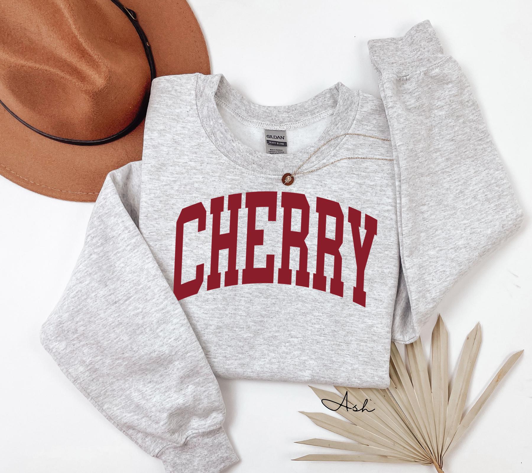 Cherry Sweatshirt, Retro College Letter Sweater, Cute Fruit Crewneck, Cherry Aesthetic Pullover, Vintage Varsity Shirt, Gift for Her