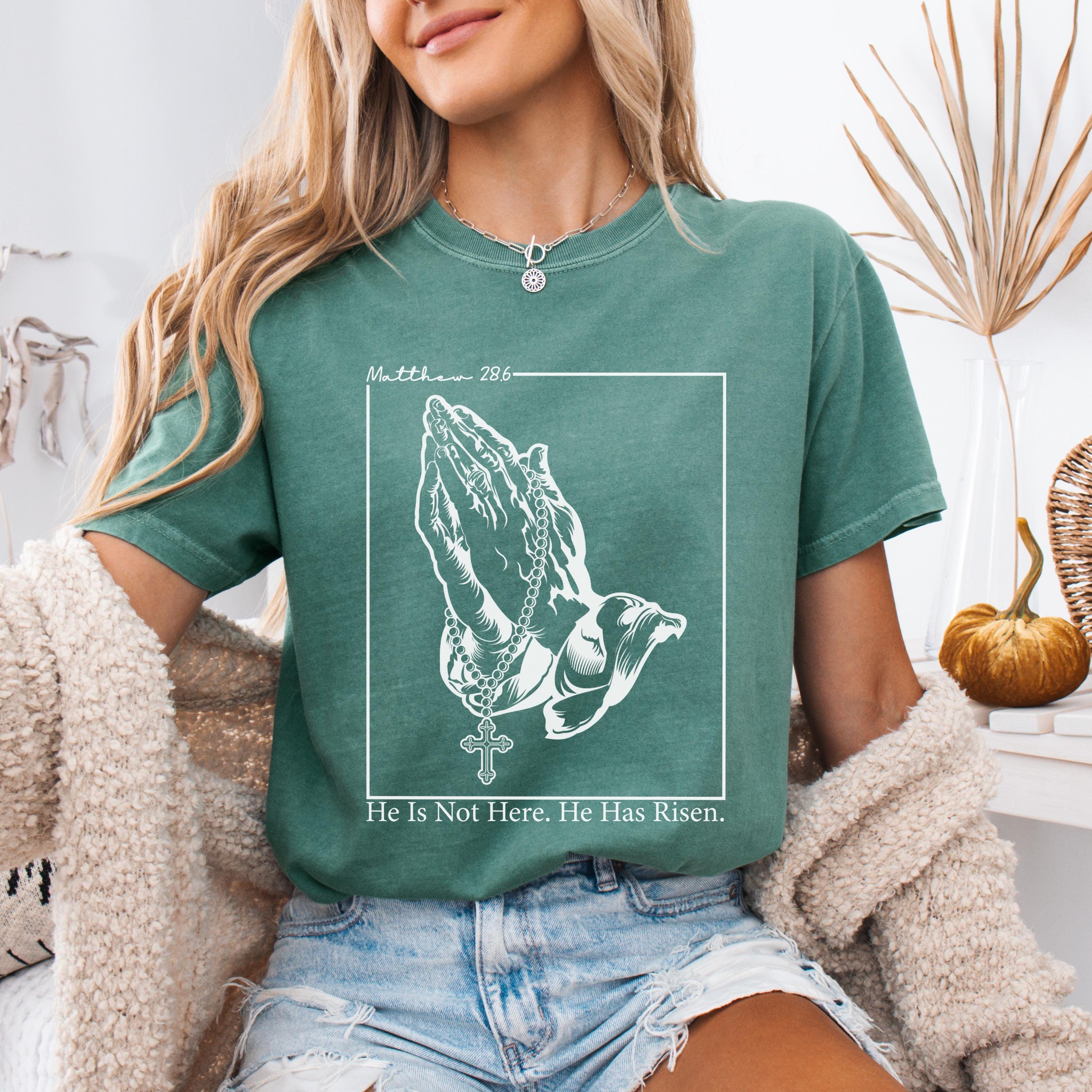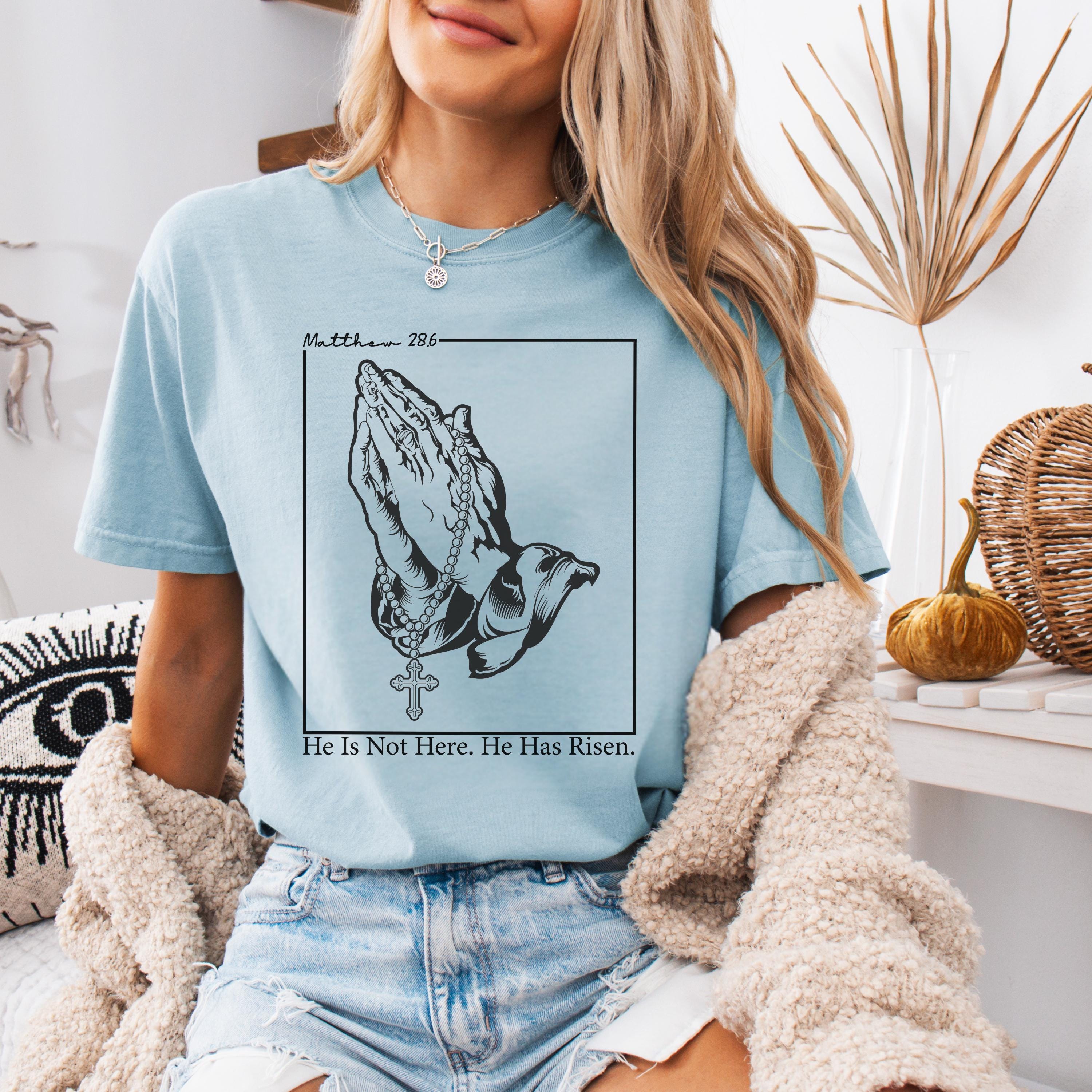 Comfort Colors® He Has Risen Shirt, Matthew 28:6 T-Shirt, Christian Bible Verse Tee, Religious Faith Shirt, Easter Gift For Women, Jesus Tee