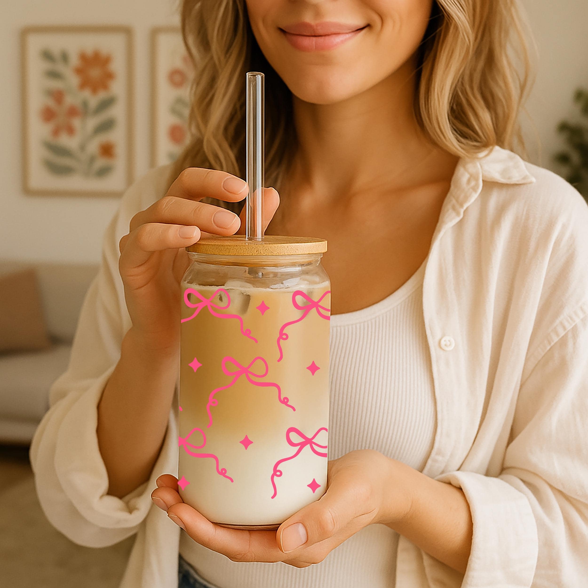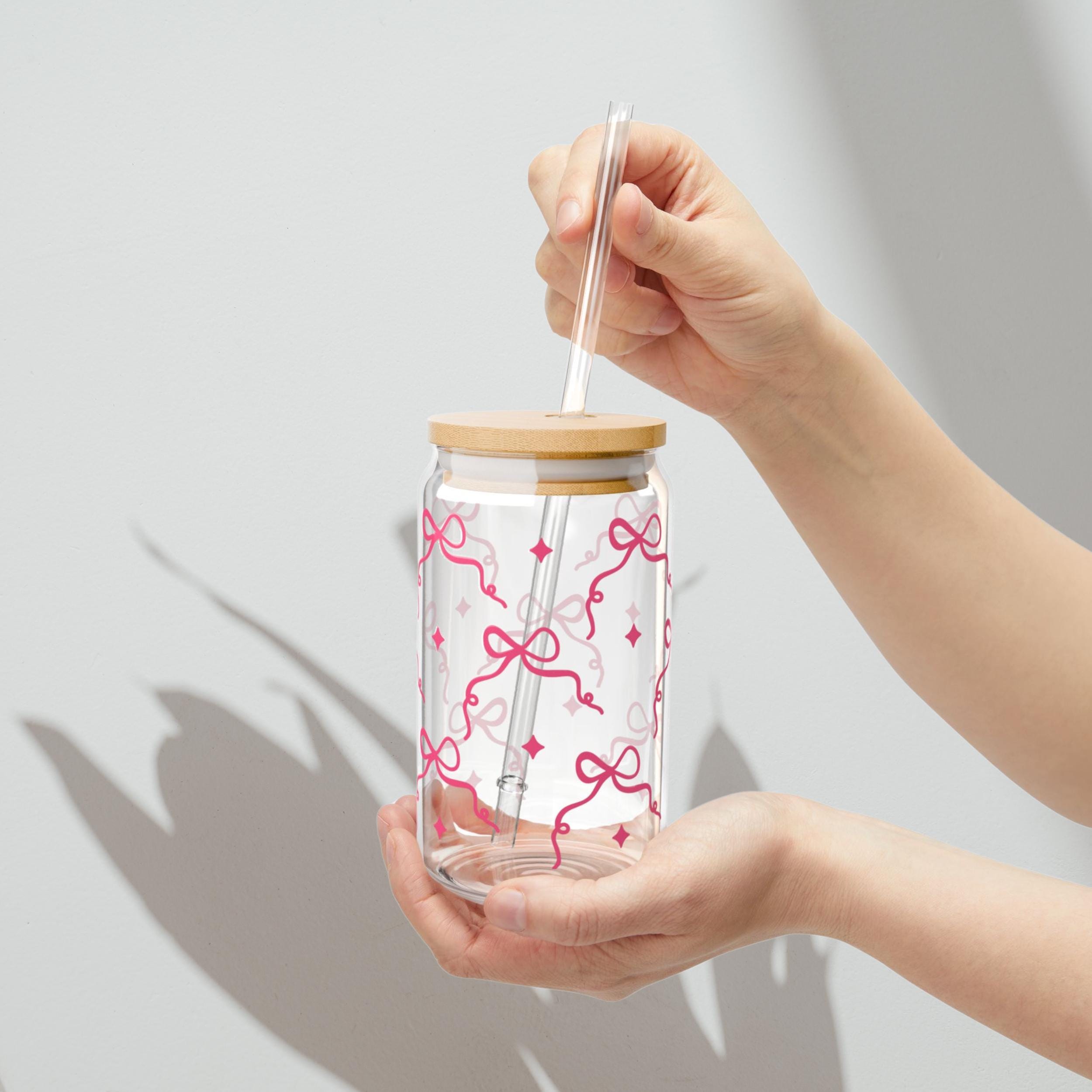 Pink Bow Cup, Coquette Bow Glass, Cute Bow Glass with Straw, Valentine's Day Cup, Gift for Her, Cute Cup, Coquette Decor, Cute Glass Gift