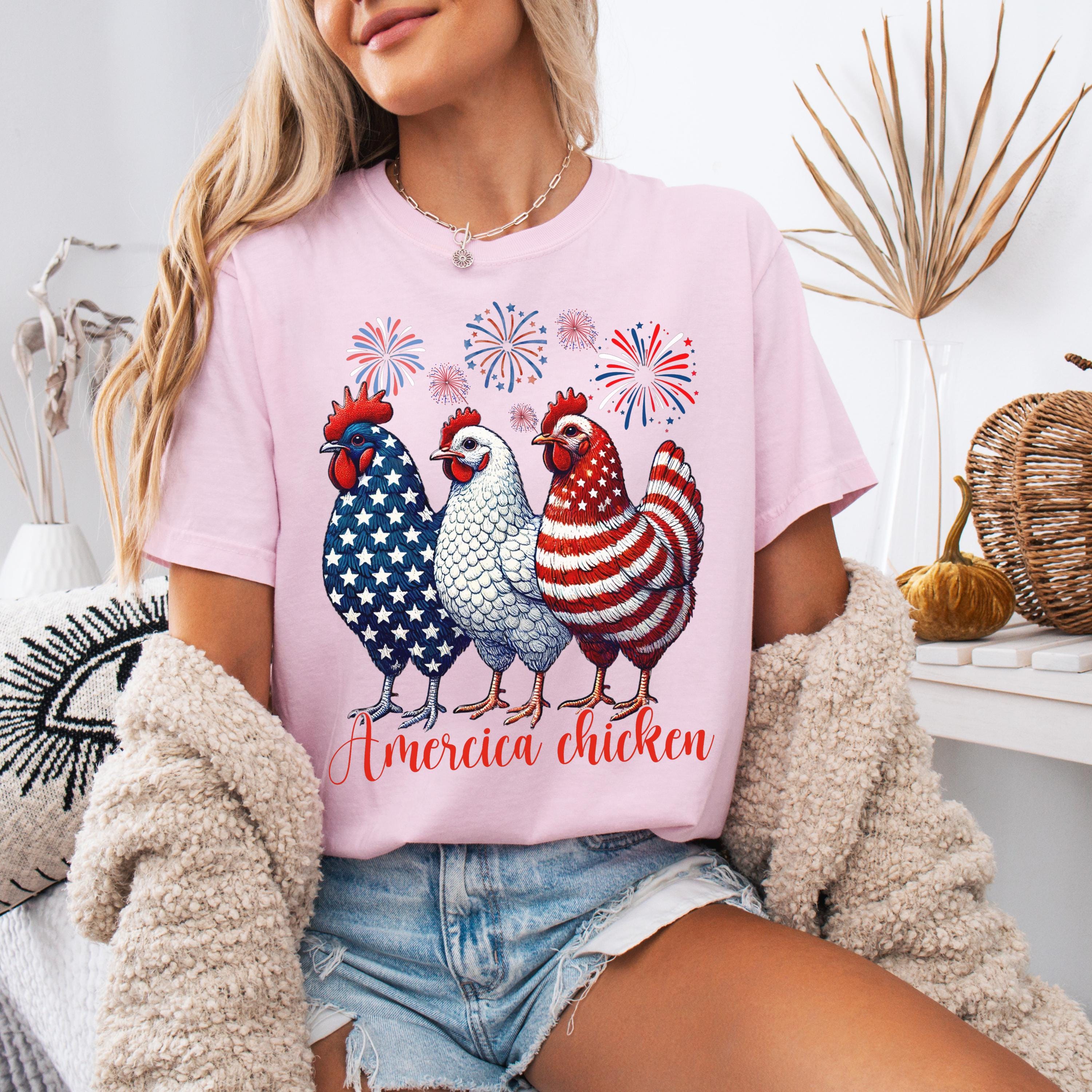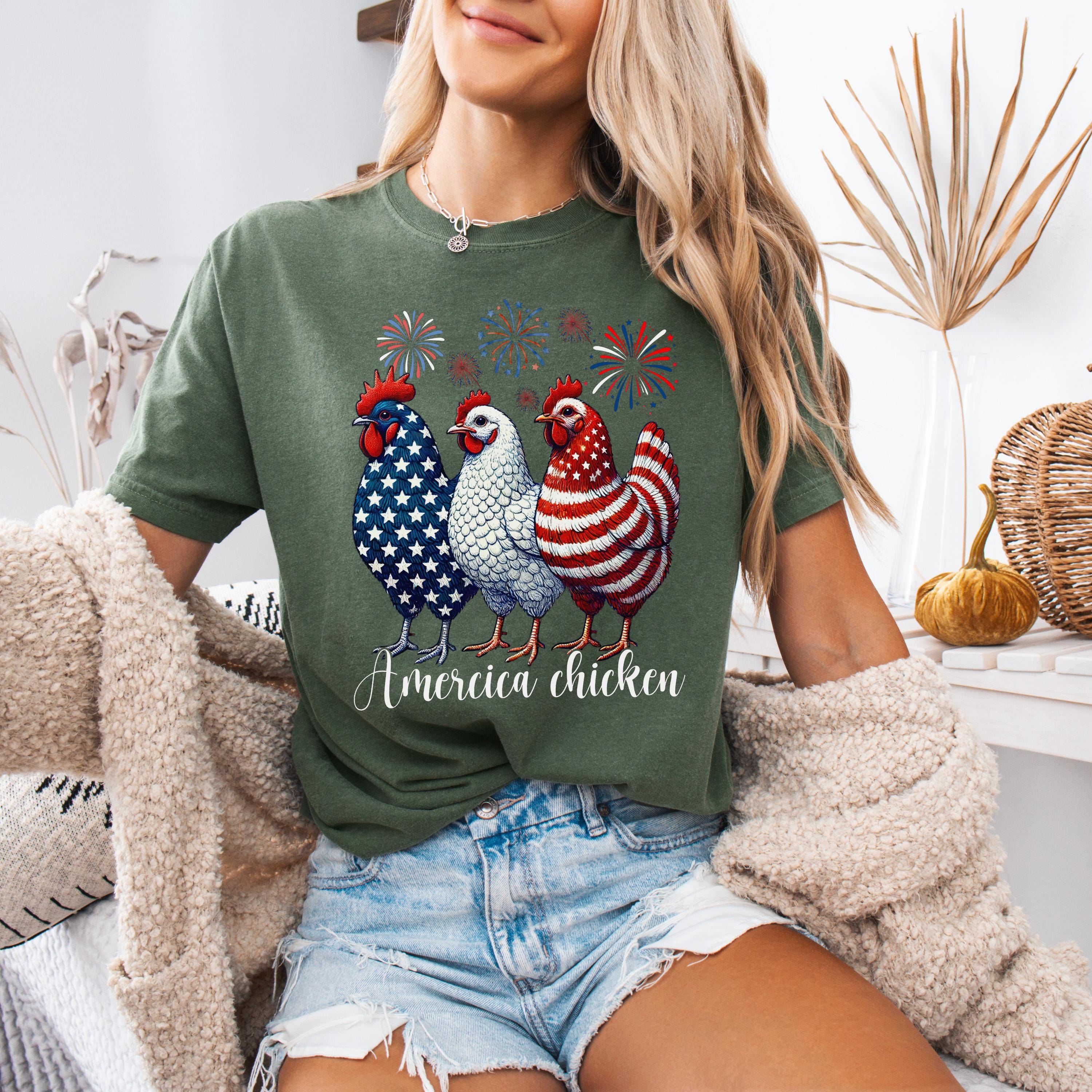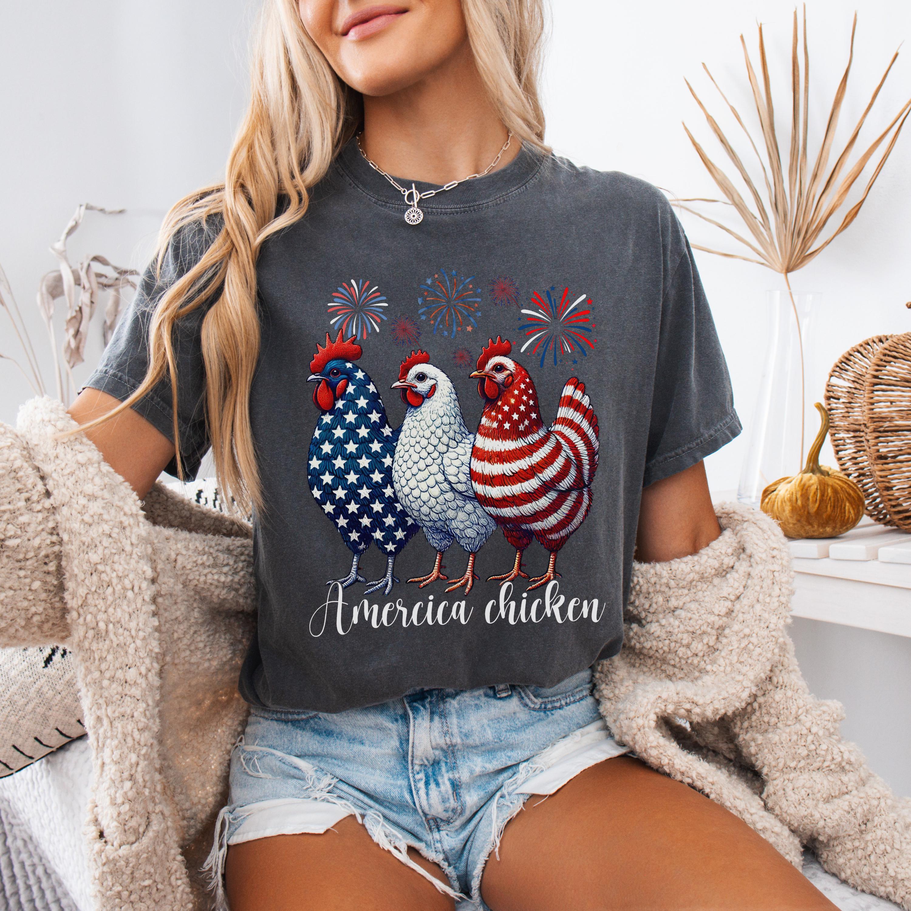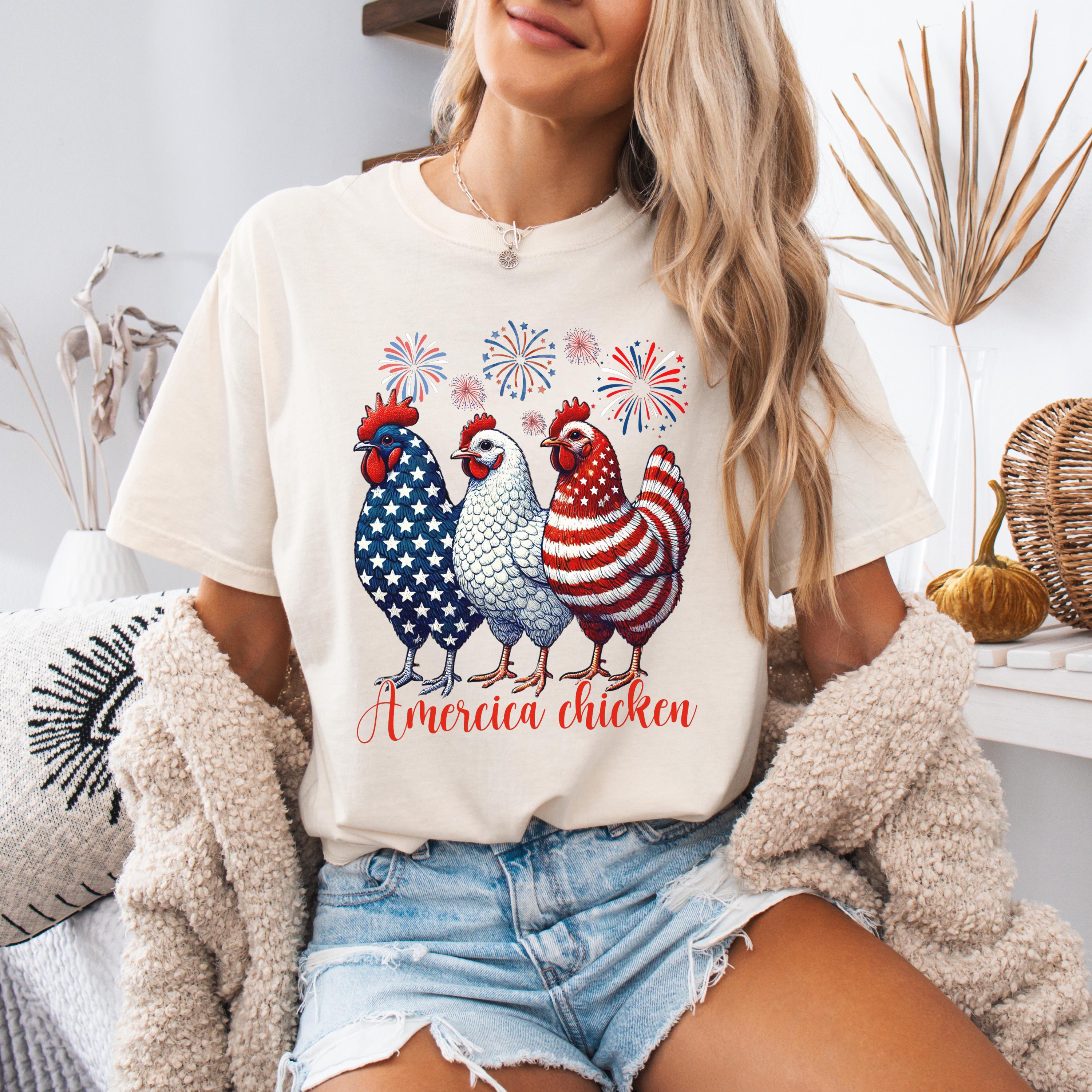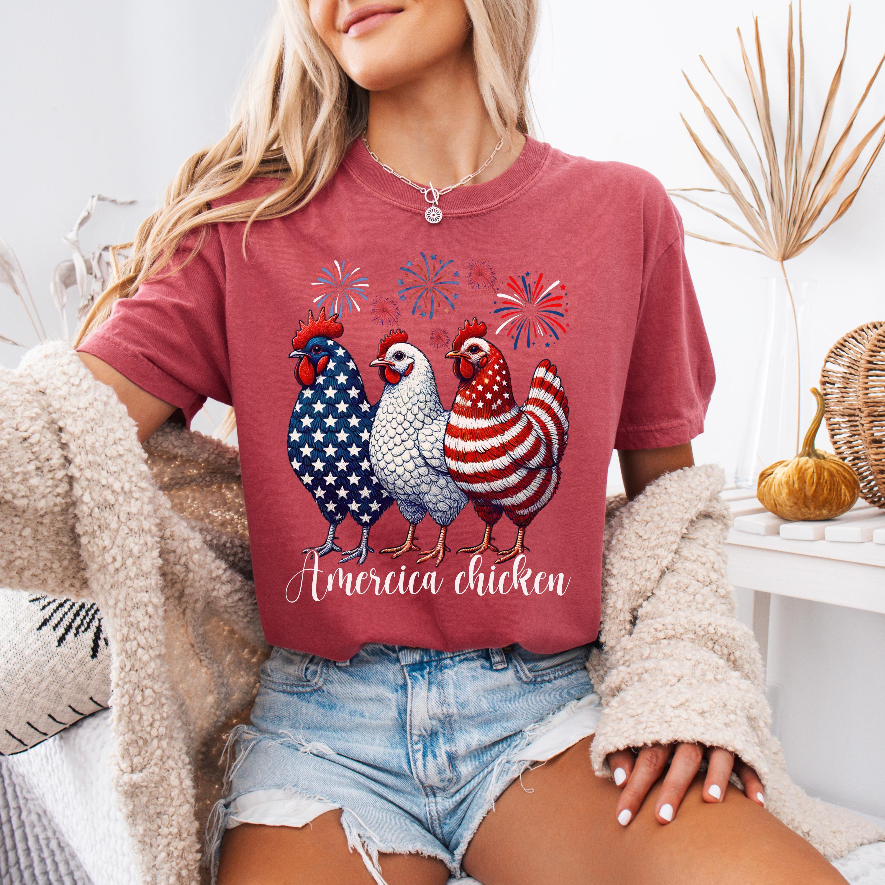 4th of July Chicken Shirt,Fourth of July T Shirt,Patriotic Mom Shirt,Gift for Her,Farm 4th of July Shirt,Woman 4th of July Shirt,Humor Shirt