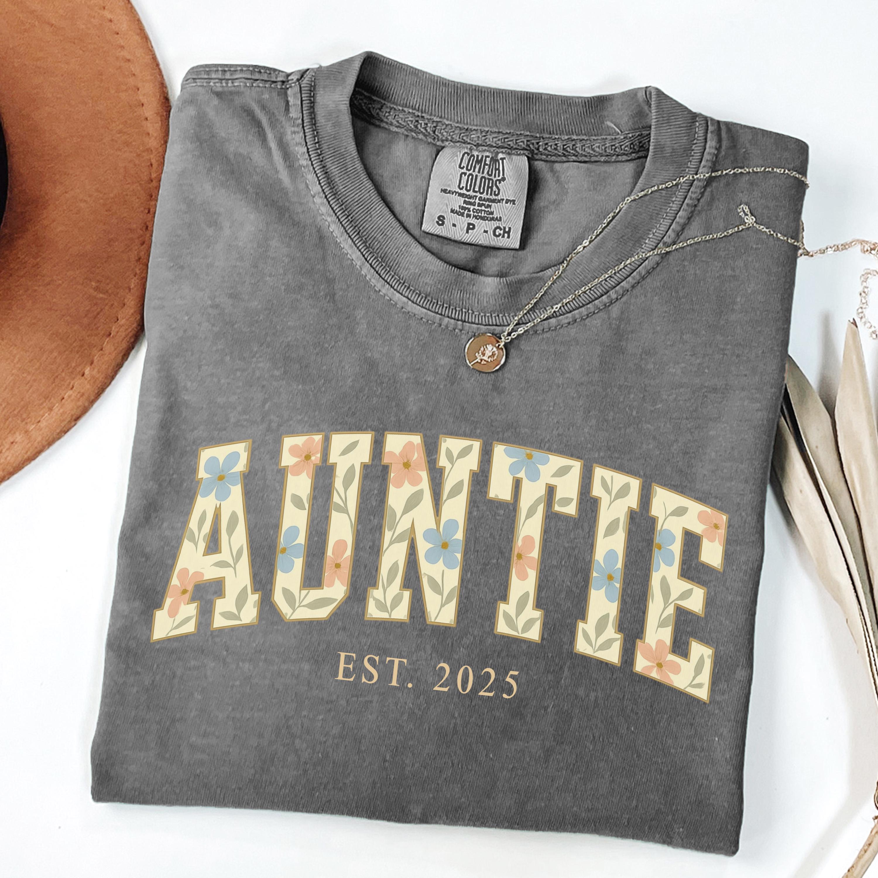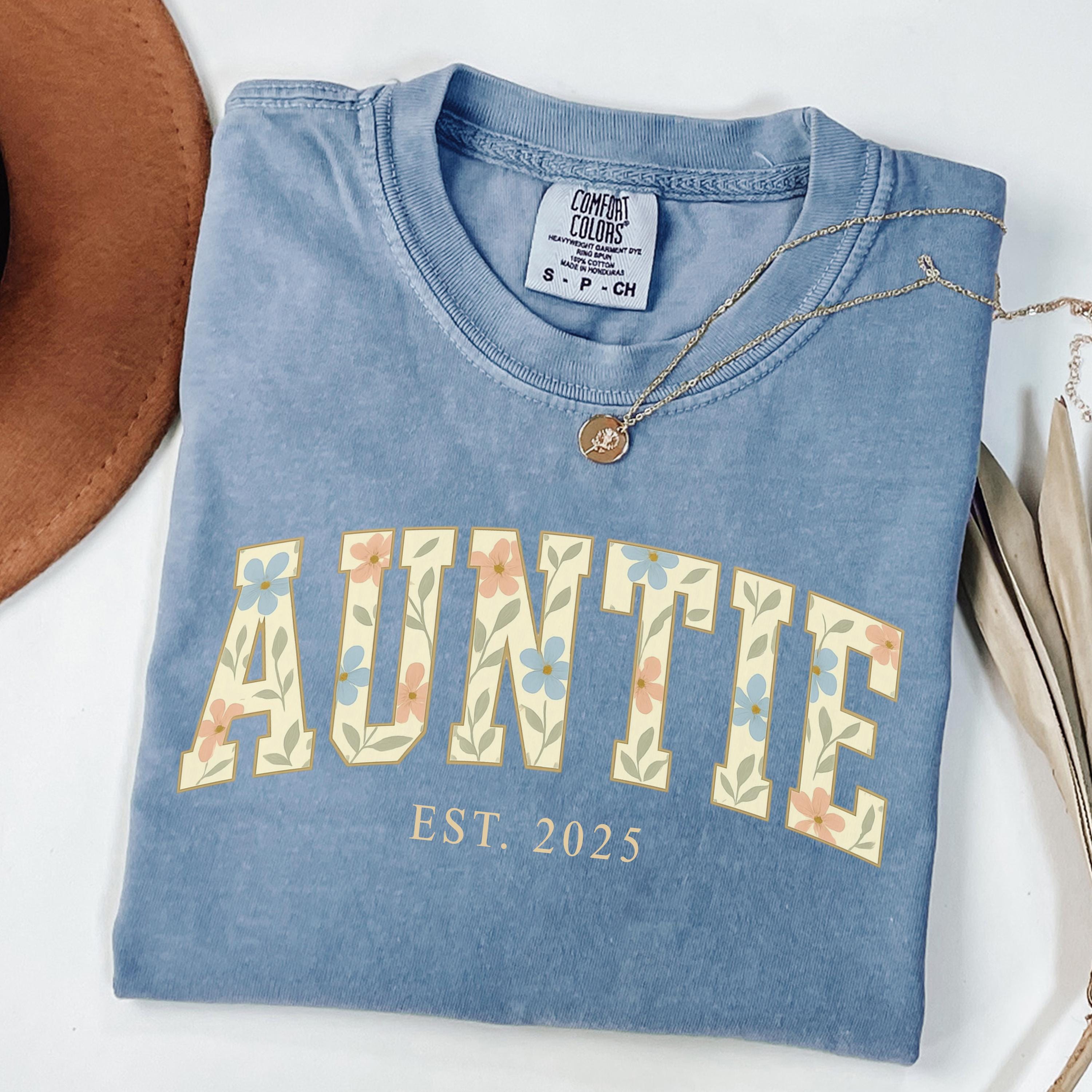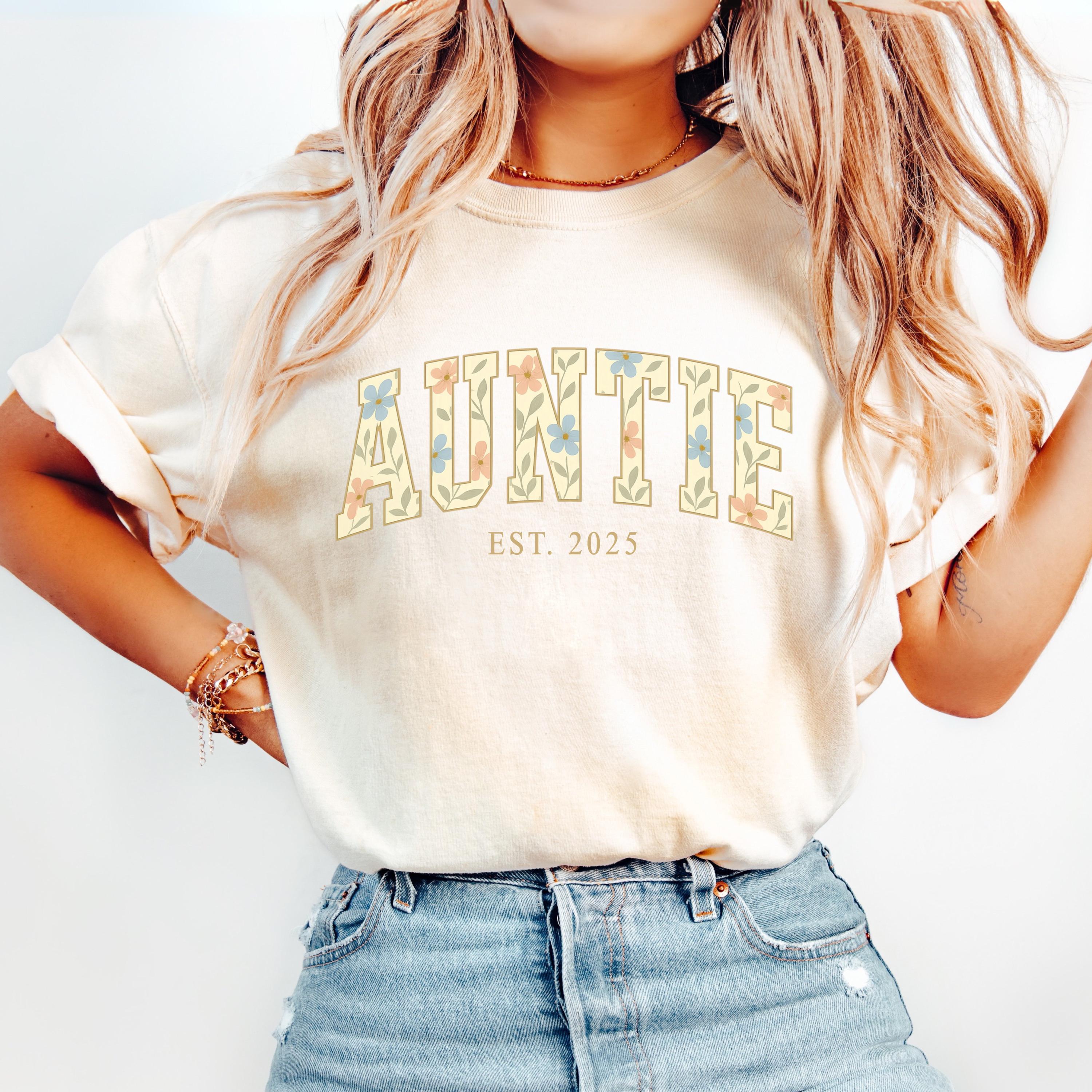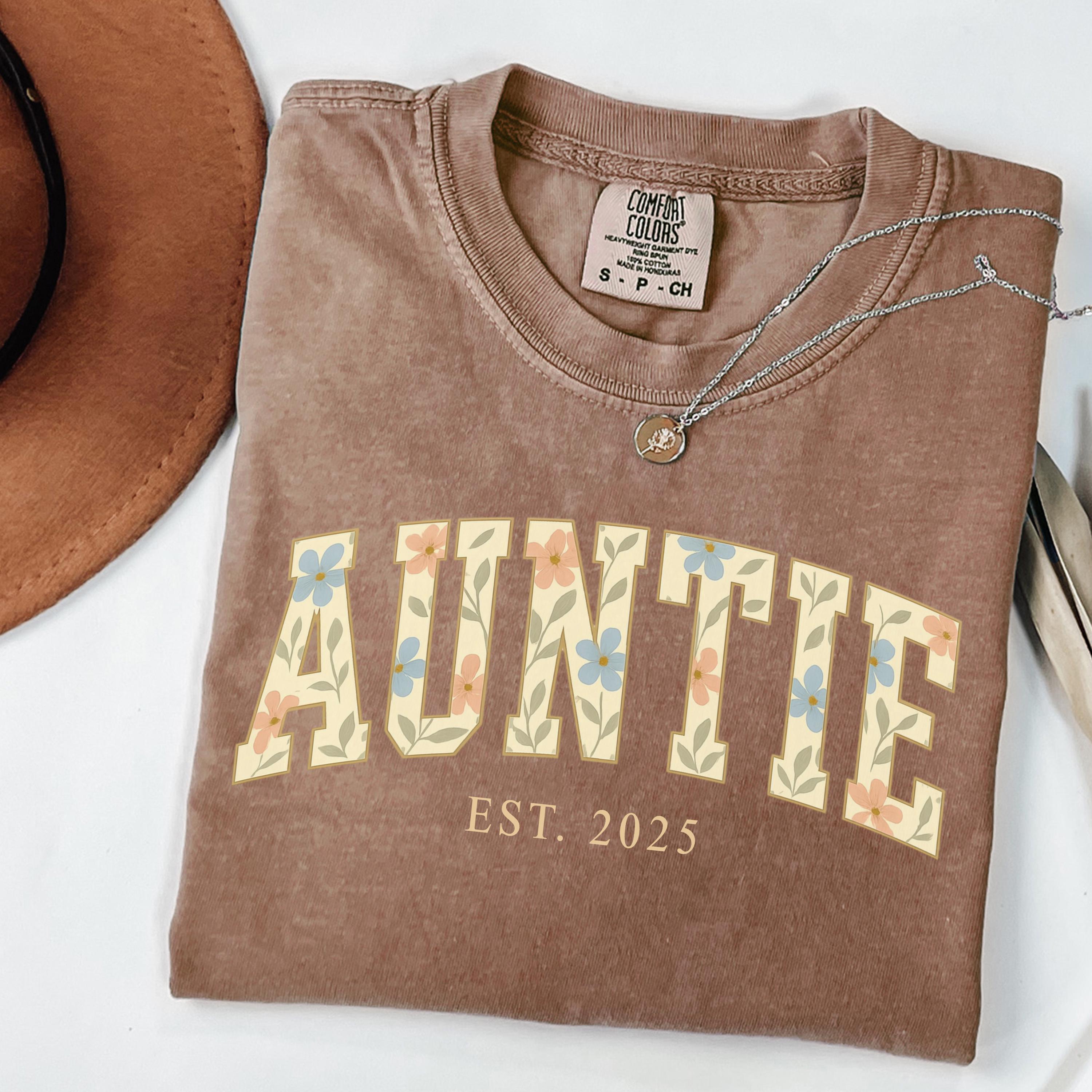 Comfort Colors® Auntie Shirt, Custom Aunt Shirt, Floral Auntie, New Aunt Gift, Pregnancy Announcement,Gift for Aunt,Pregnancy Reveal to Aunt