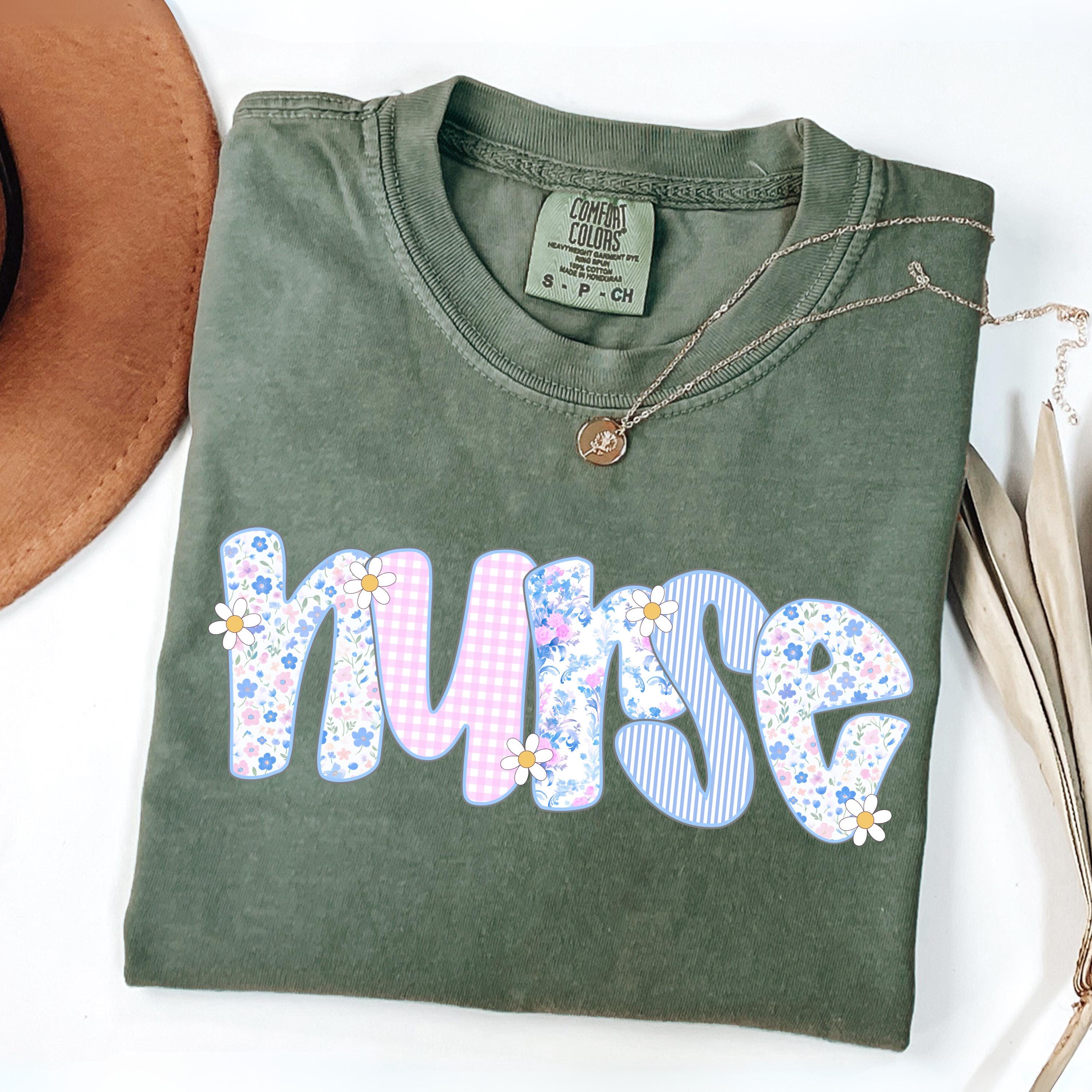 Comfort Colors® Floral Nurse Shirt, Nurse T-Shirt, RN Shirt, Nursing School Shirt, Nurse Graduation Gift, Nurse Appreciation, New Nurse Gift