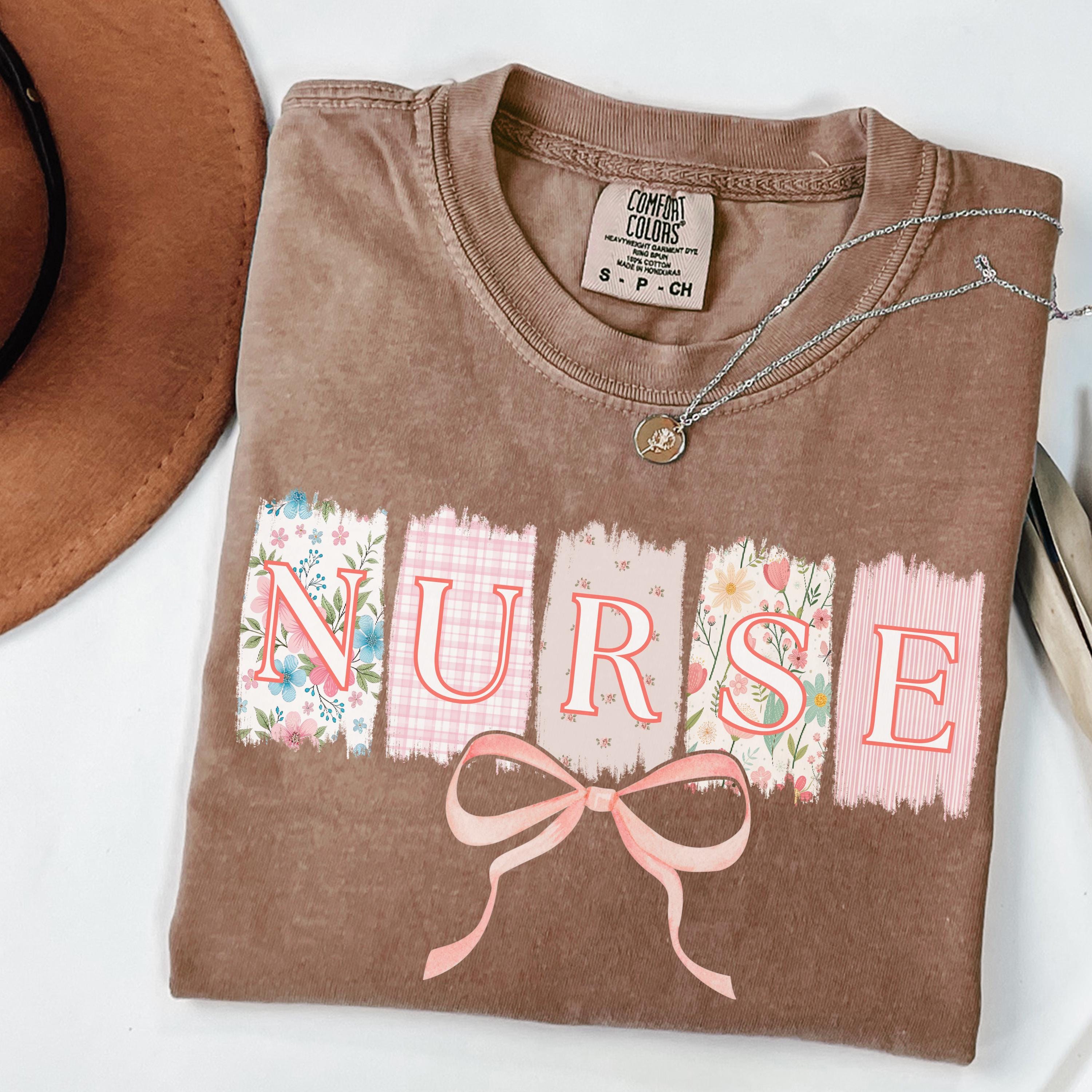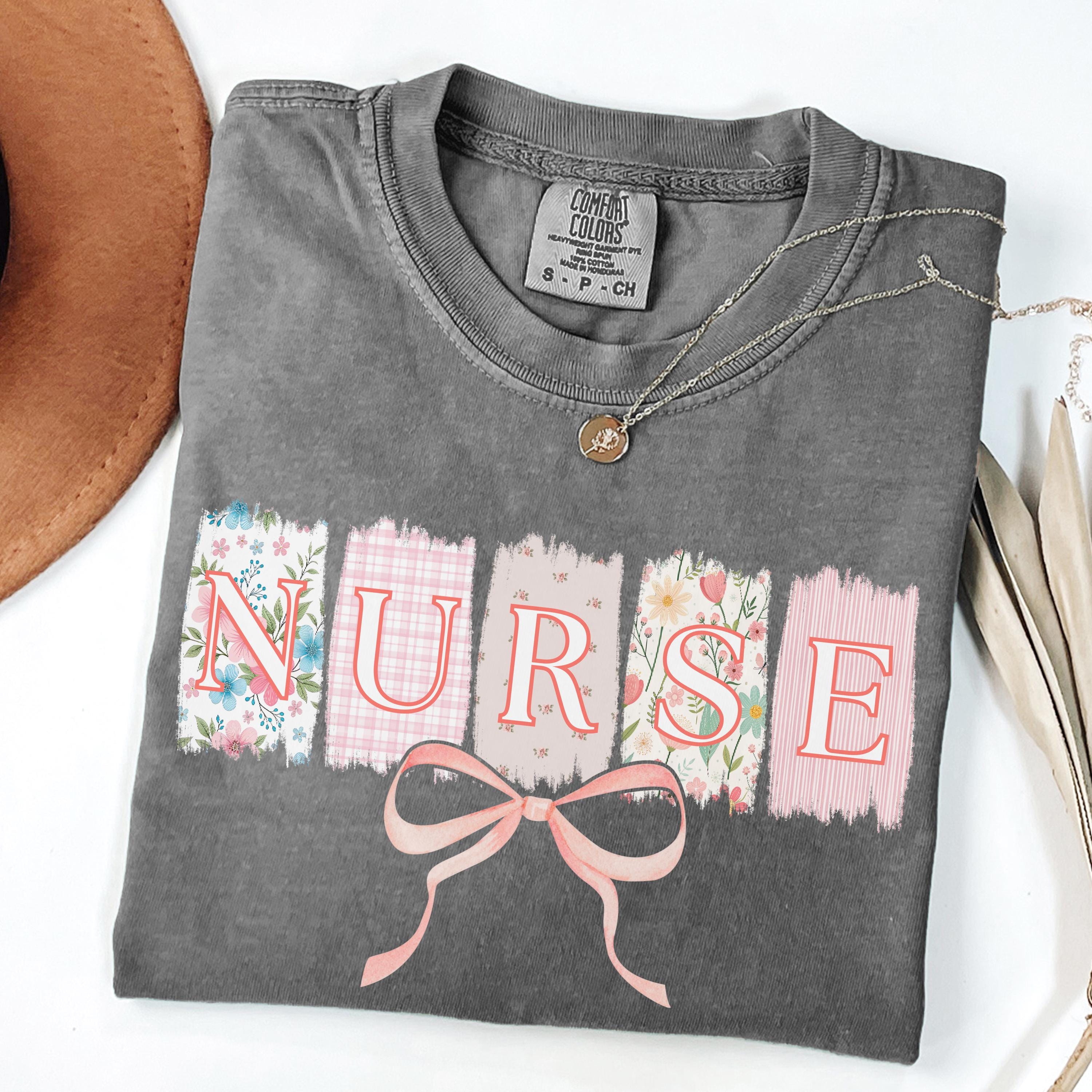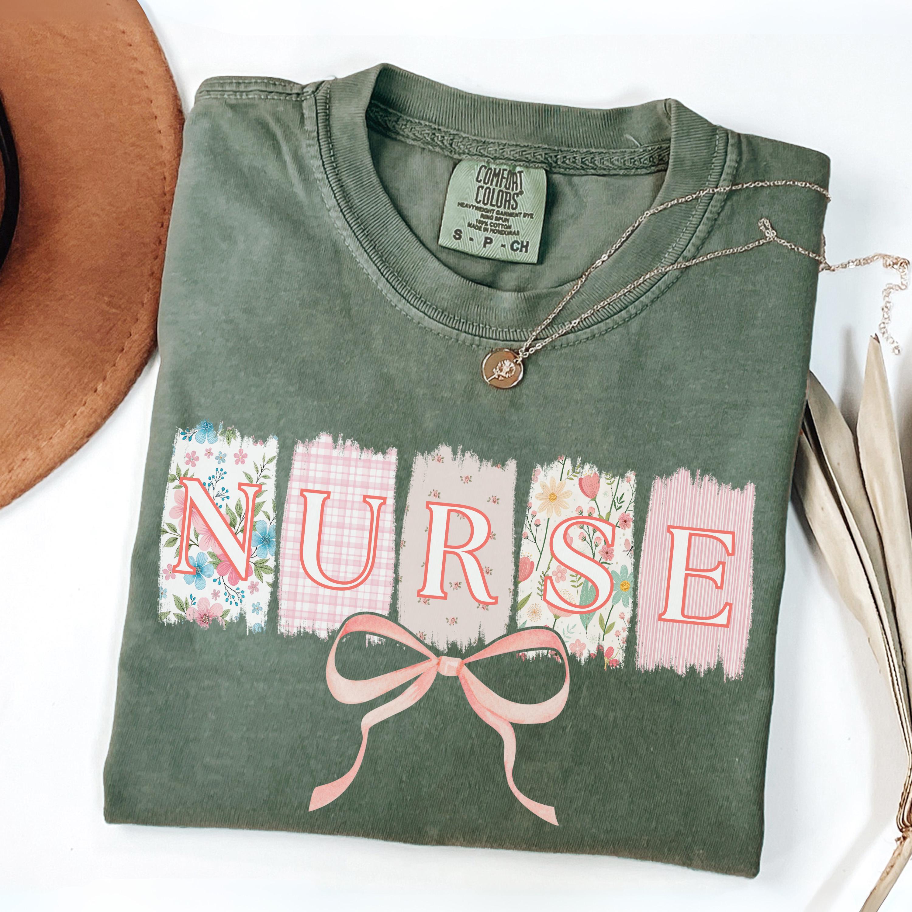 Comfort Colors® Nurse Shirt, Coquette Bow RN Tshirt, Springtime Nurse Shirt, Spring LPN Tee, Registered Nurse Grad T-Shirt, Graduation Gift