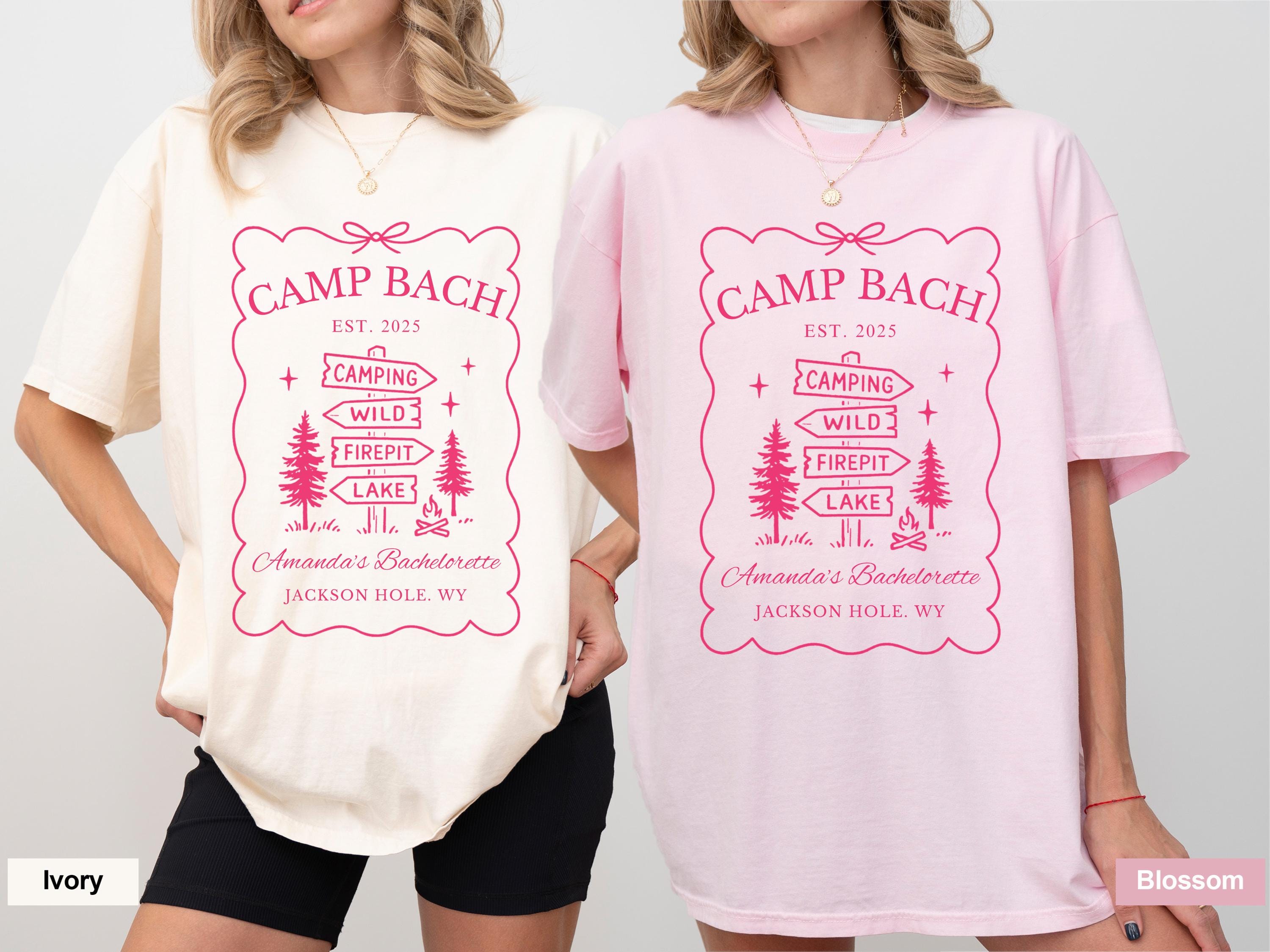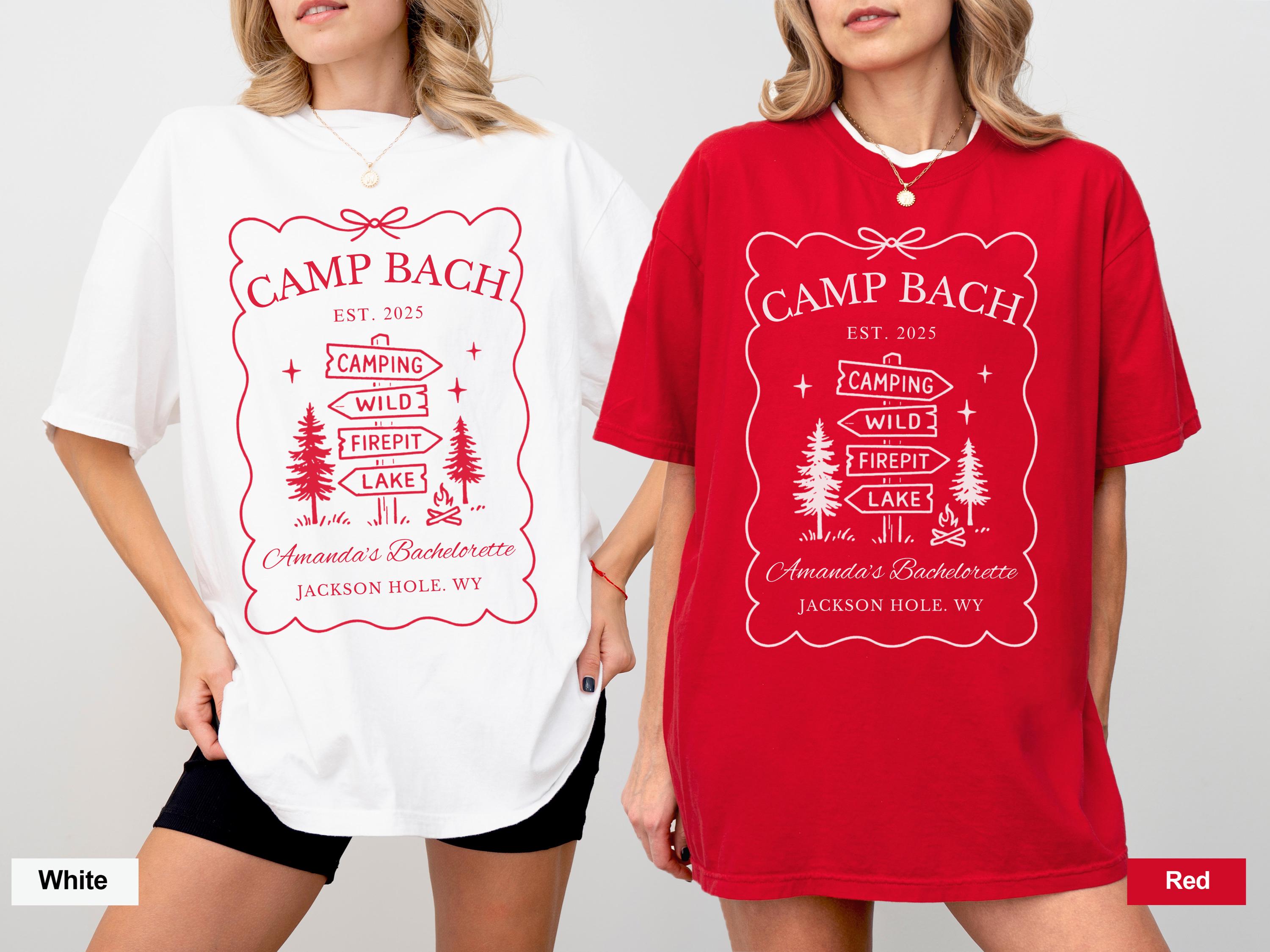 Customized Camp Bach Shirt, Custom Name Location Bachelorette Shirts, Camping Bachelorette Party Gifts, Personalized Bridal Party, Bride Tee