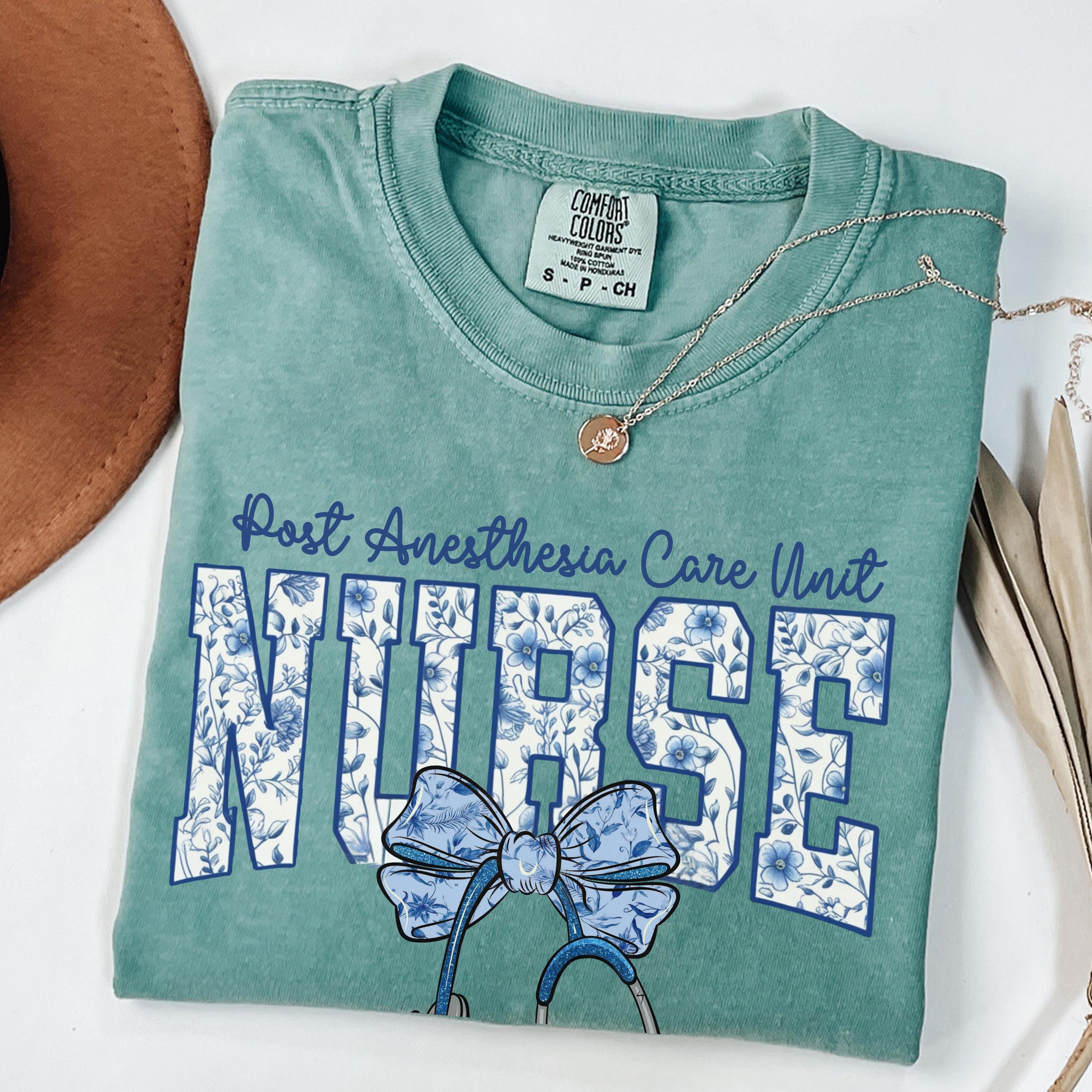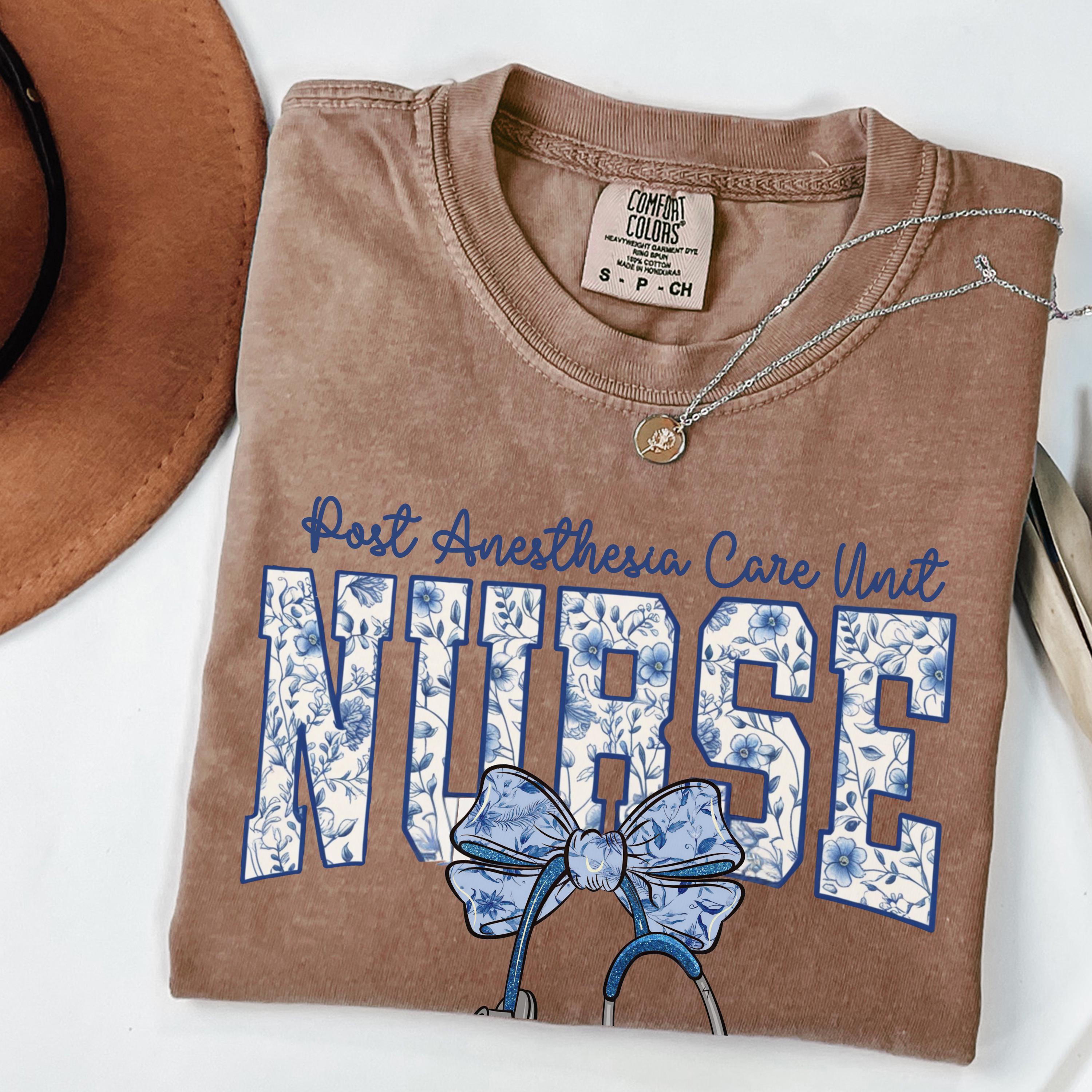 PACU Nurse Comfort Colors® Shirt, Blue Toile Post-Anesthesia Care Unit Nurse T-Shirt, Recovery Nurse Tee, Nursing Apparel, PACU Gifts