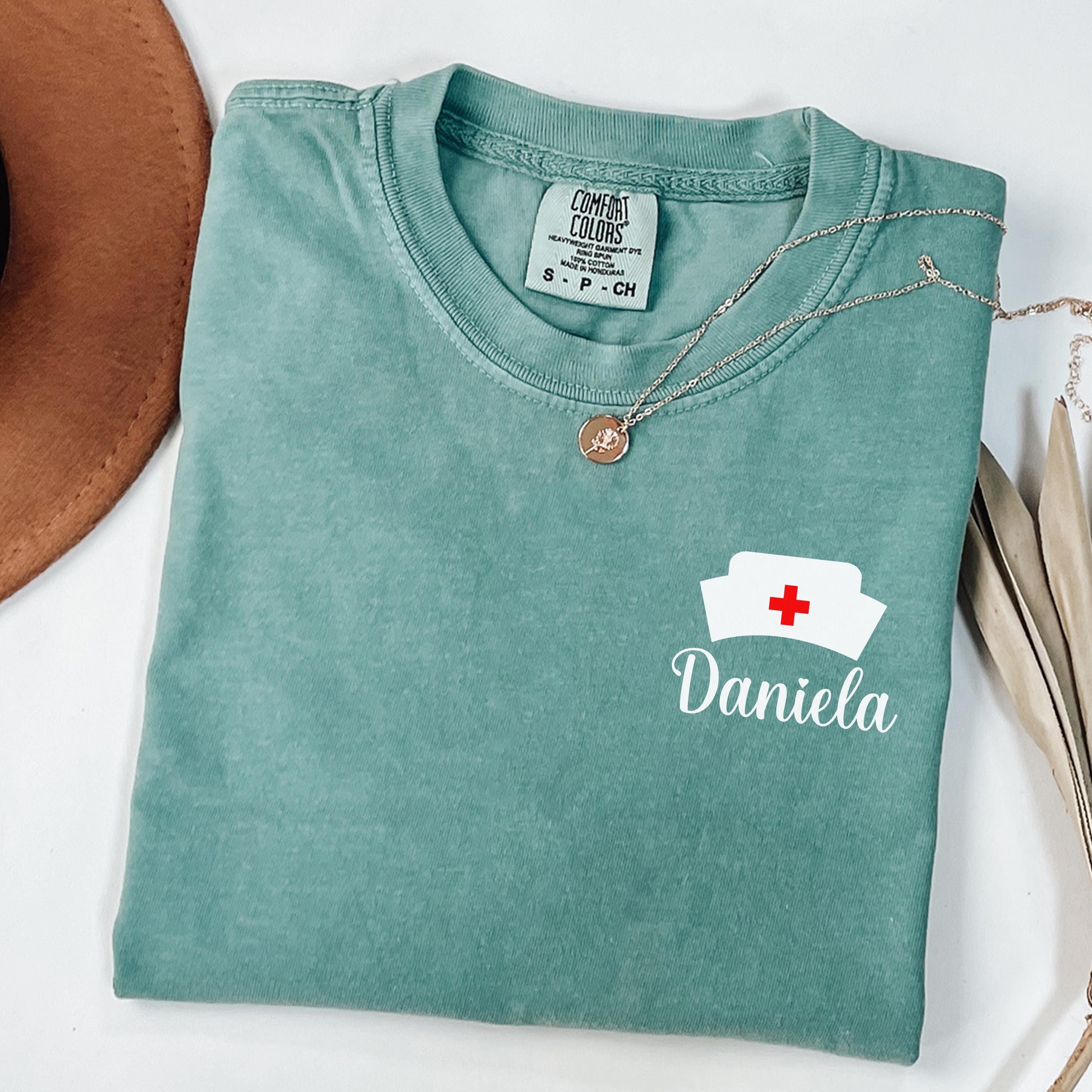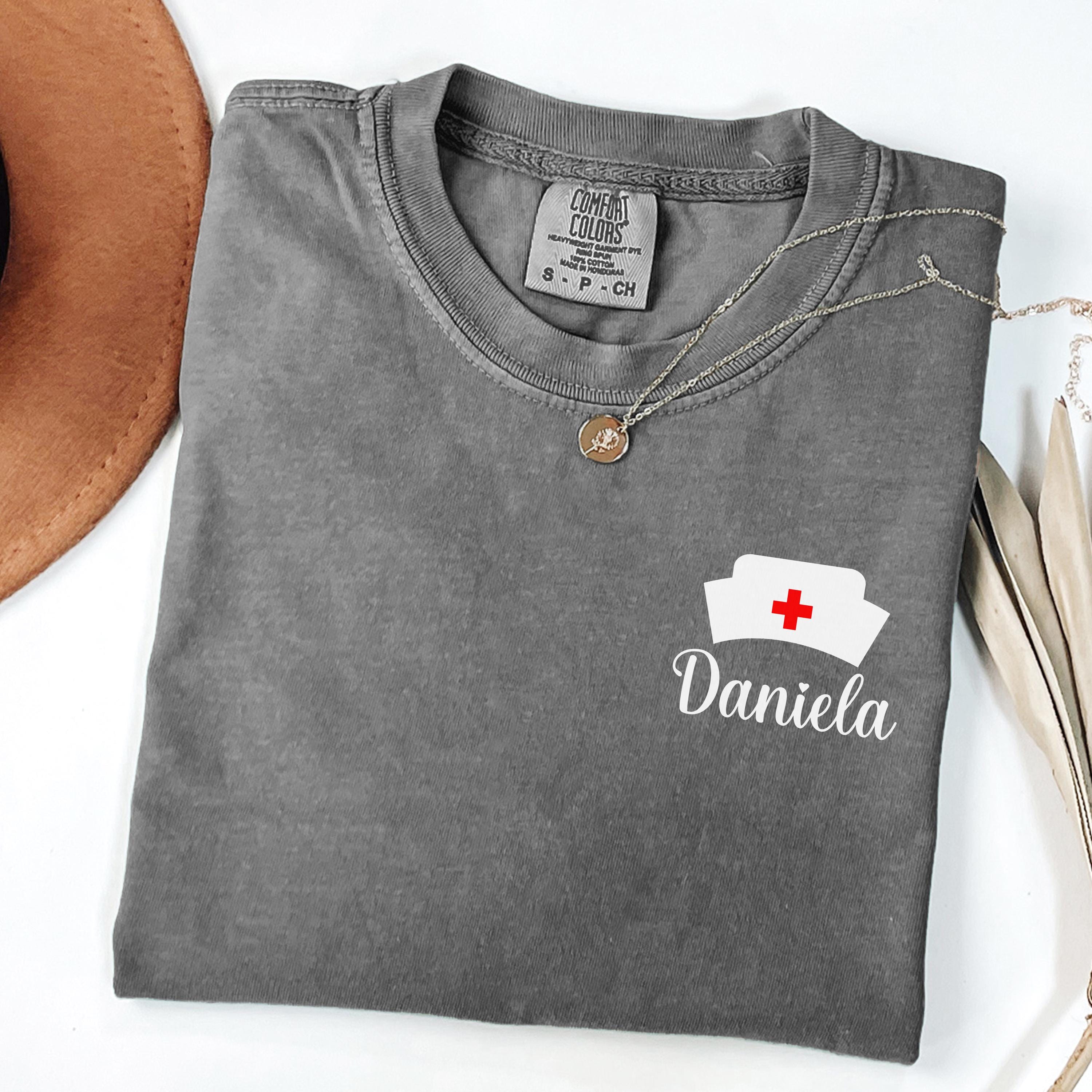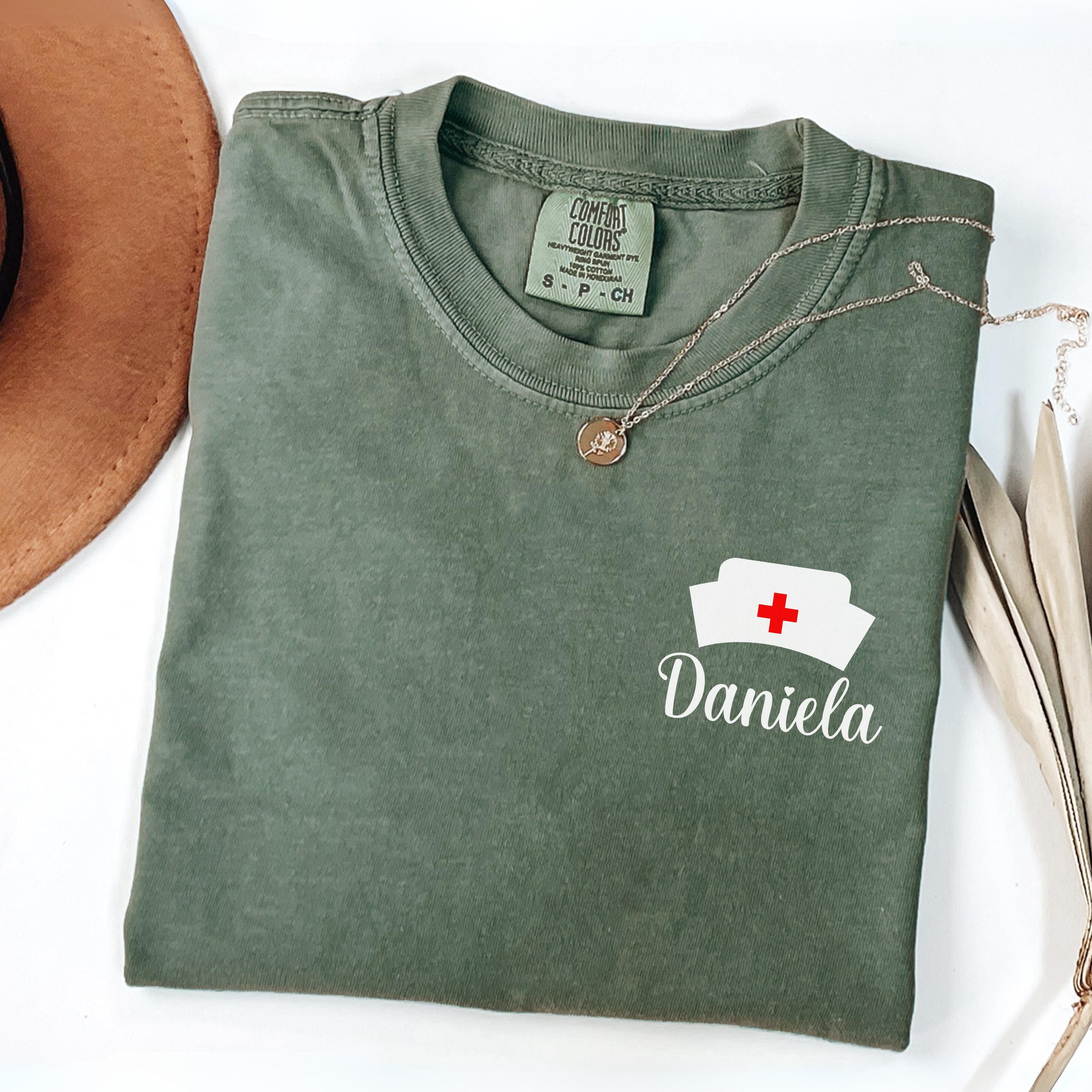 Custom Nurse Comfort Colors® T-shirt, Personalized Name Nurse Shirt, RN Pocket Outfit, RN Grad Tee, New Nurse Outfit, Nurse Gift
