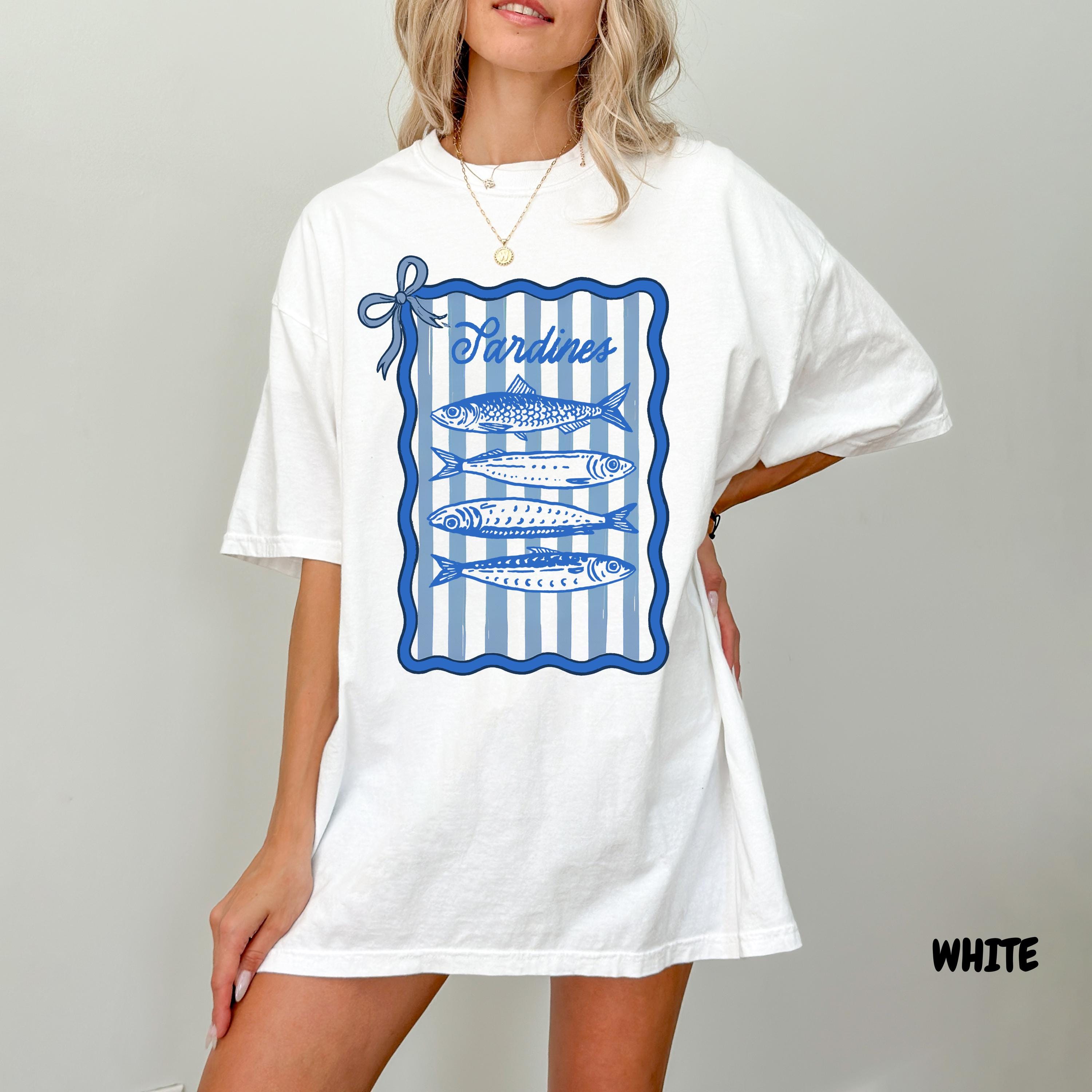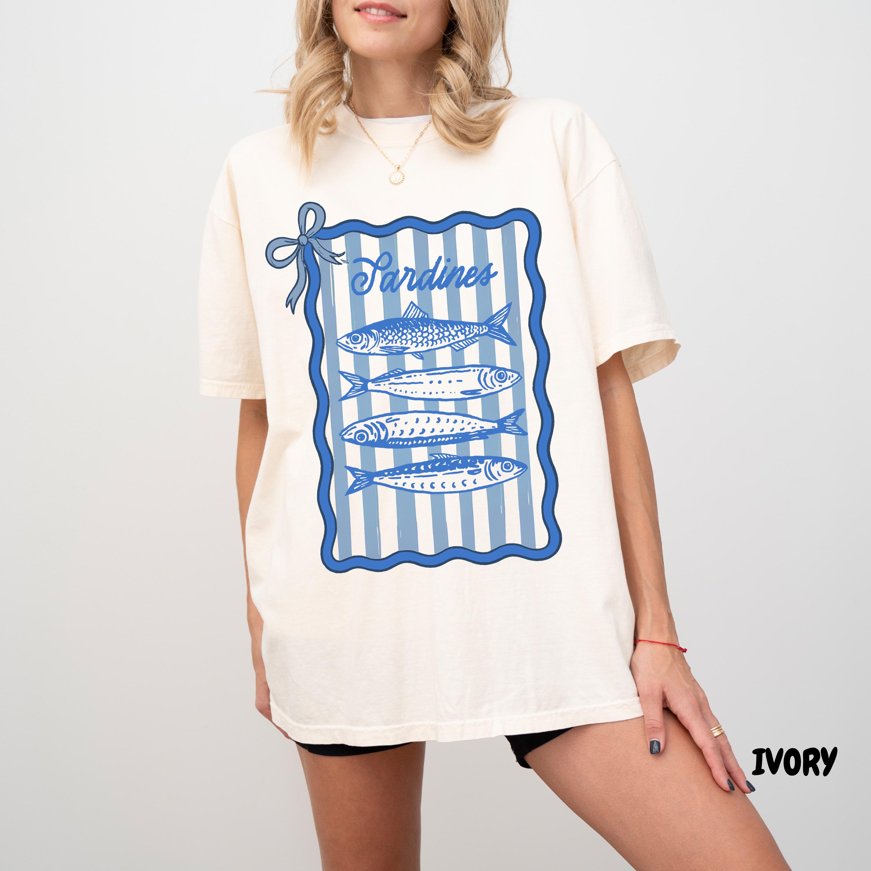 Comfort Colors® Sardine Graphic Tee, Vintage Sardine Shirt, Tinned Fish Shirts, Oversized Retro T-shirt, Preppy Coastal Coquette Shirt