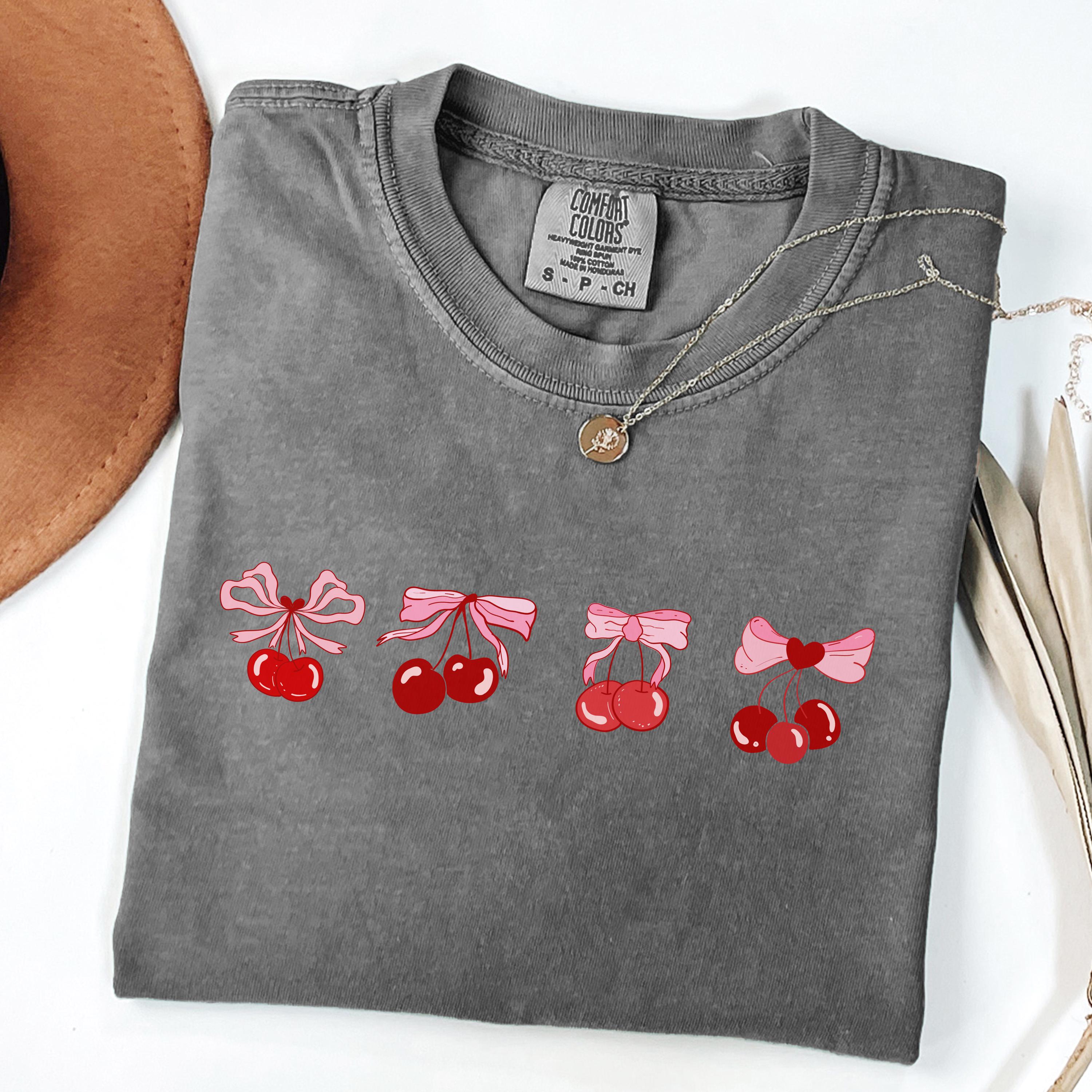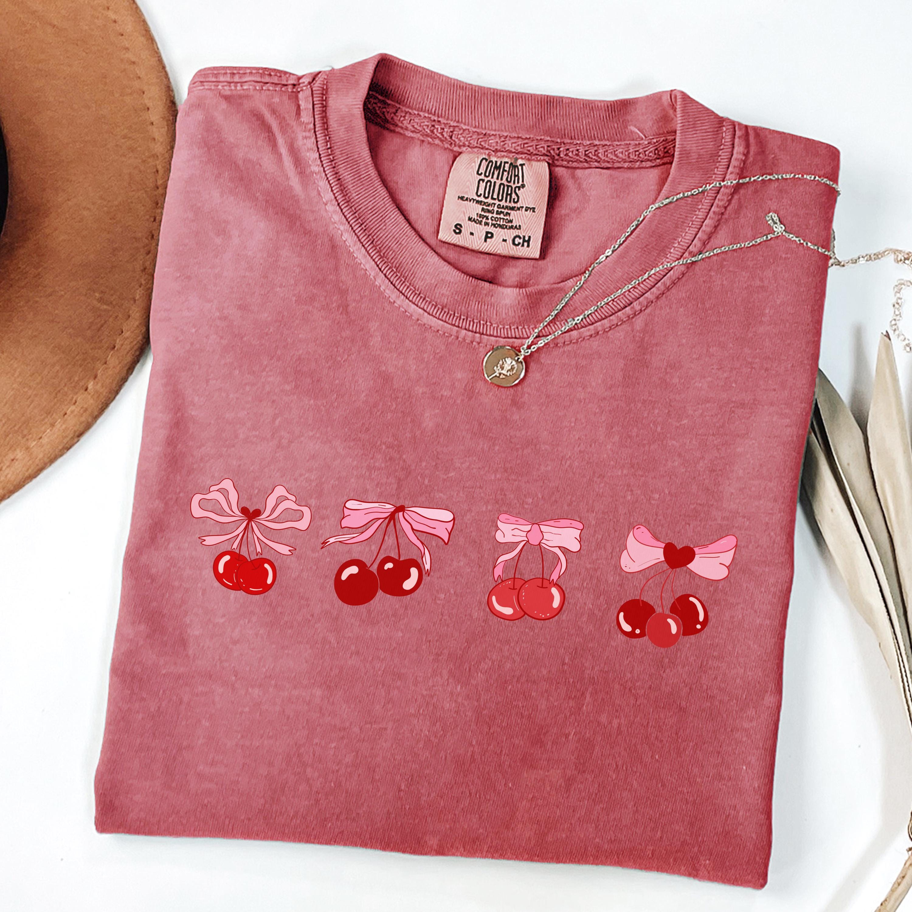 Cherry Coquette Graphic Shirt, Cherry Shirt, Pink Bow Shirt, Coquette Aesthetic Gift, Coquette Gift, Cherry T-shirt, Cherry Tee, Cherry Gift