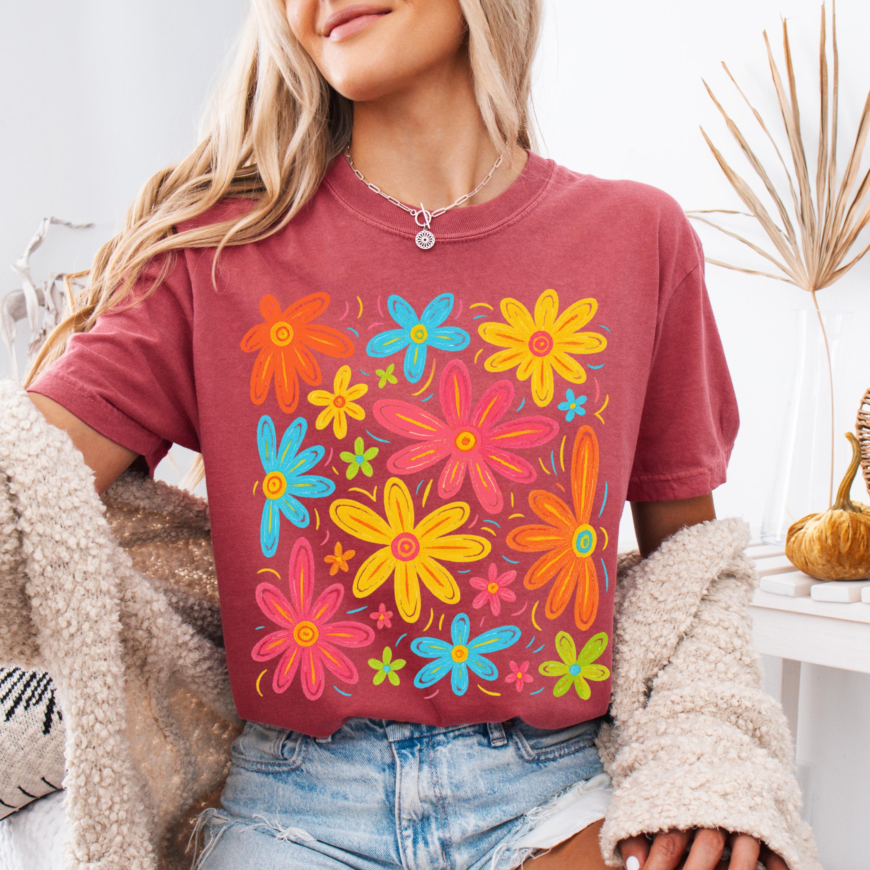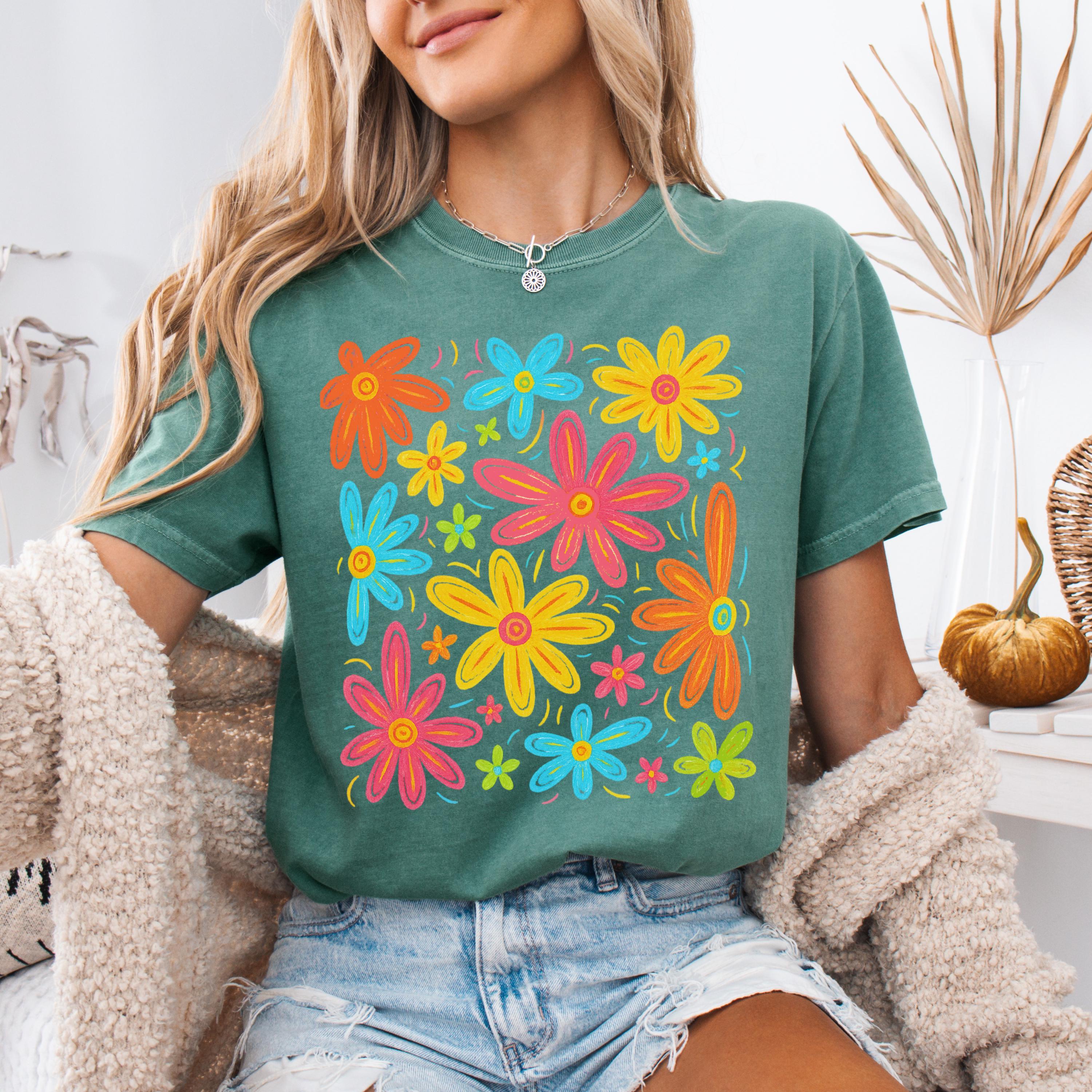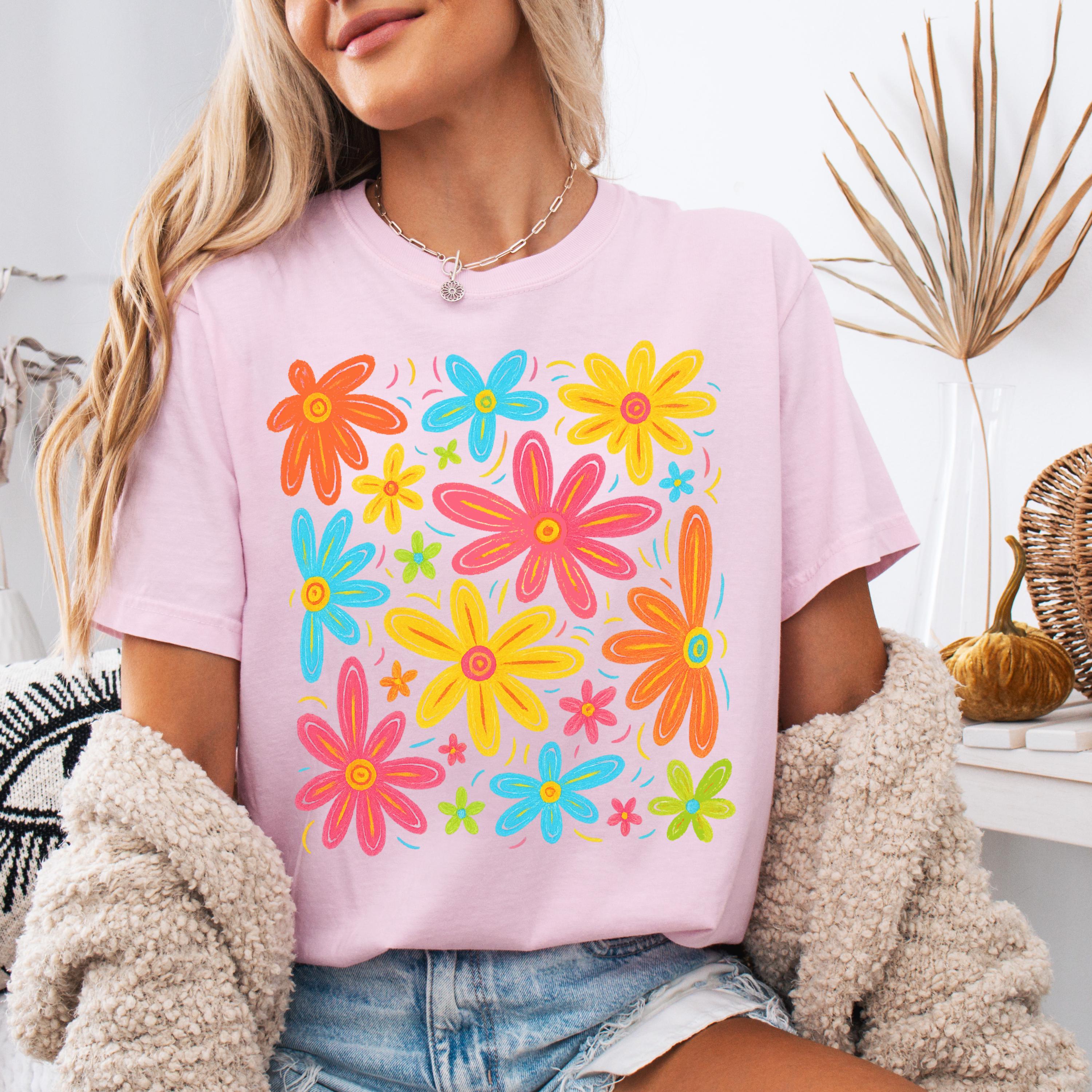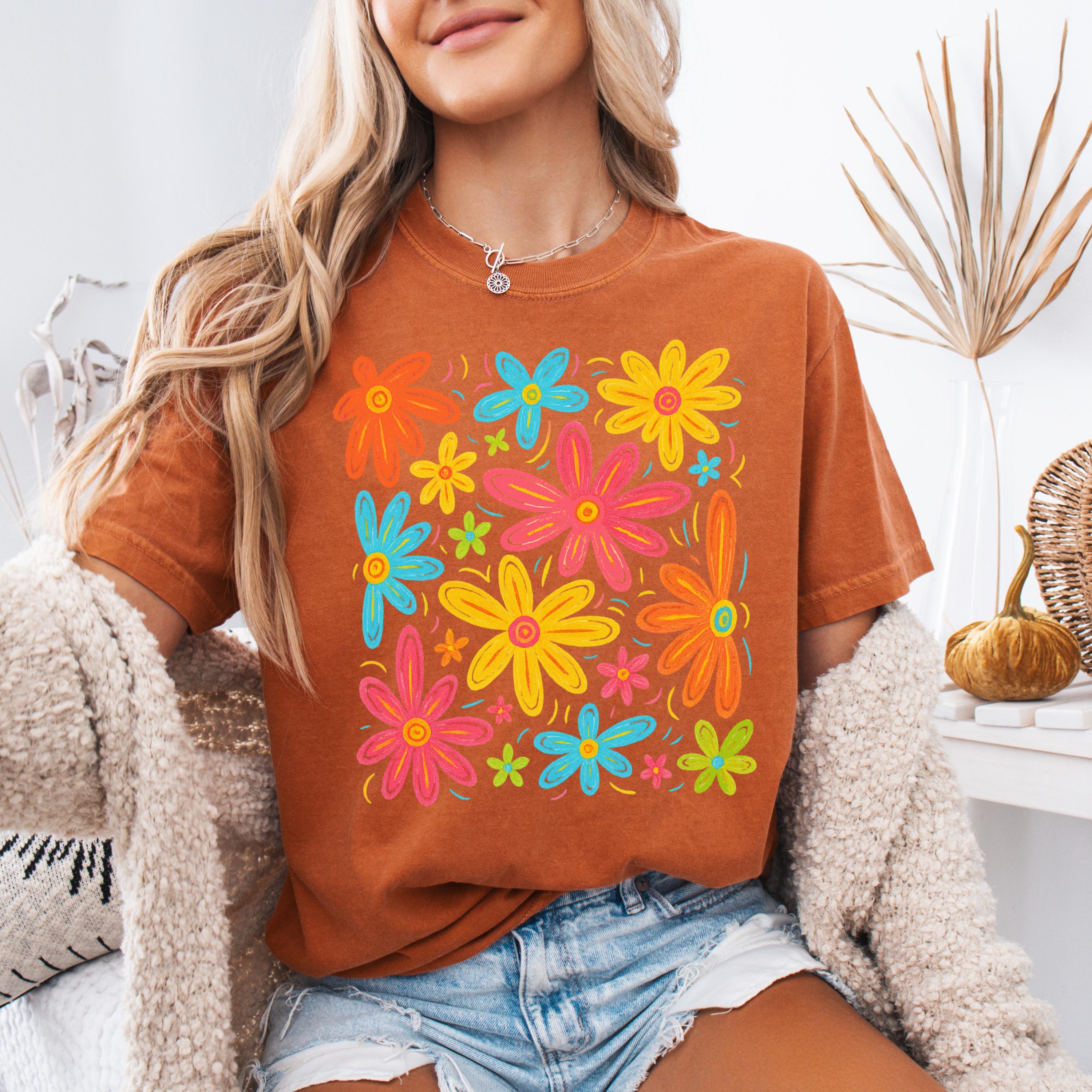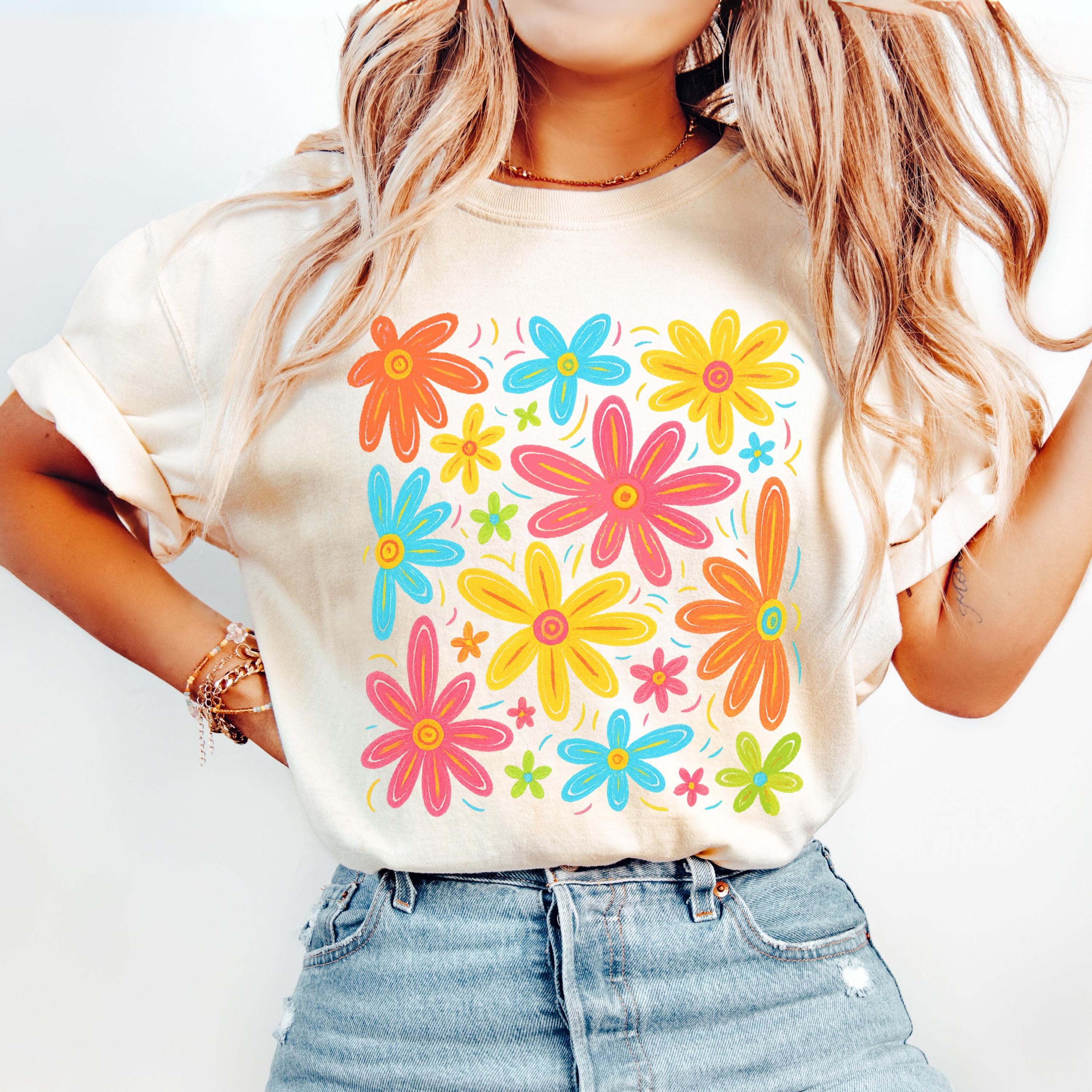 Comfort Colors® Daisy Shirt for Women, Preppy Floral Brushstroke Tee, Retro Floral T Shirt, Boho Aesthetic Shirt, Distressed Summer Outfit