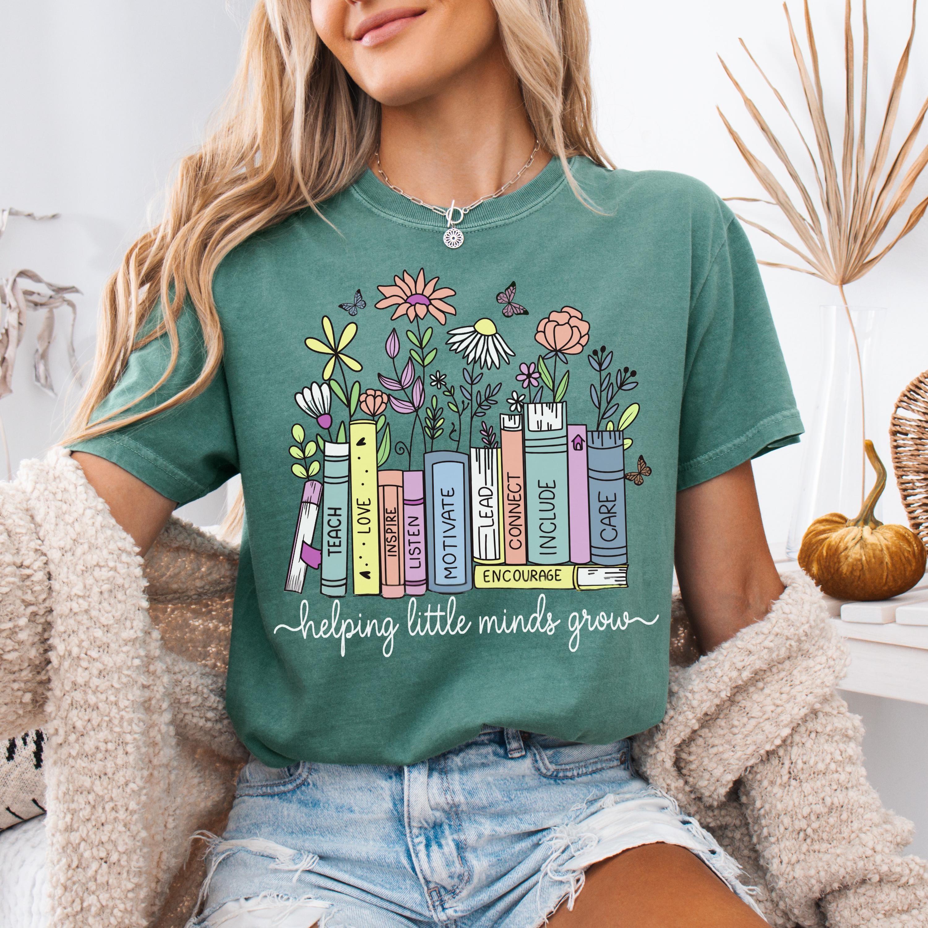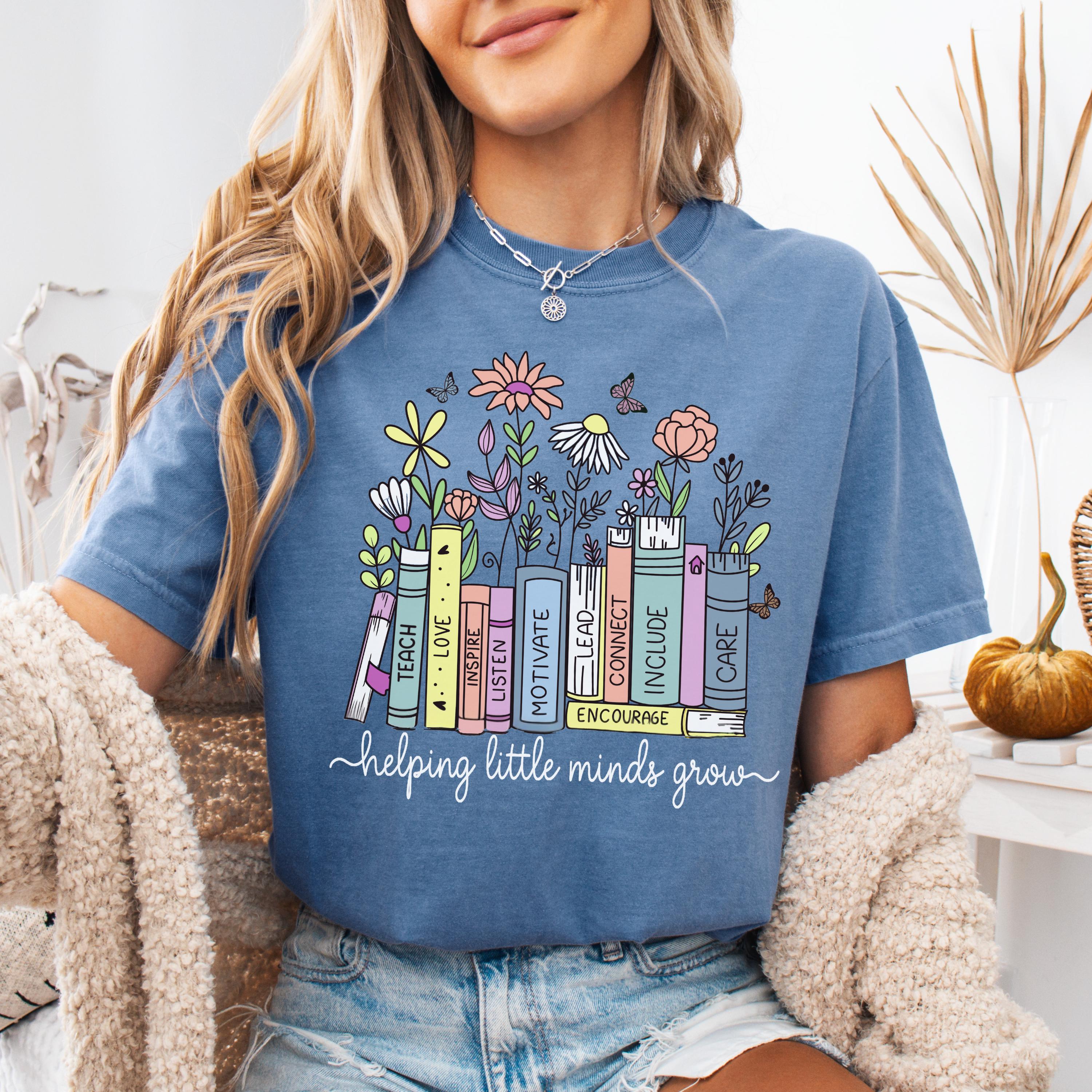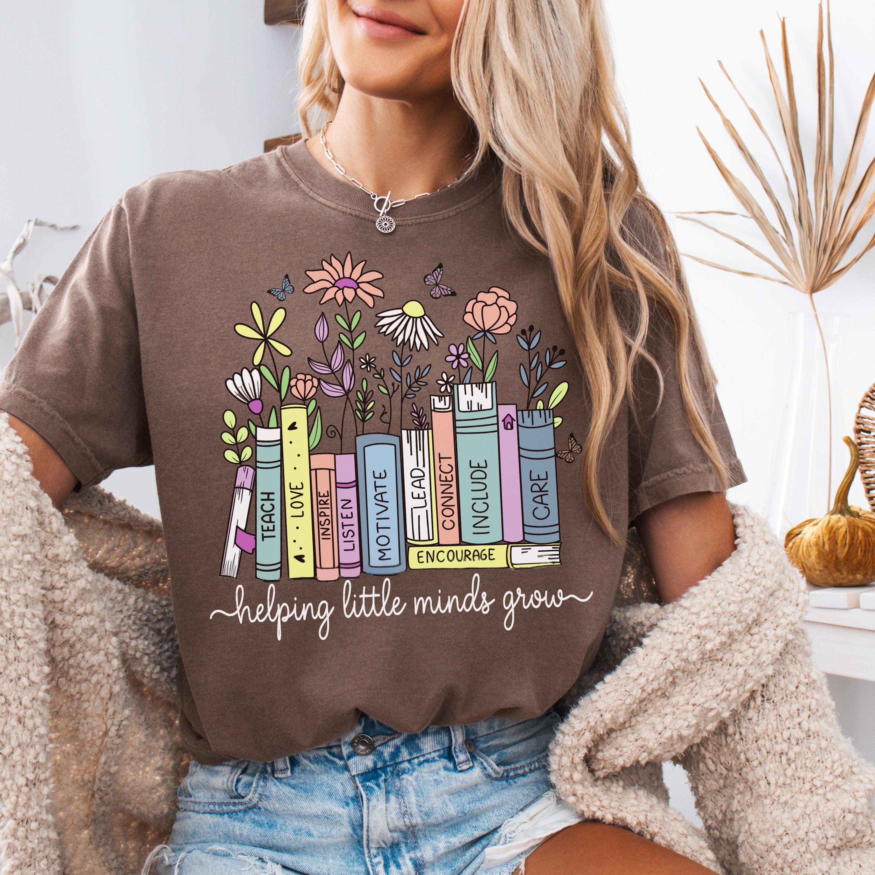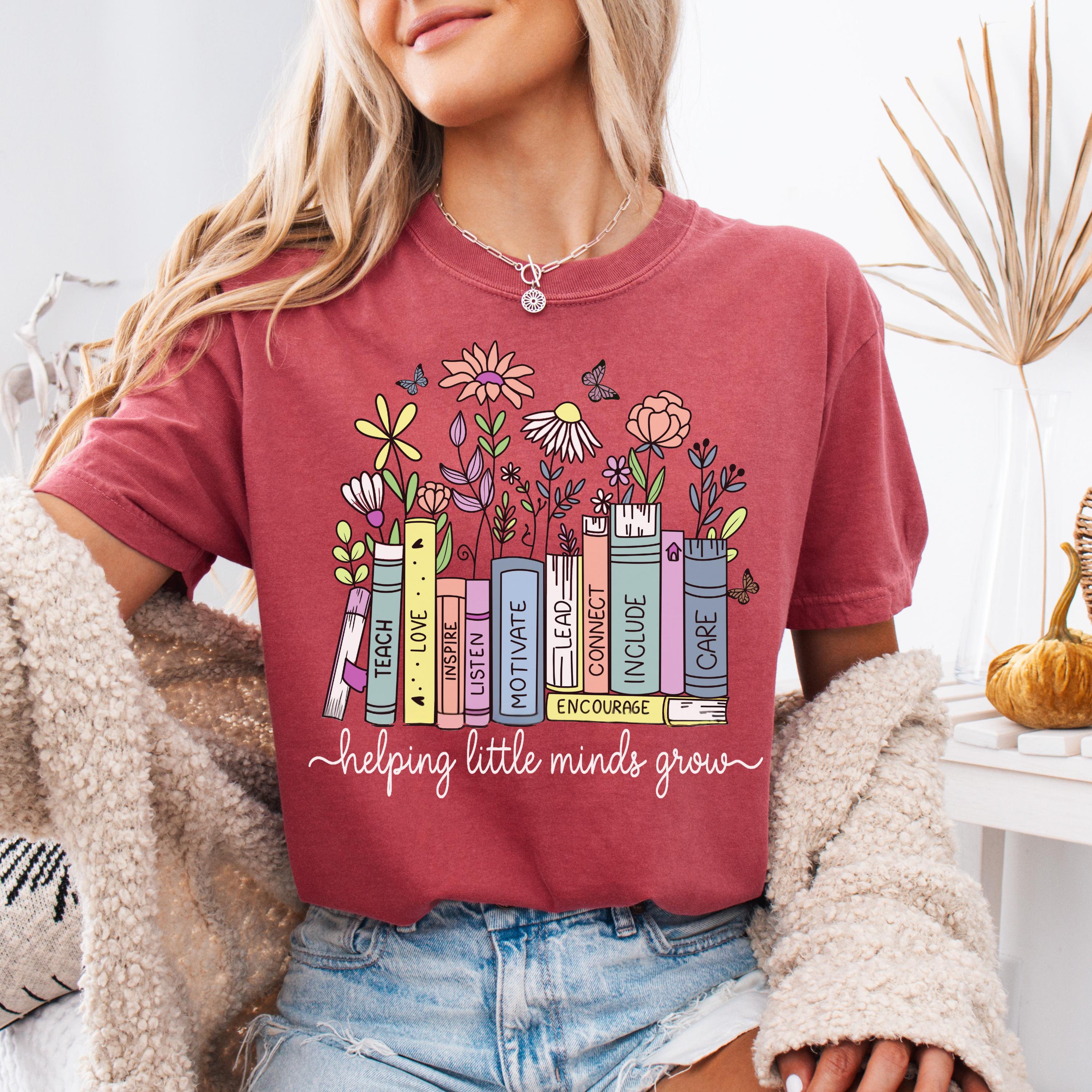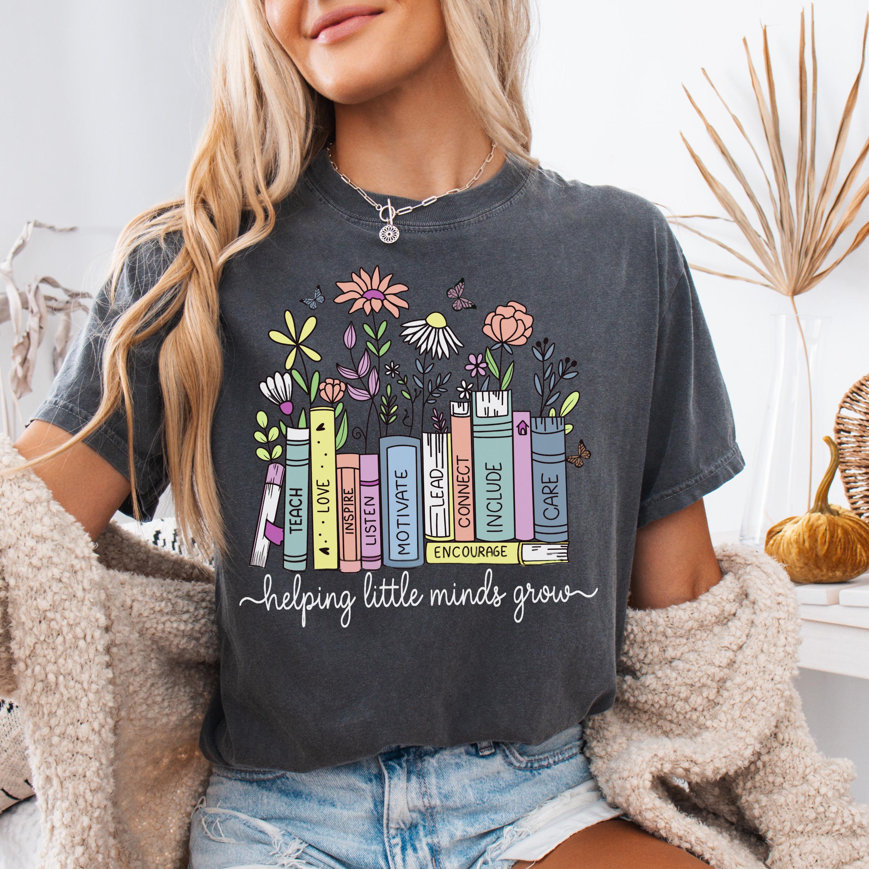 Comfort Colors® Teacher Shirt, Helping Little Minds Grow Shirt, Back to School Shirt, Book Lover Teacher, Teach Flower Tee, Elementary Teach