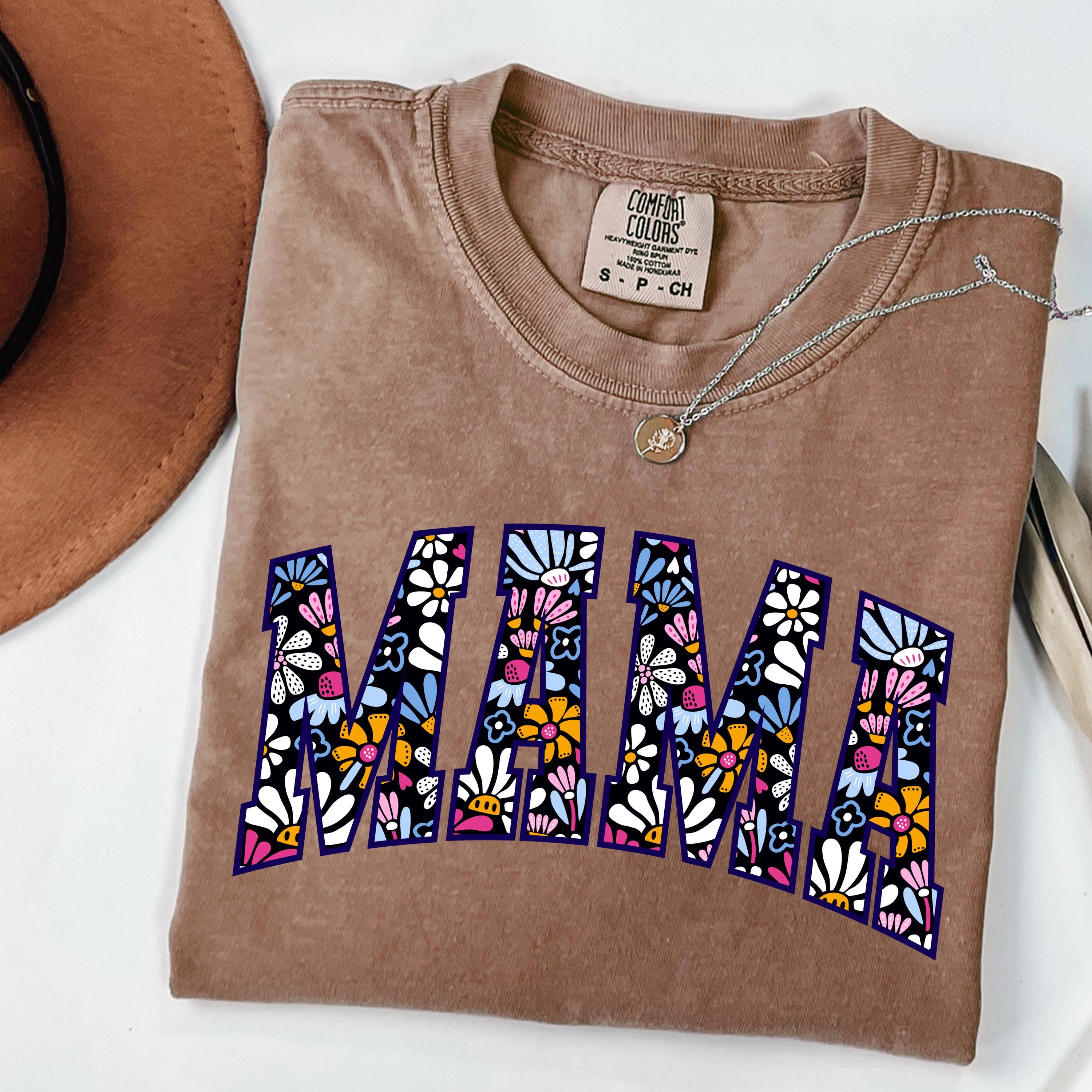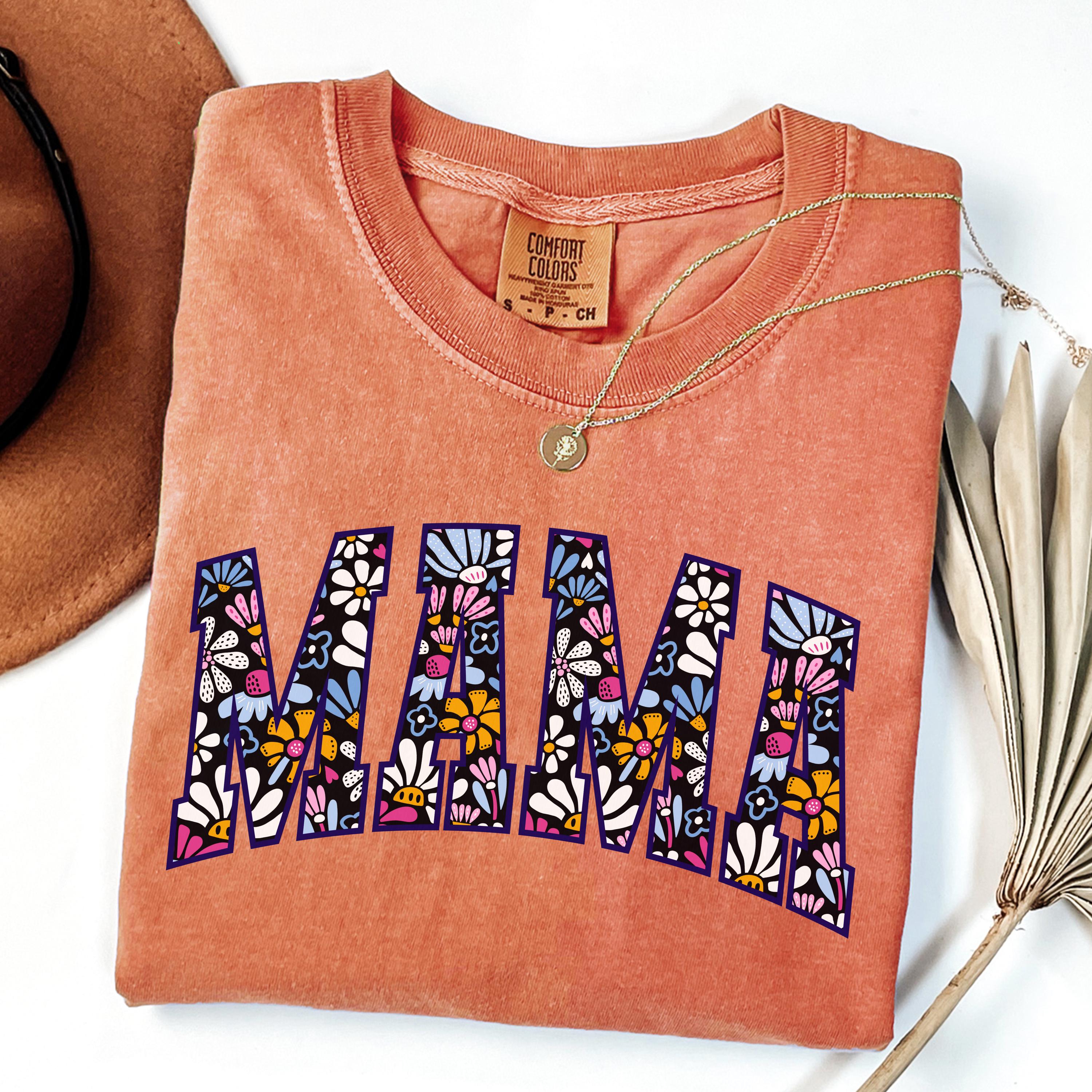 Comfort Colors® Mama T-Shirt, Trendy Mom Tshirt, Women's Flower Mama Shirt, Floral Mom Spring Tee, Spring Pregnancy Reveal Gift for New Mom