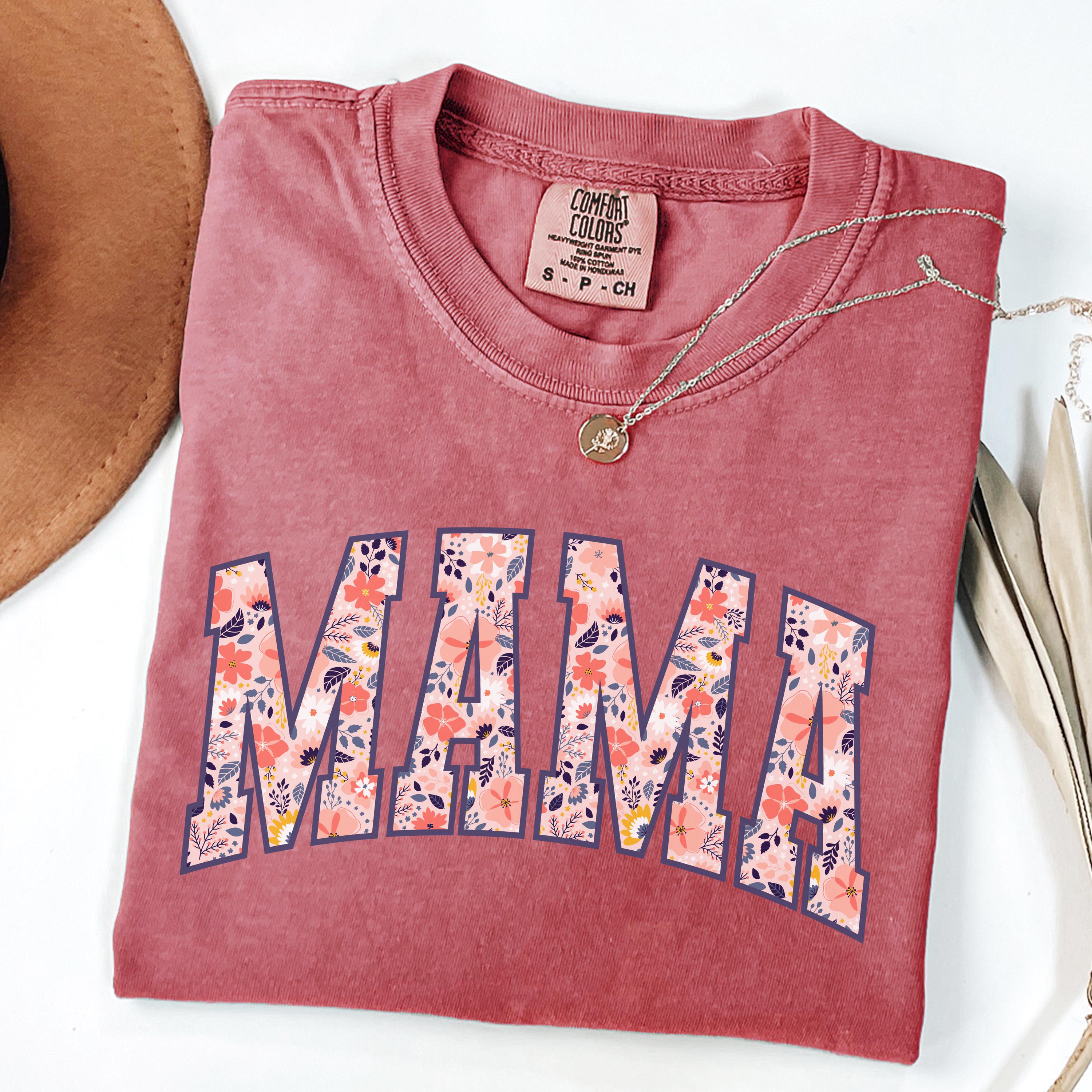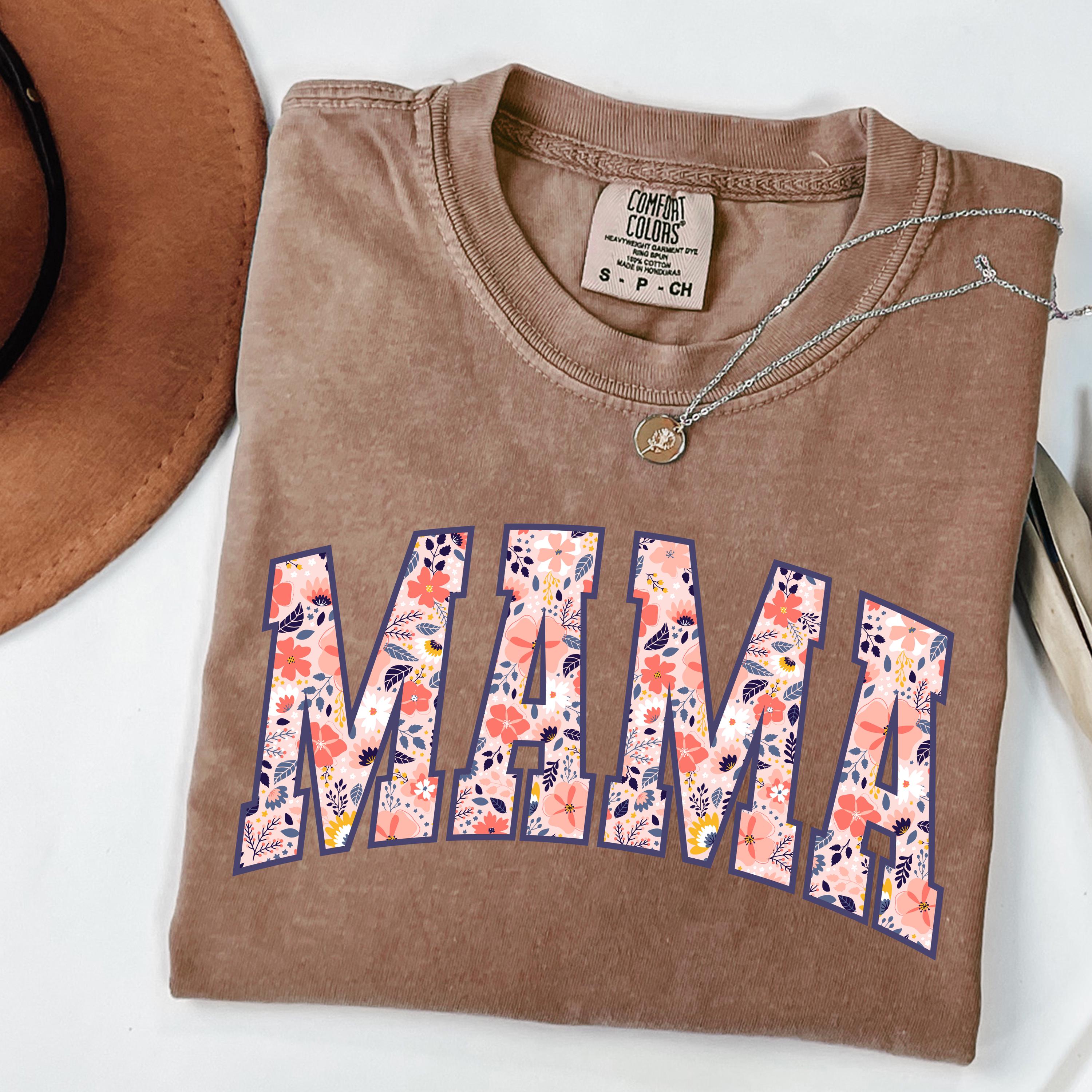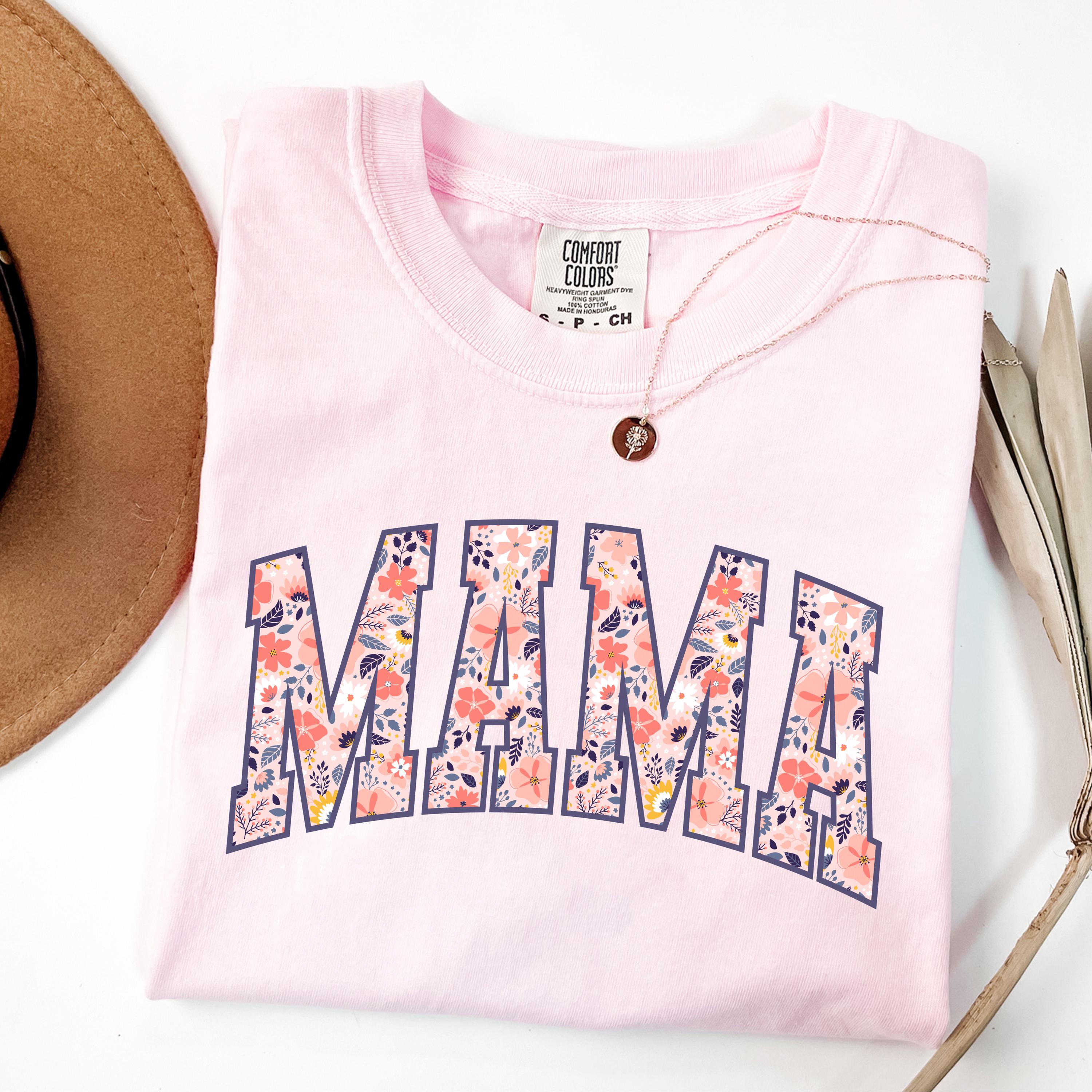 Comfort Colors® Mama T-Shirt, Floral Mom Spring Tee, Trendy Mom Tshirt, Women's Flower Mama Shirt, Spring Pregnancy Reveal Gift for New Mom