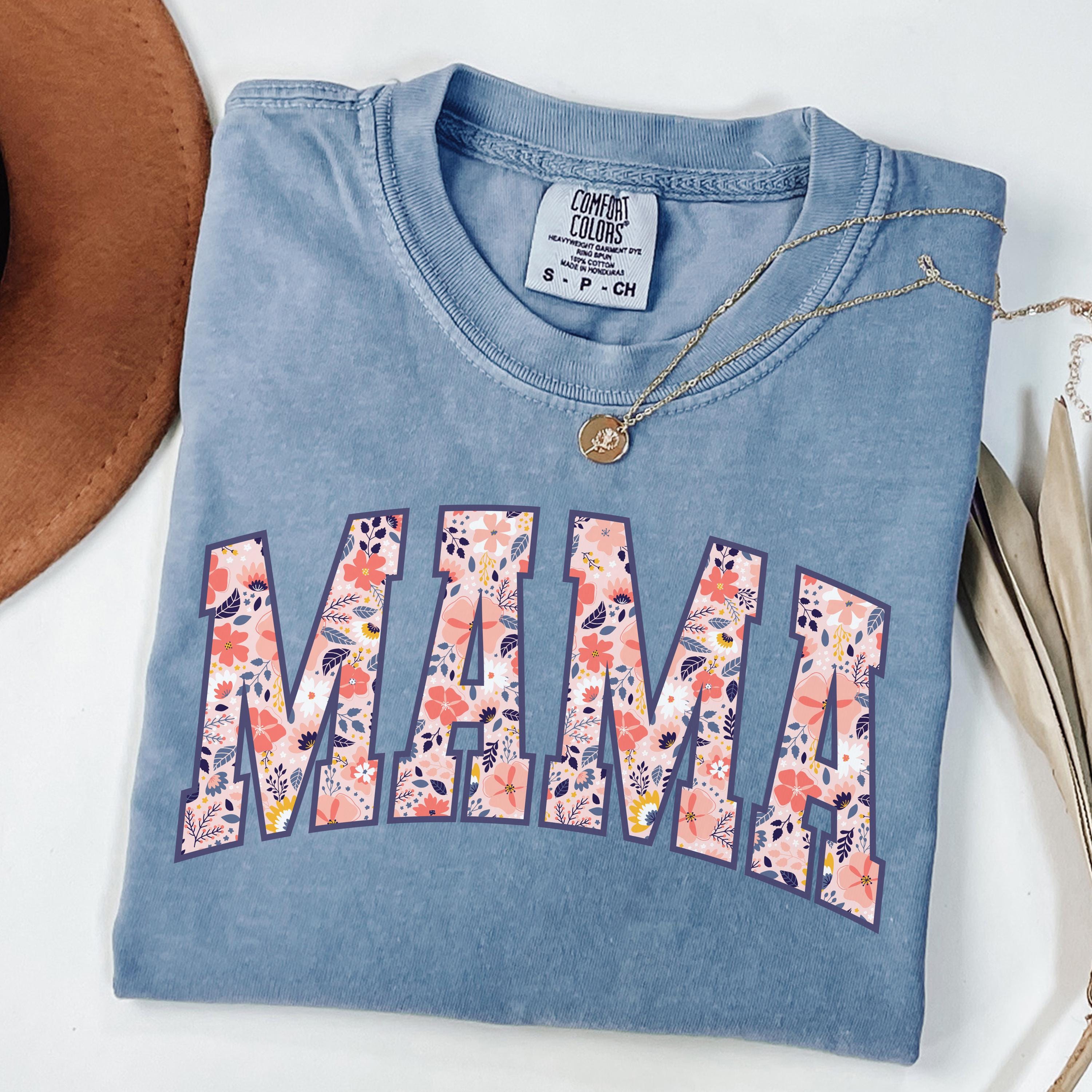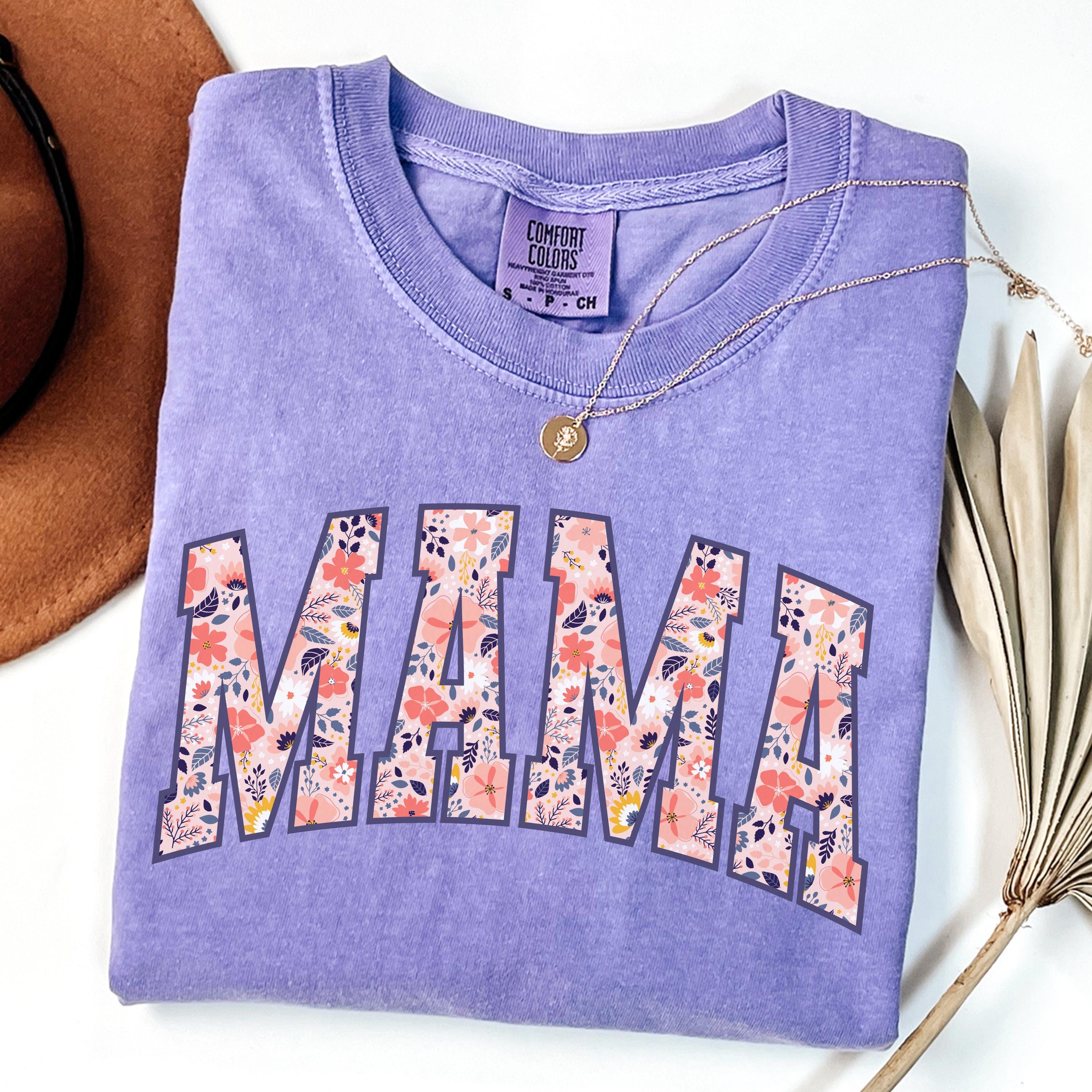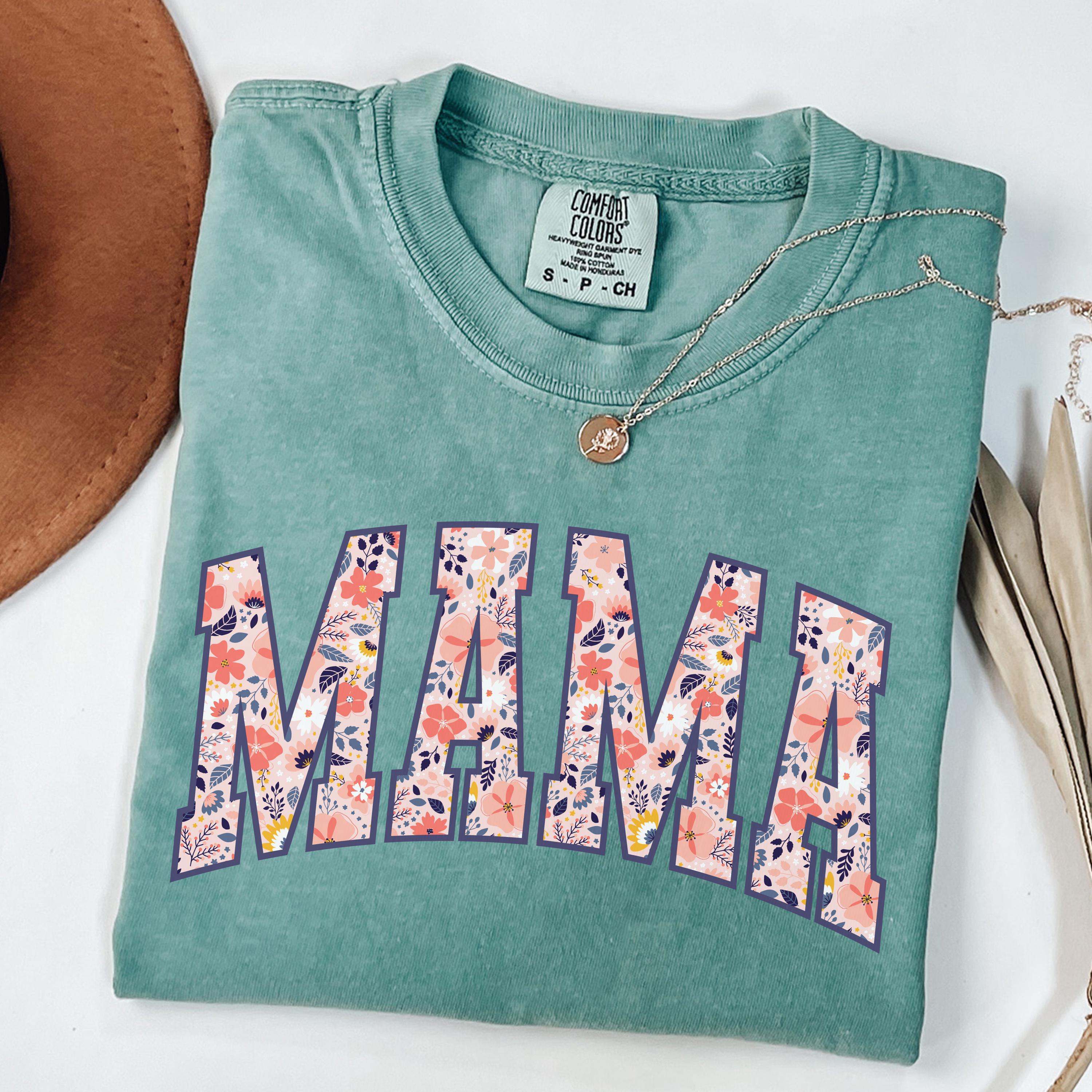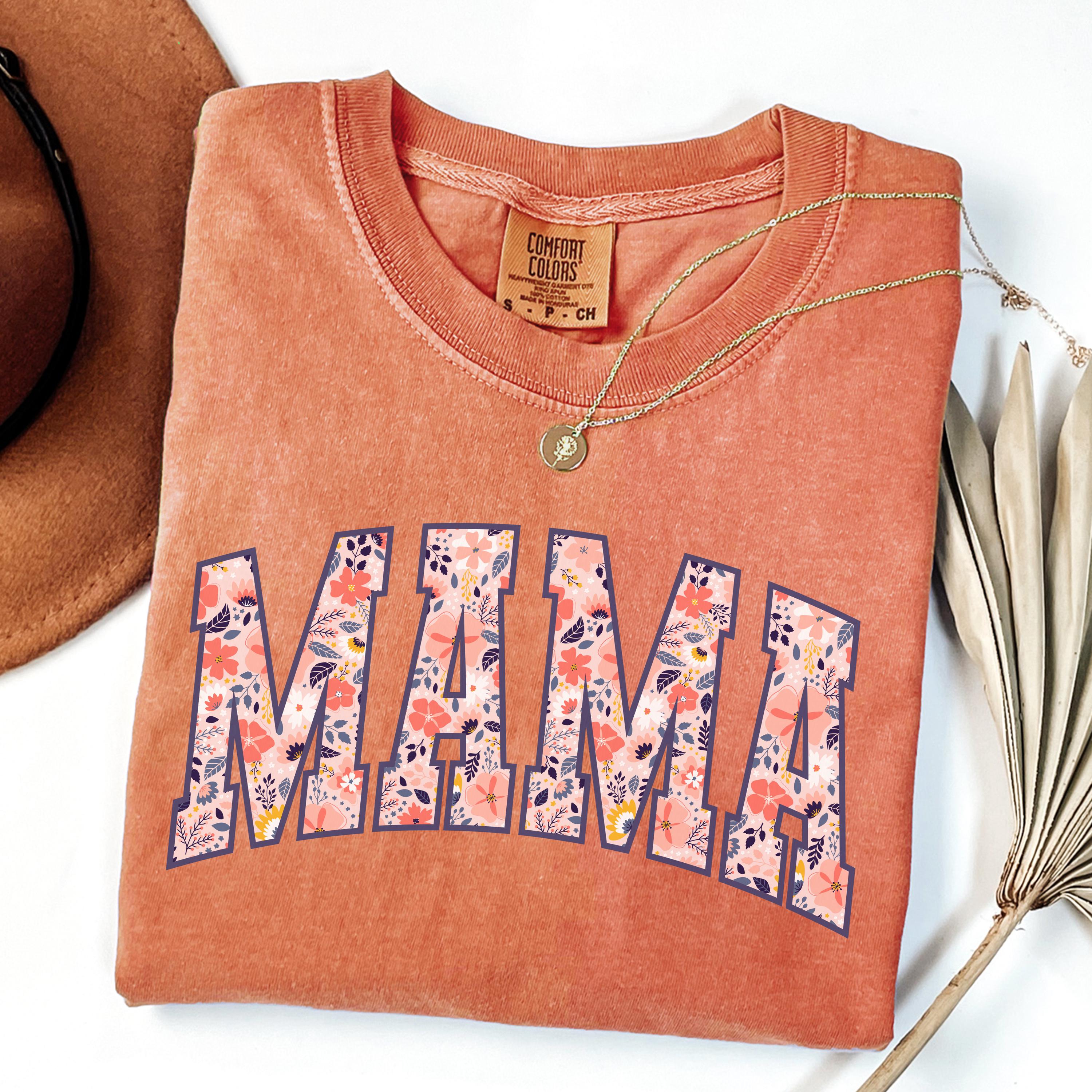Comfort Colors® Mama T-Shirt, Floral Mom Spring Tee, Trendy Mom Tshirt, Women's Flower Mama Shirt, Spring Pregnancy Reveal Gift for New Mom