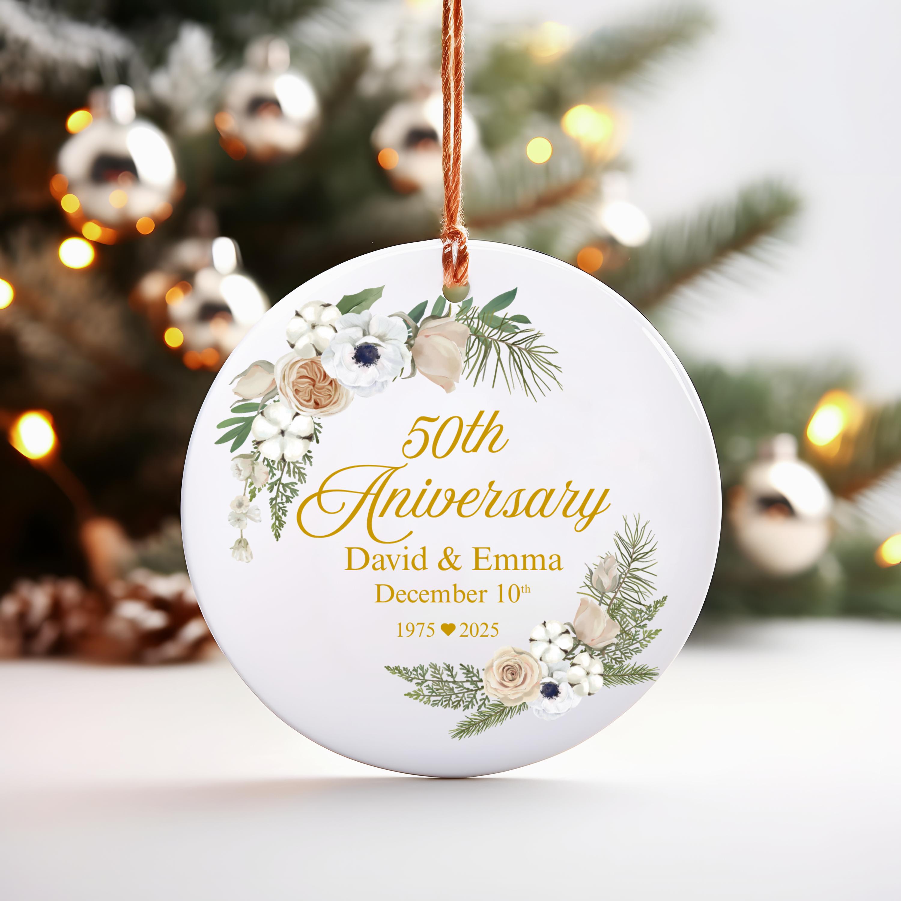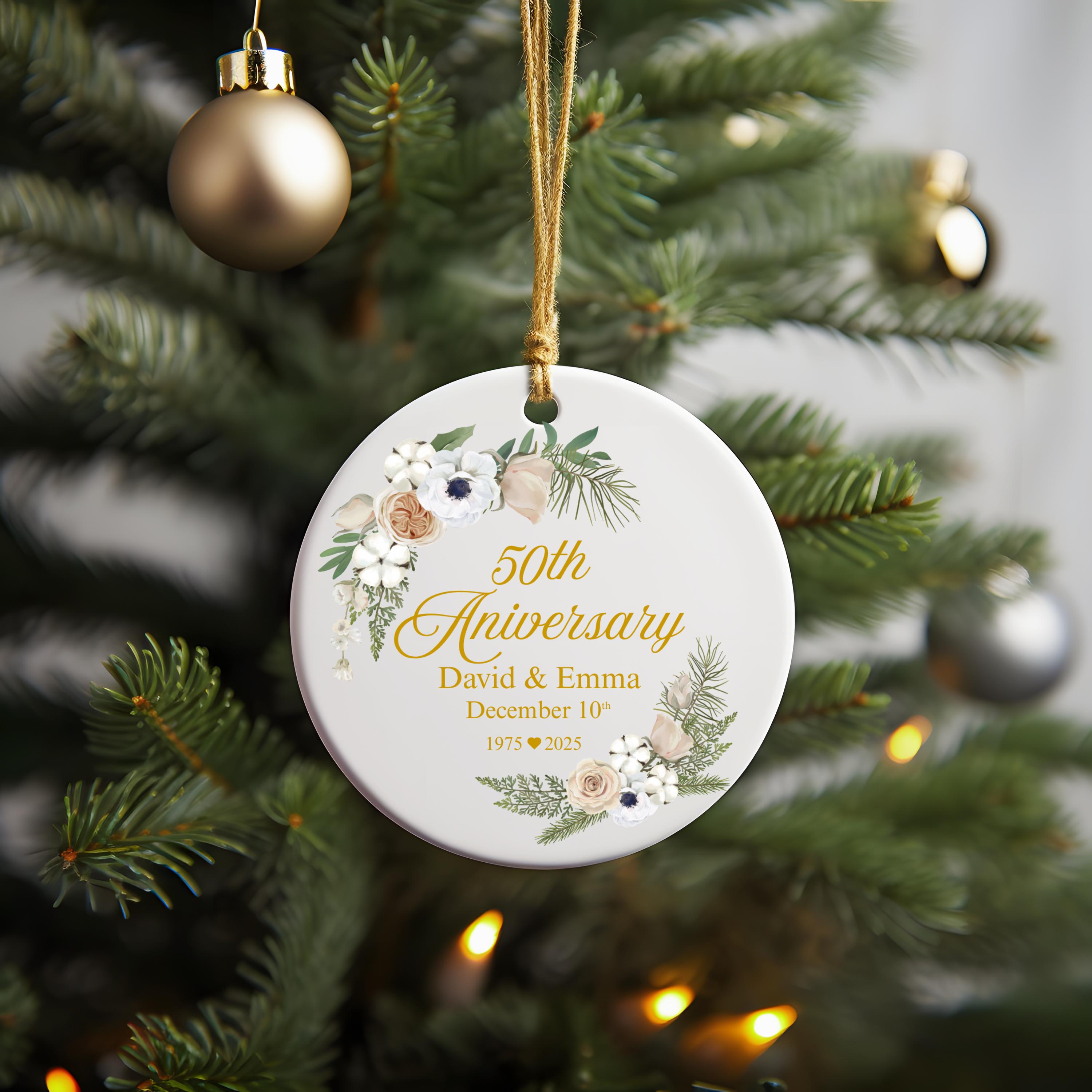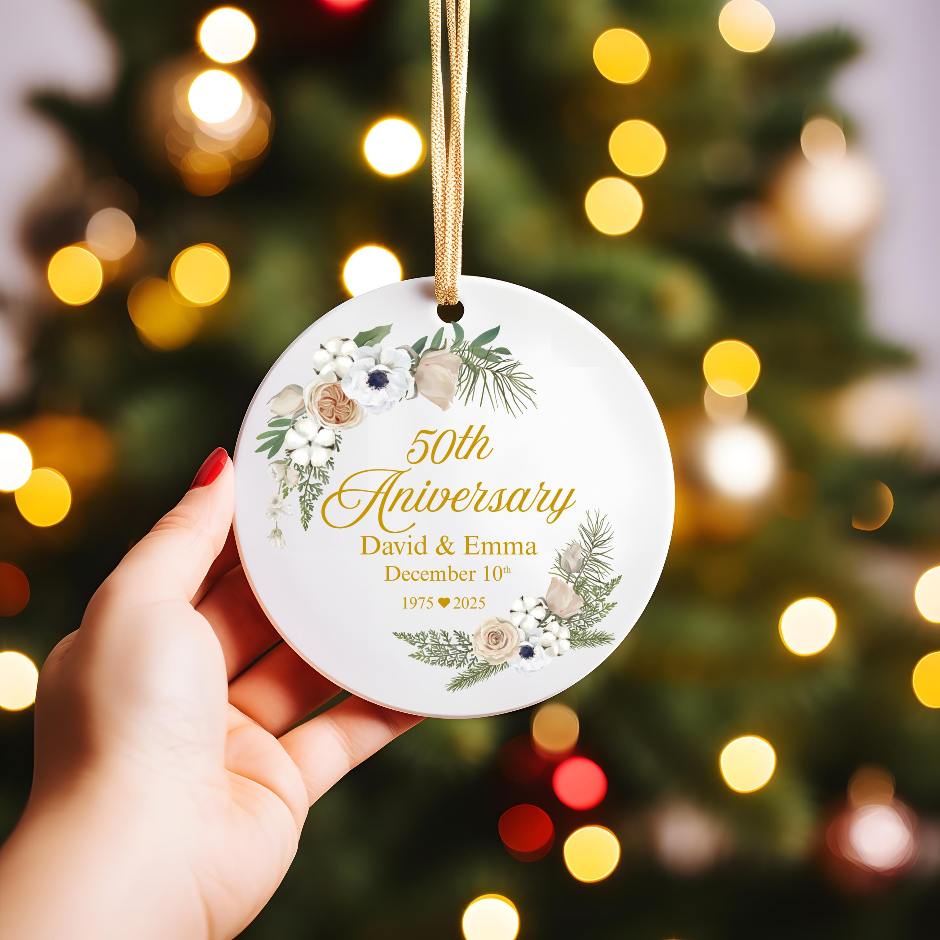 50th Anniversary Ornament, Golden Wedding Anniversary Gift, Christmas Ornament for Couple, Personalized Keepsake, Gift for Her or Him