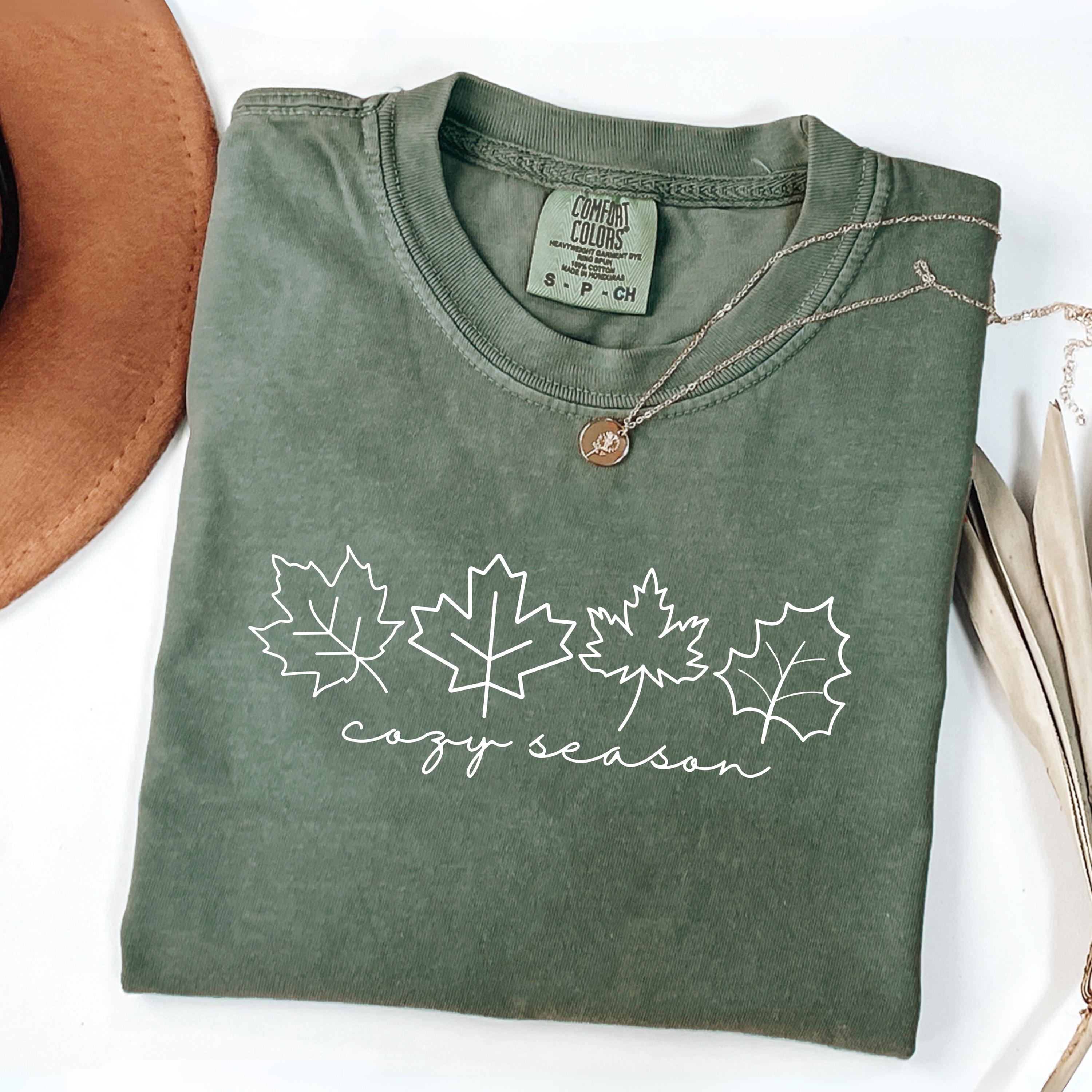 Comfort Colors® Cozy Season Shirt, Fall Leaf Graphic Tee, Autumn Aesthetic Clothes, Cute Fall Shirt, Get Cozy Shirt, Women Fall Shirt