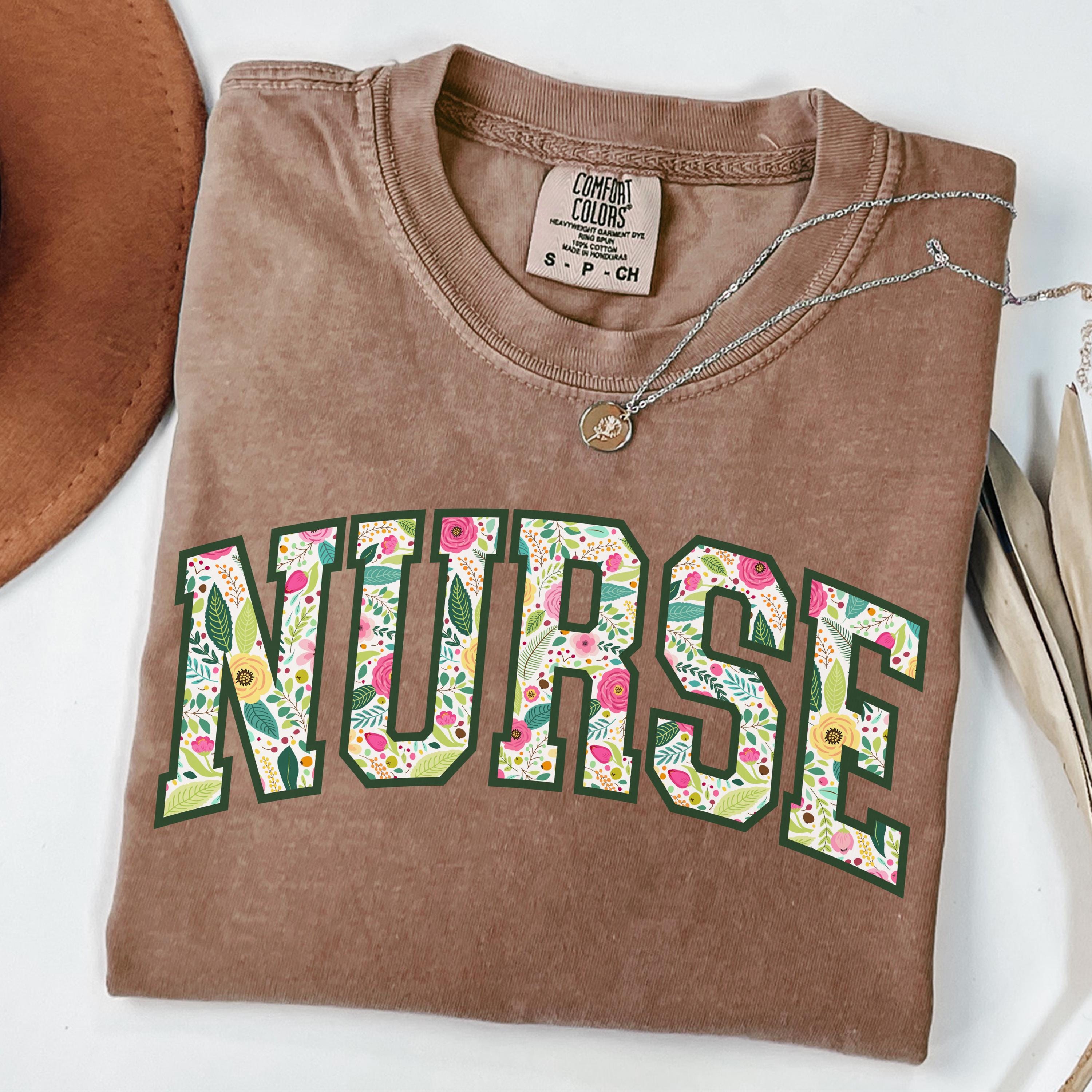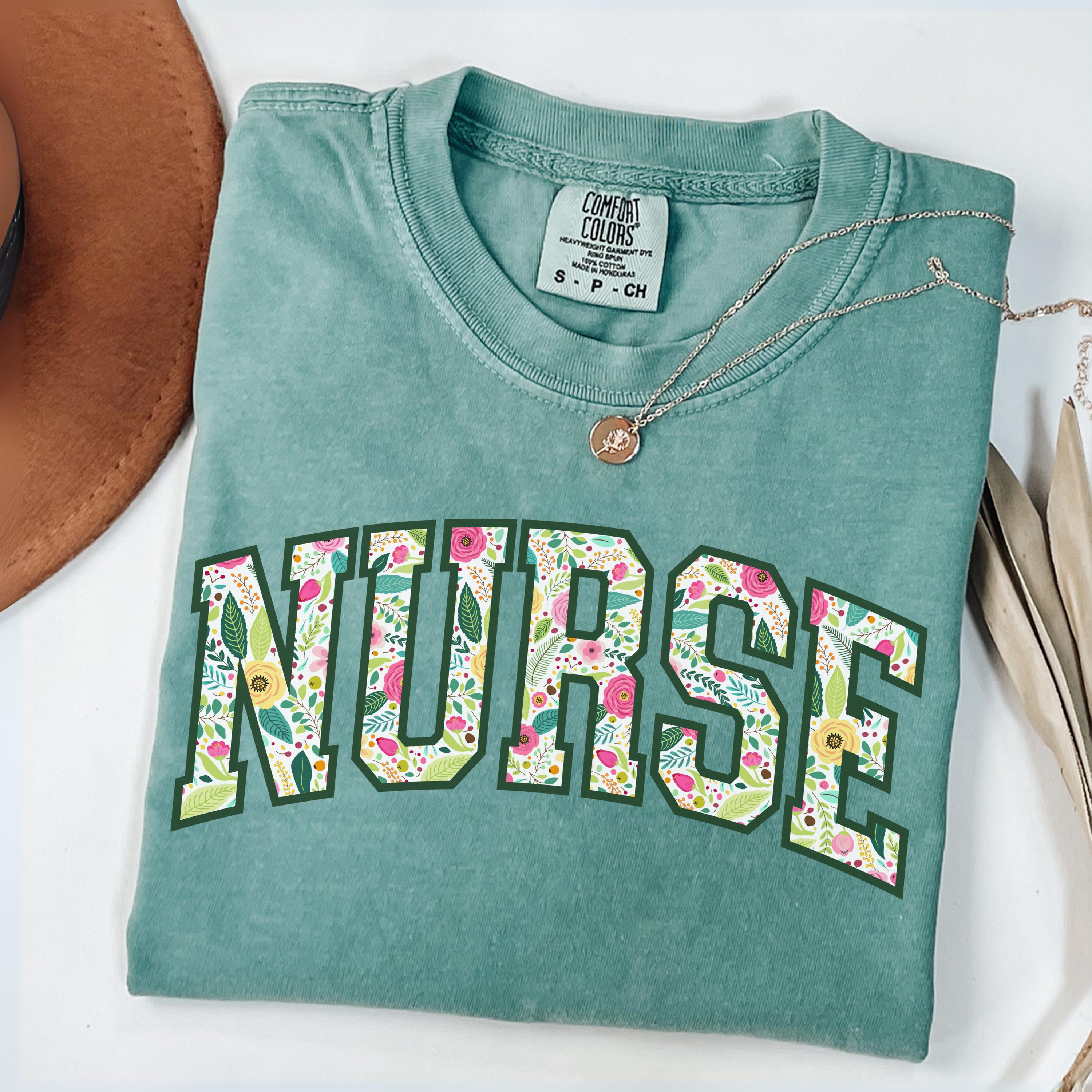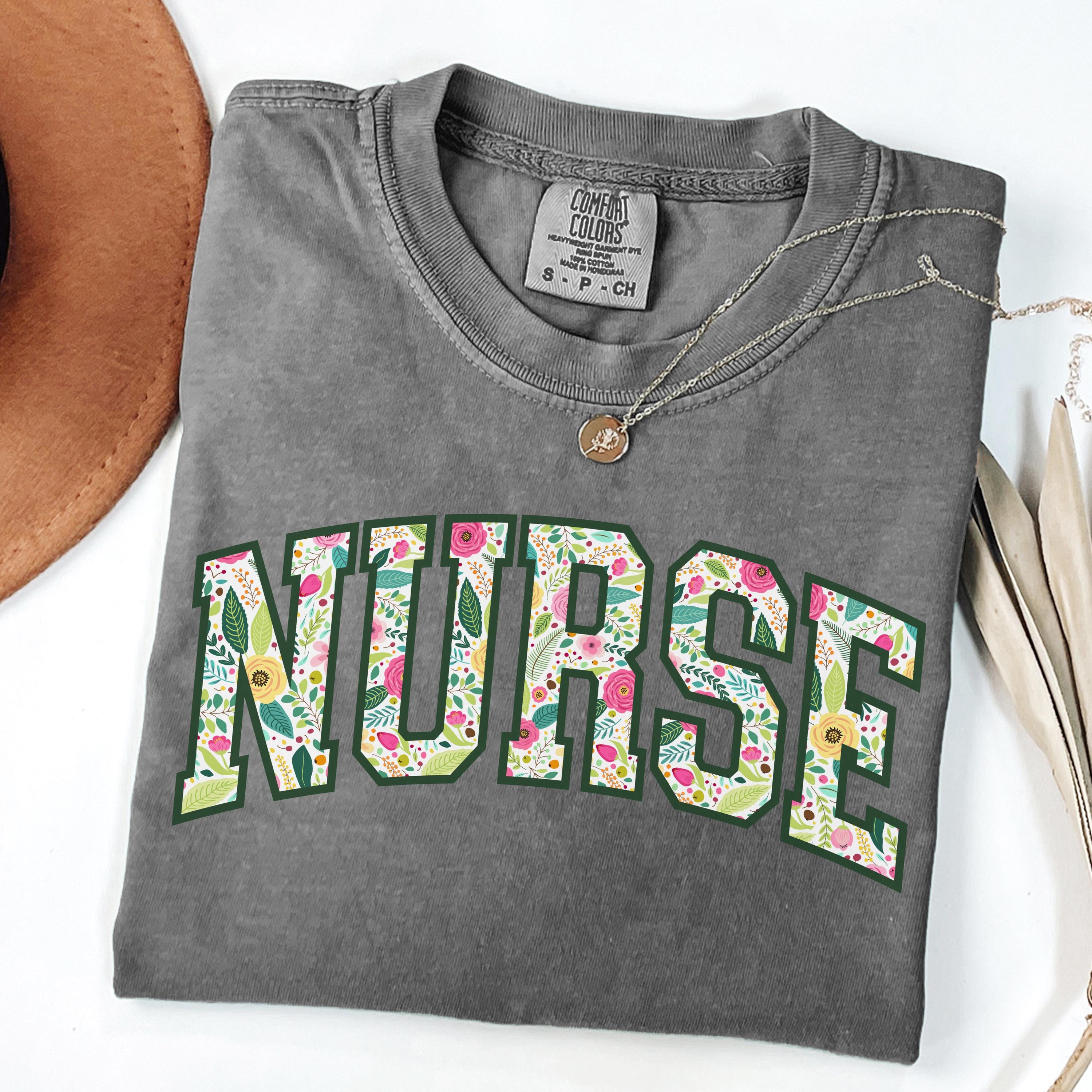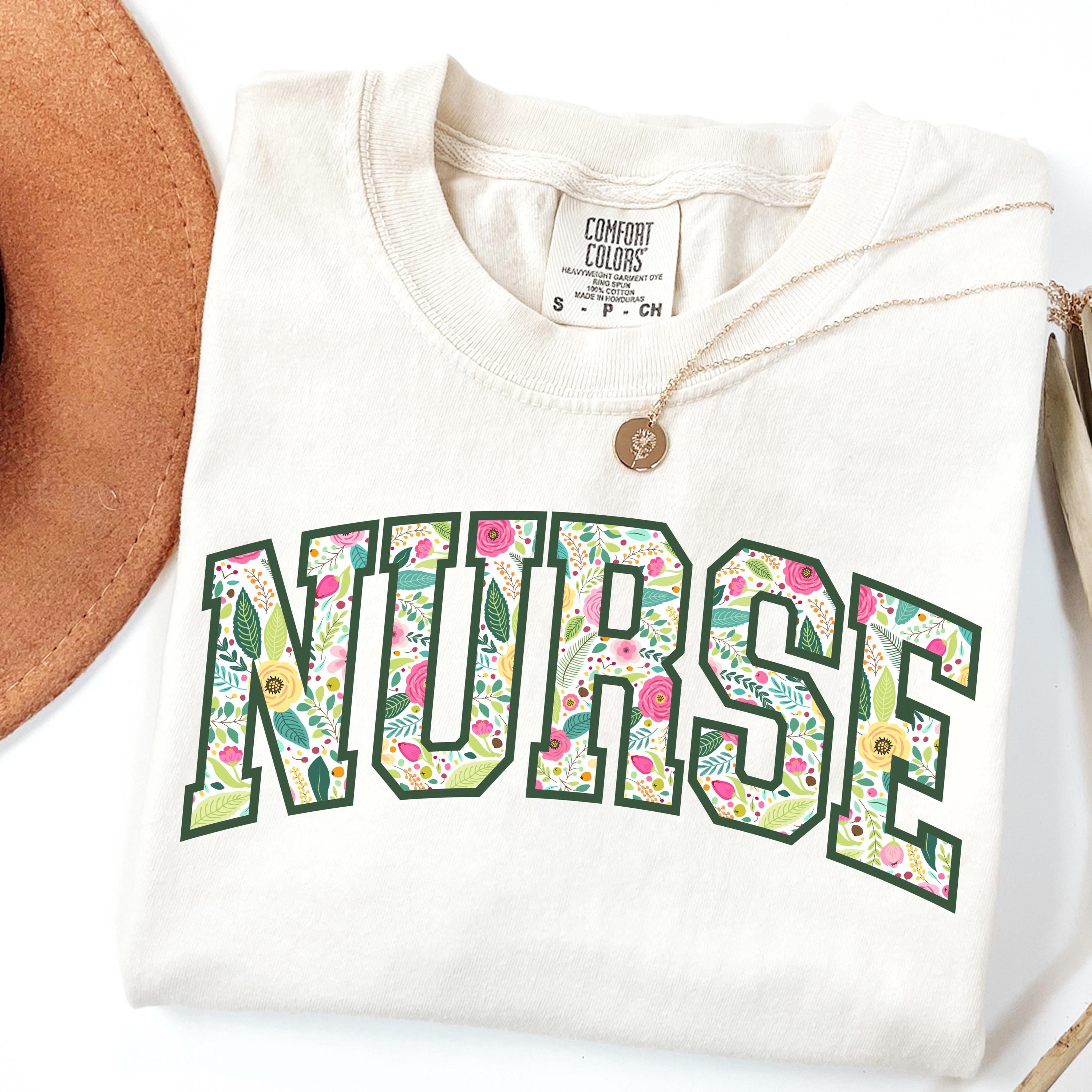 Comfort Colors® Floral Nurse Shirt, Cute RN Tee, Nurse Life T-Shirt, Nursing School Shirt, Nurse Graduation Gift, Medical Worker Tee