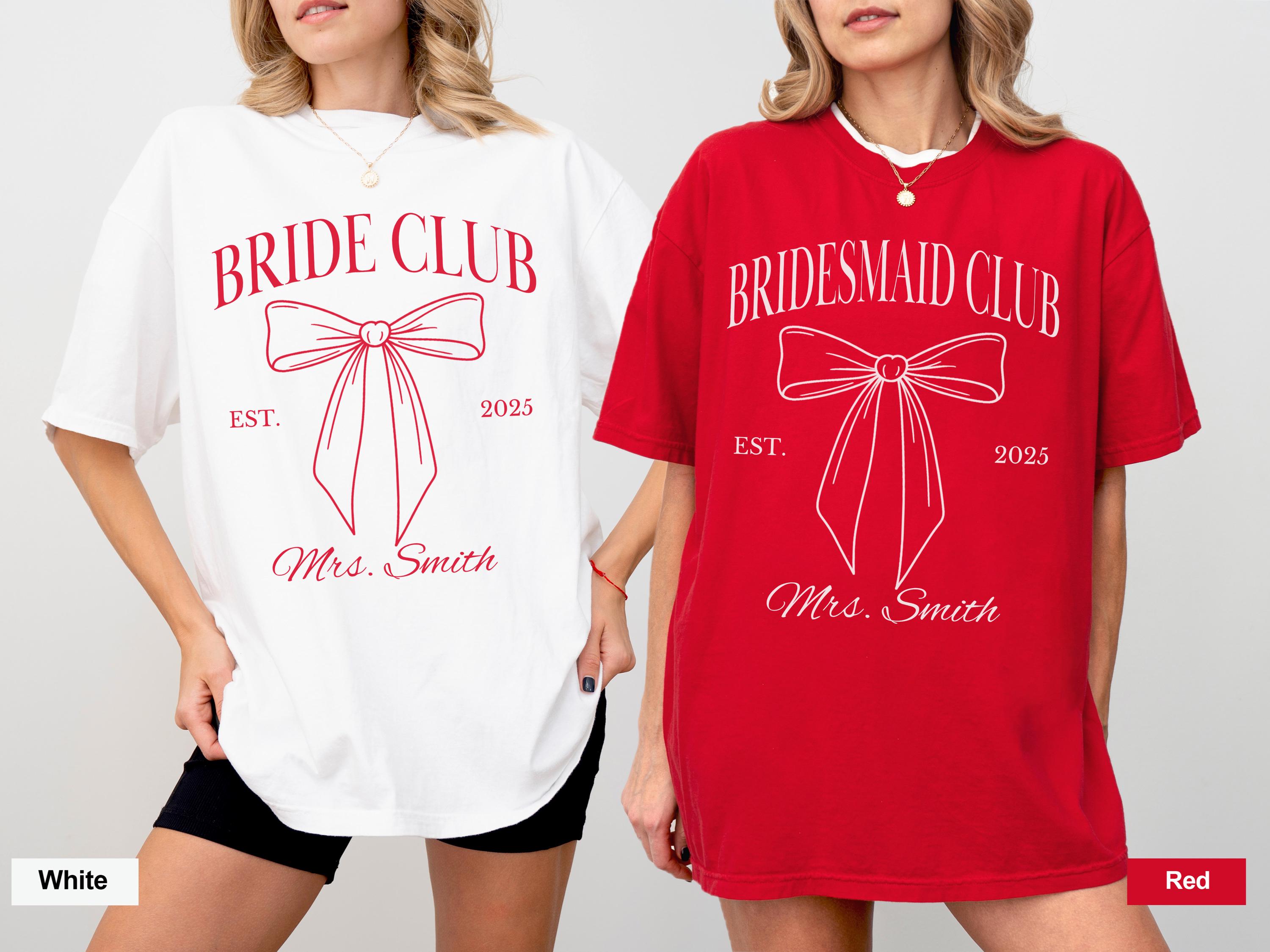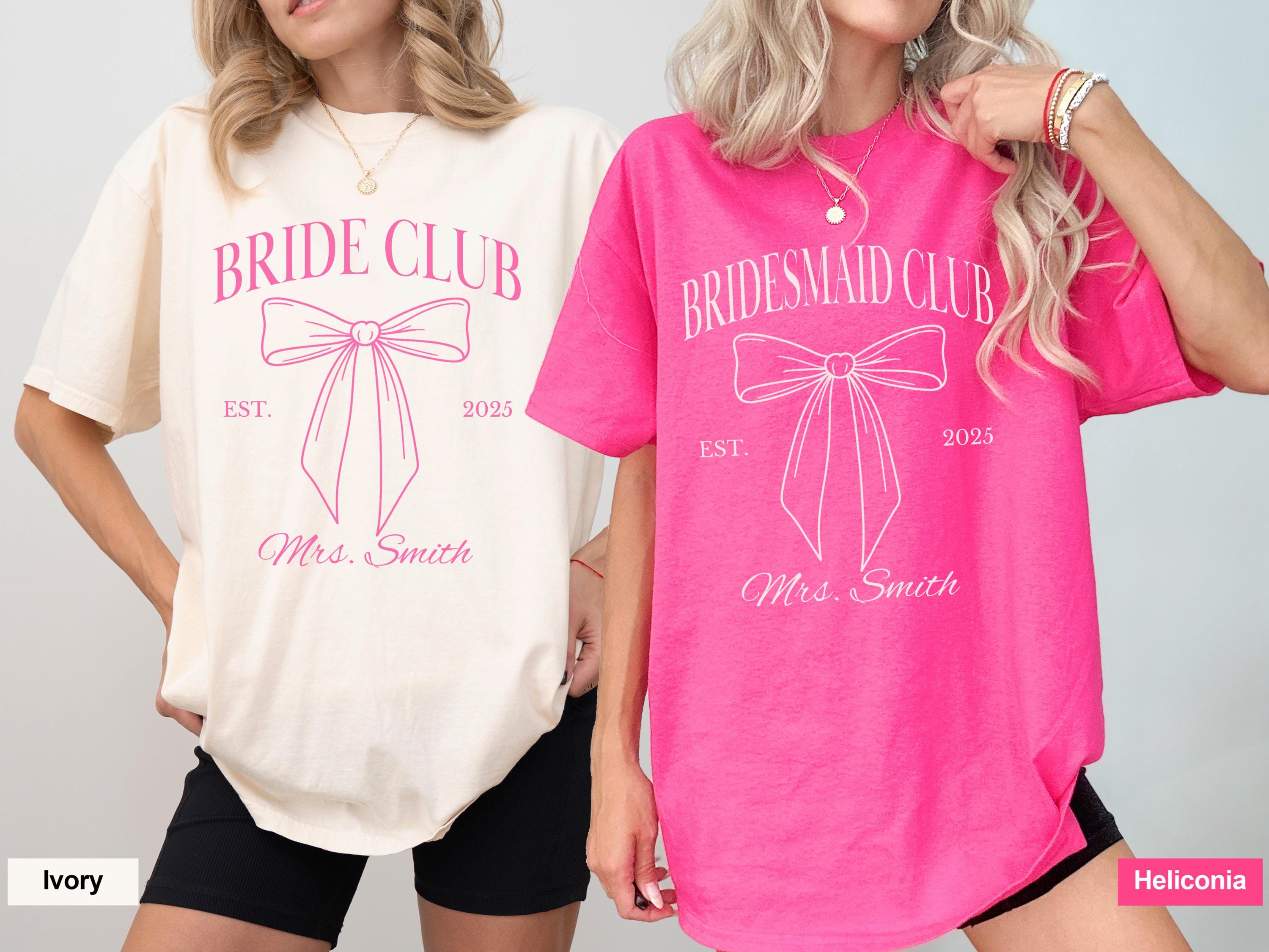 Comfort Colors® Bride Club Shirt, Custom Bride Bridesmaid Shirt, Personalized Gift For Bride, Bachelorette Bride Bow Shirt, Future Mrs Tee