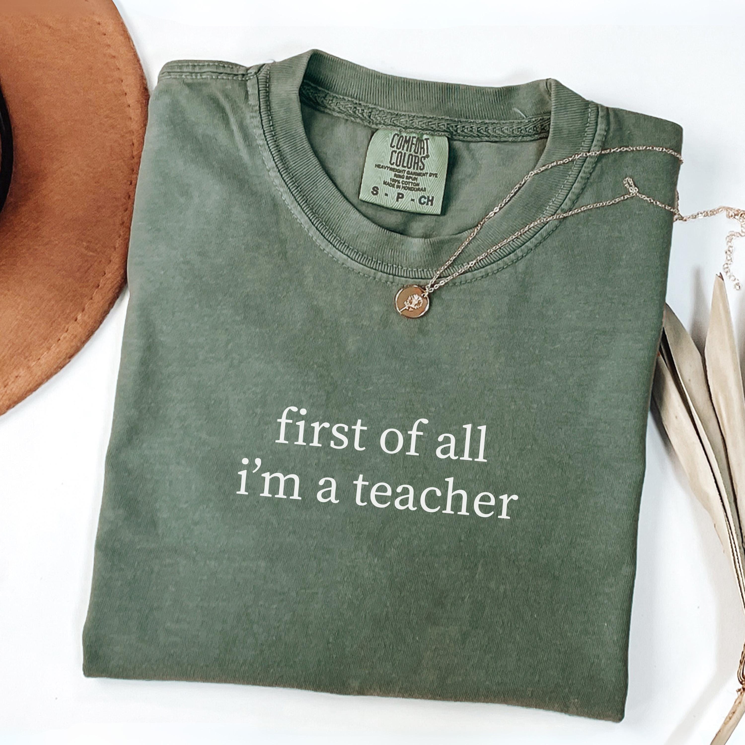 Comfort Colors® First of All I’m a Teacher Shirt, Funny Teacher Shirt, Minimalist Teacher Shirt, Back to School Shirt, Gift for Teacher