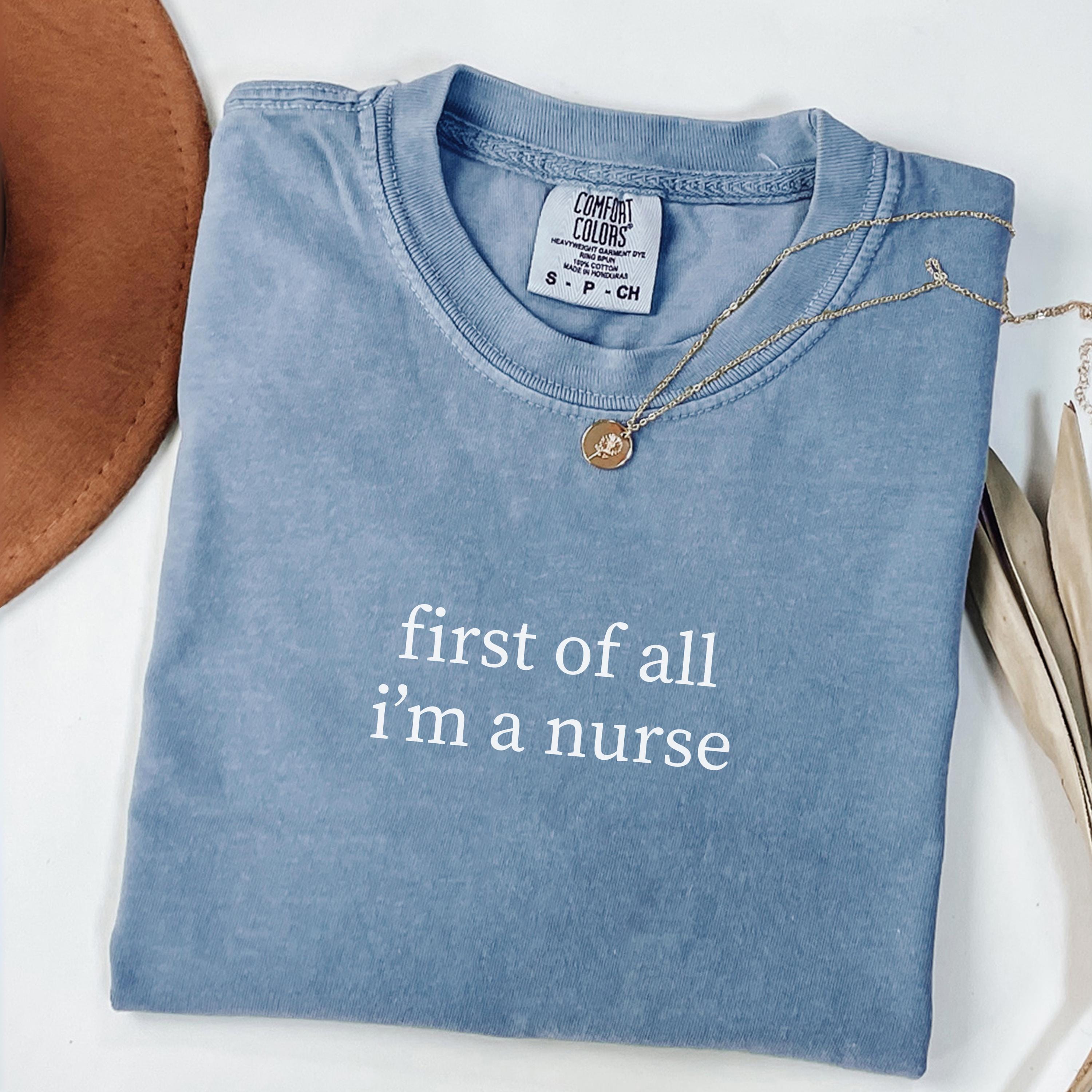 Comfort Colors® First of All I’m a Nurse Shirt, Funny Nurse Shirt, Minimalist Nurse Shirt, Nursing School Shirt, RN Shirt, Gift for Nurse