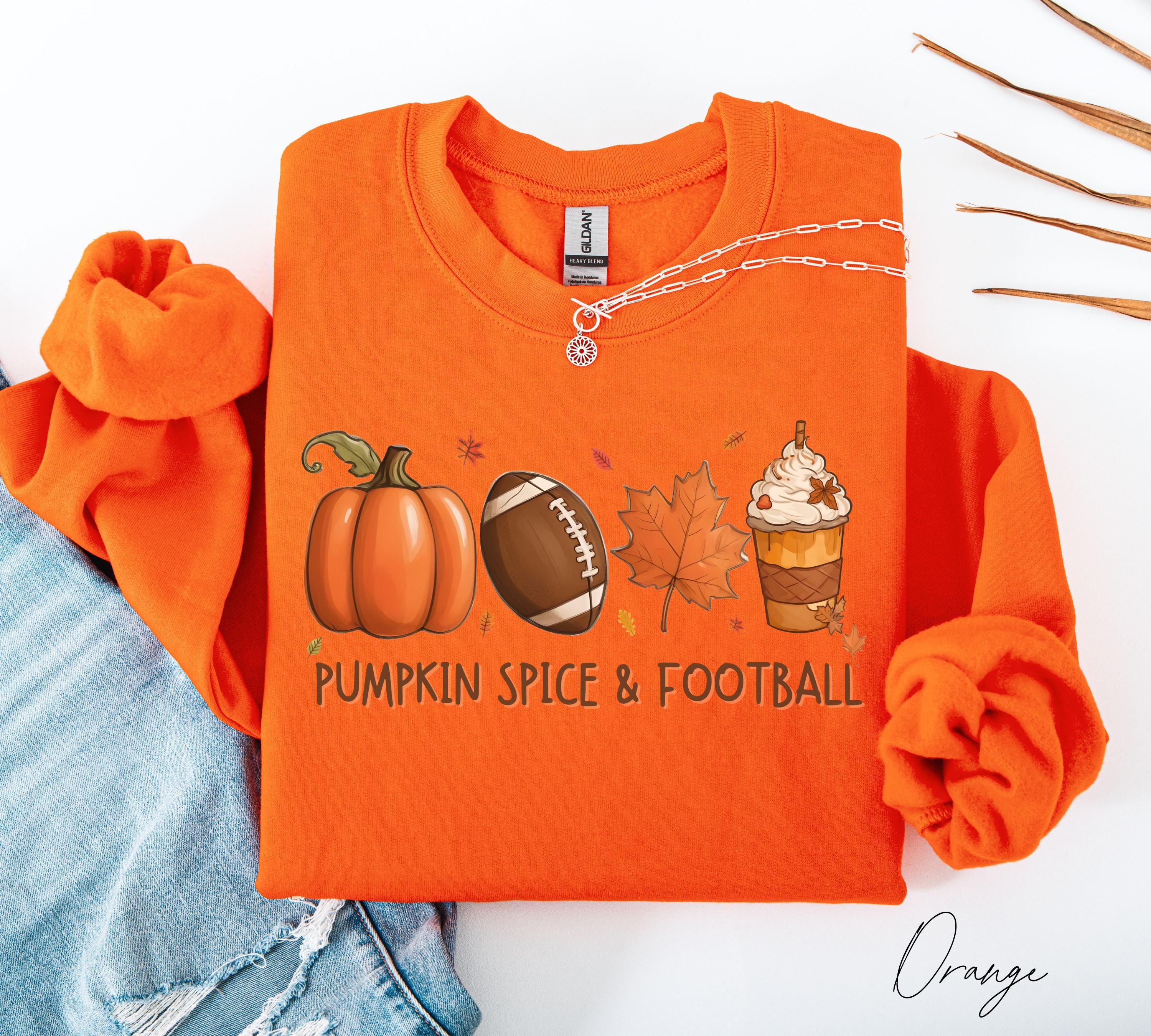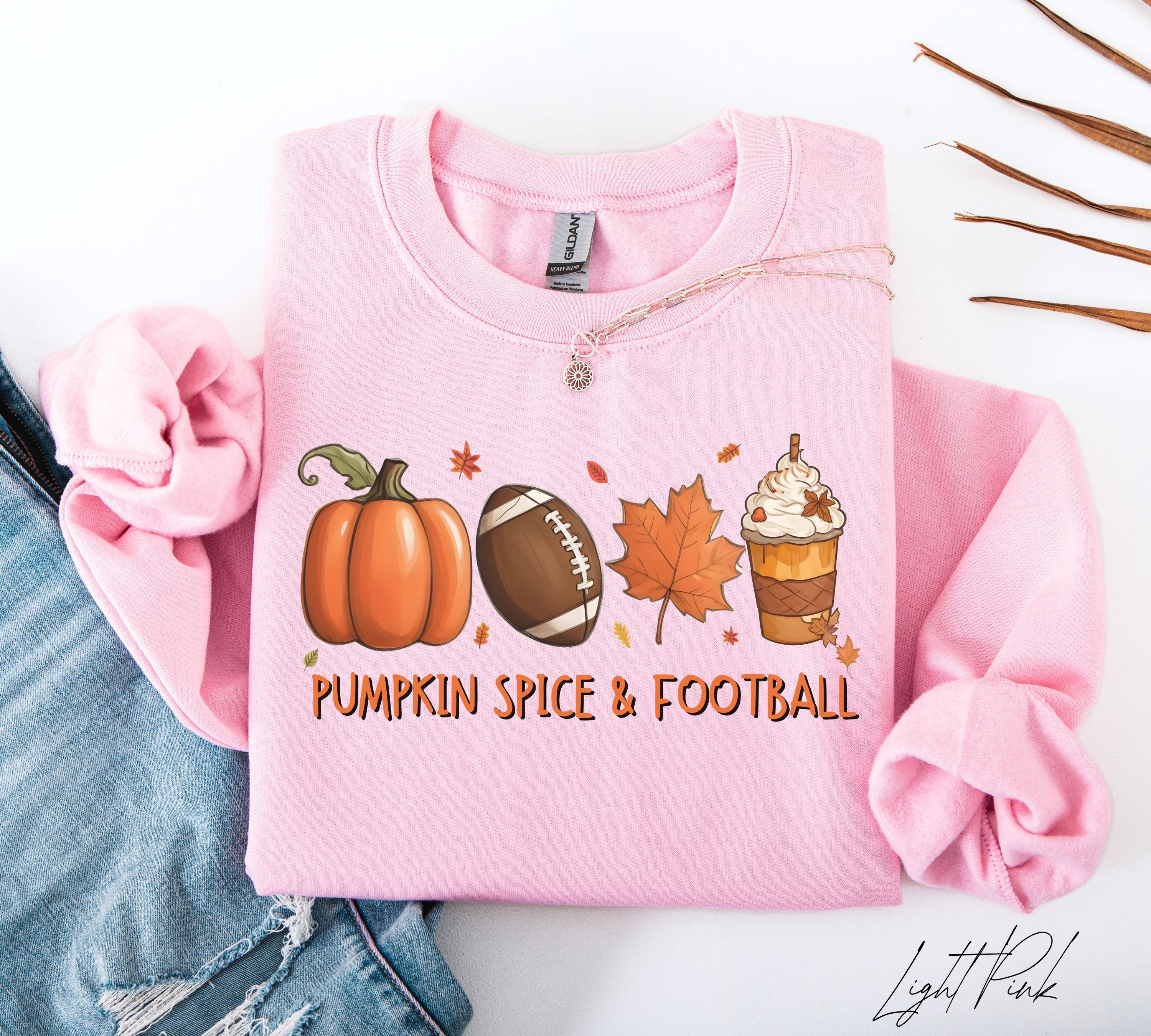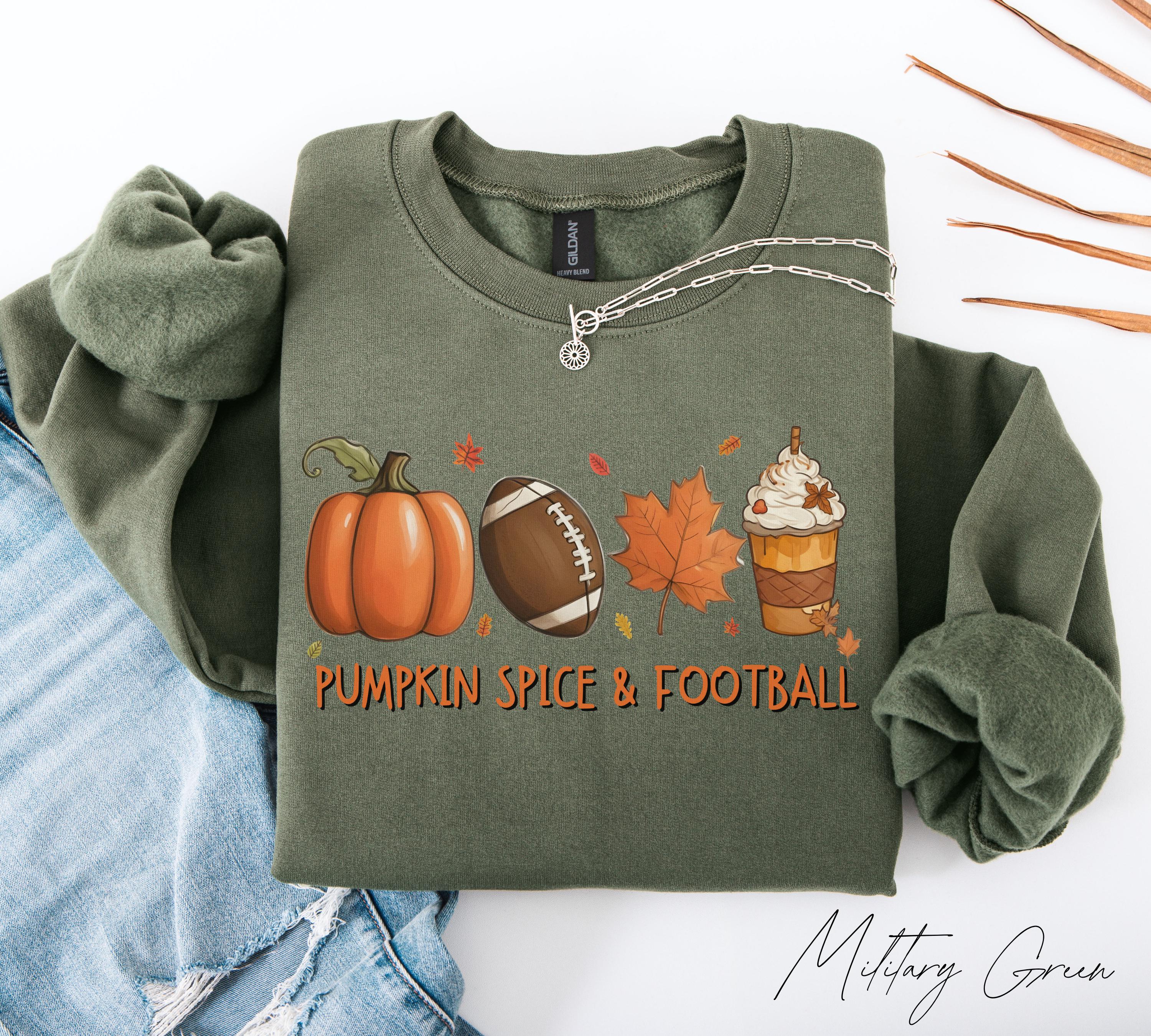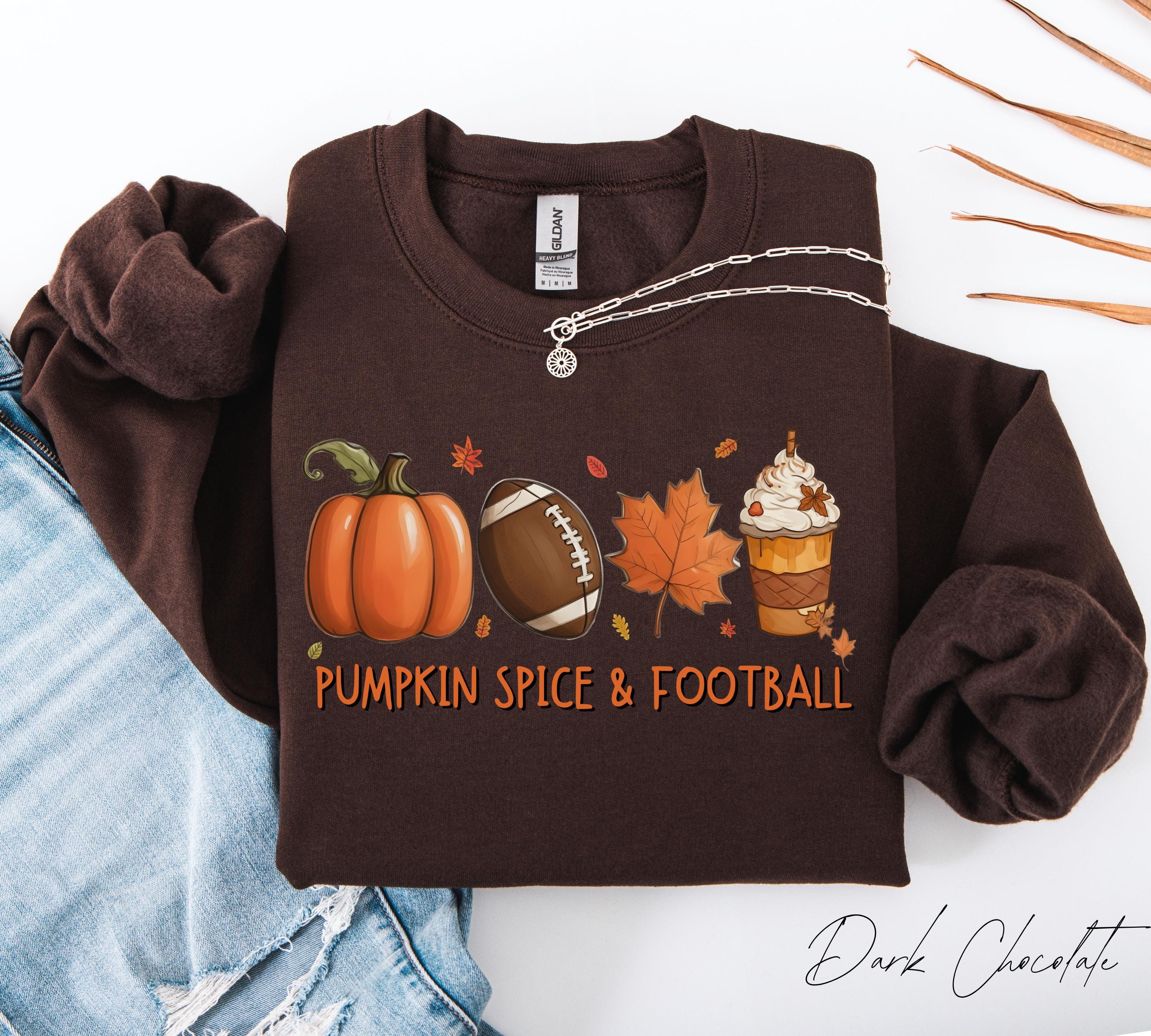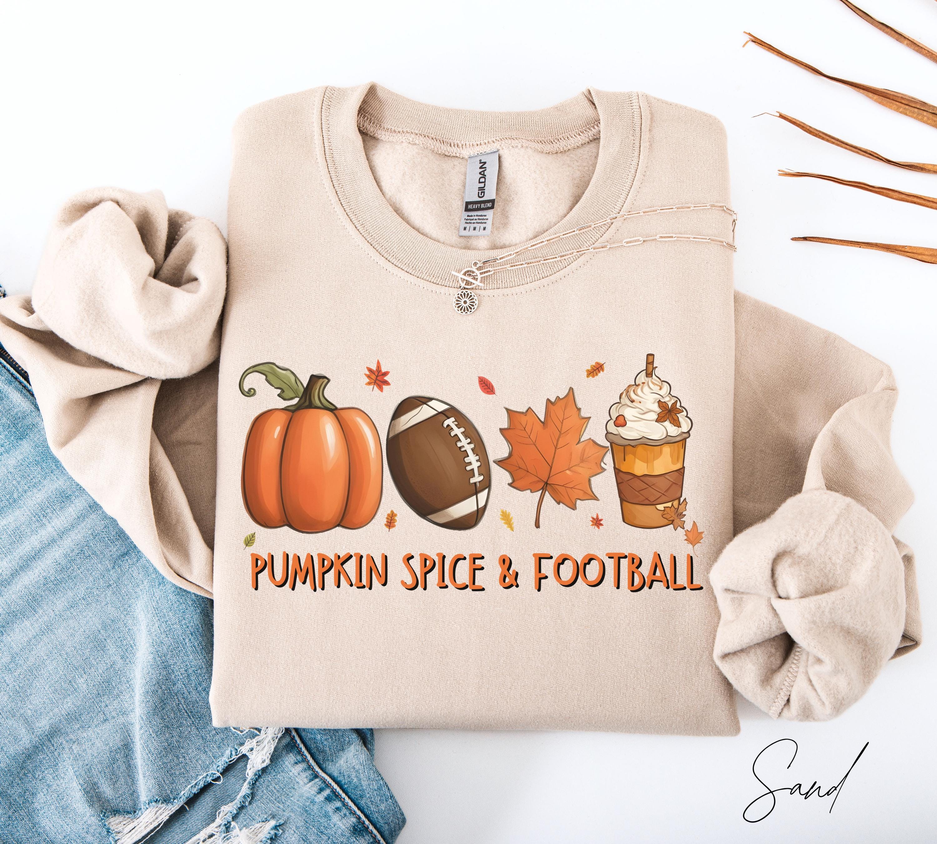 Pumpkin Spice & Football Sweatshirt, Fall Season Sweater For Women, Cozy Autumn Coffee Sweatshirt, Thanksgiving Gift, Fall Football Shirt
