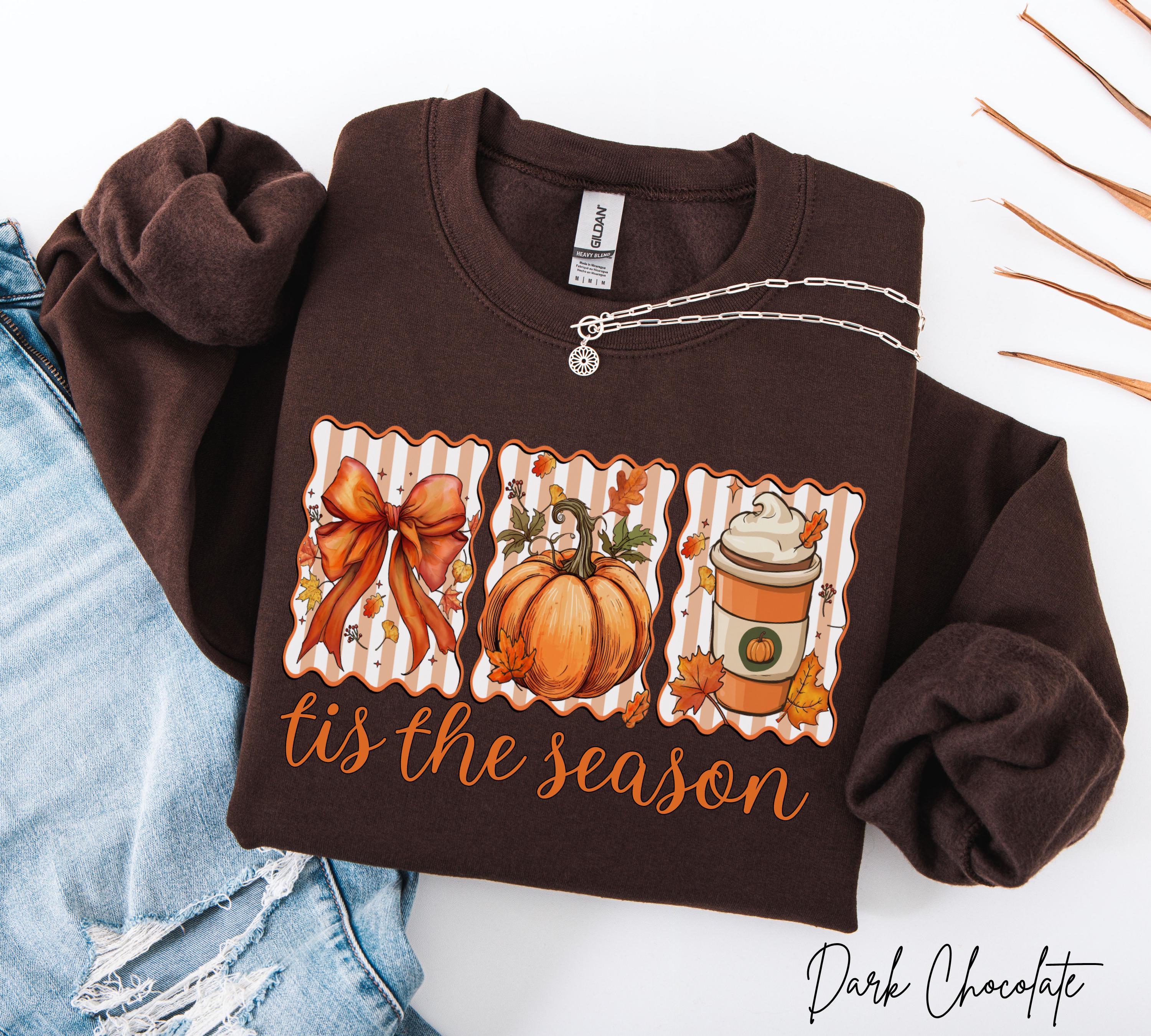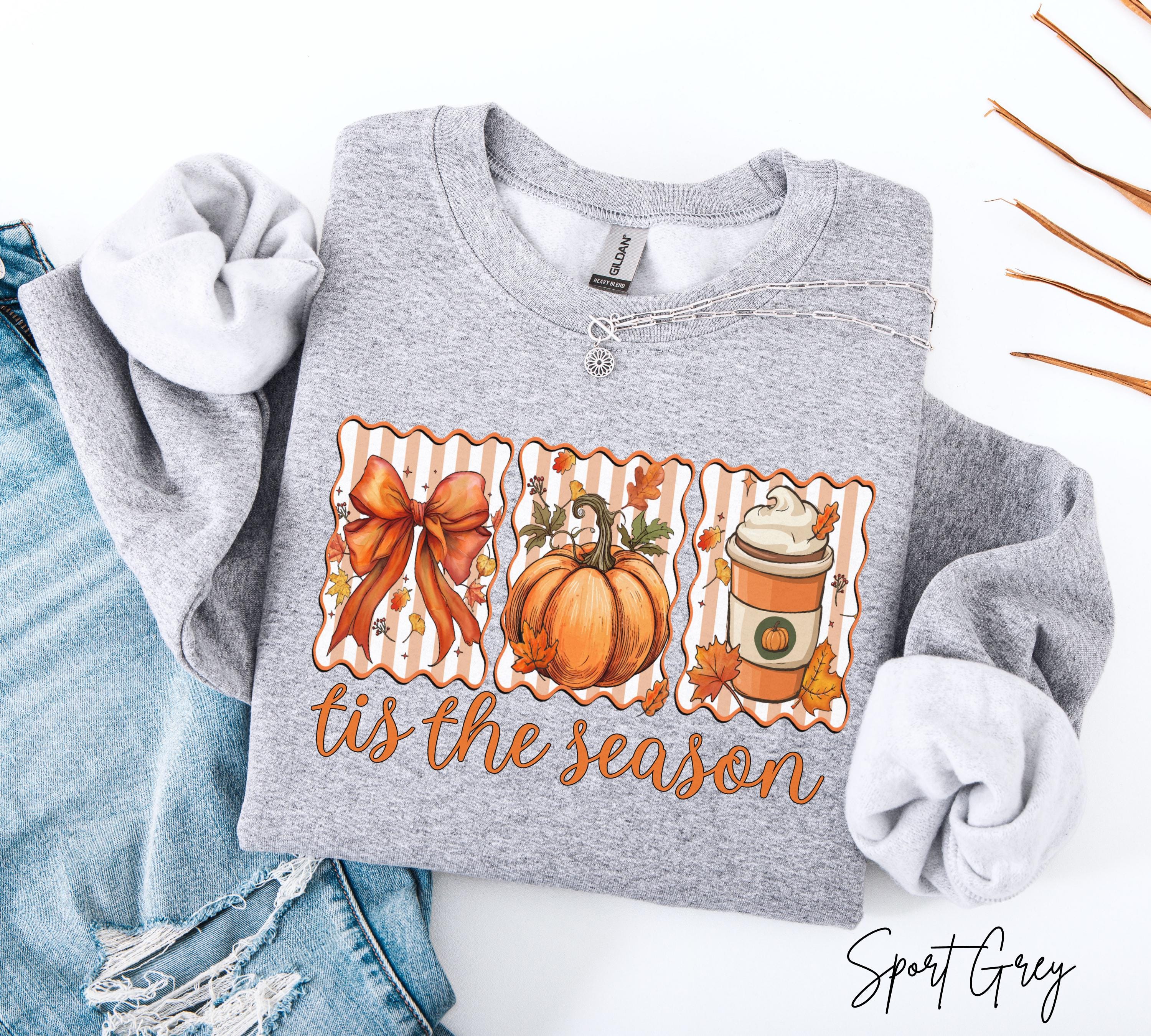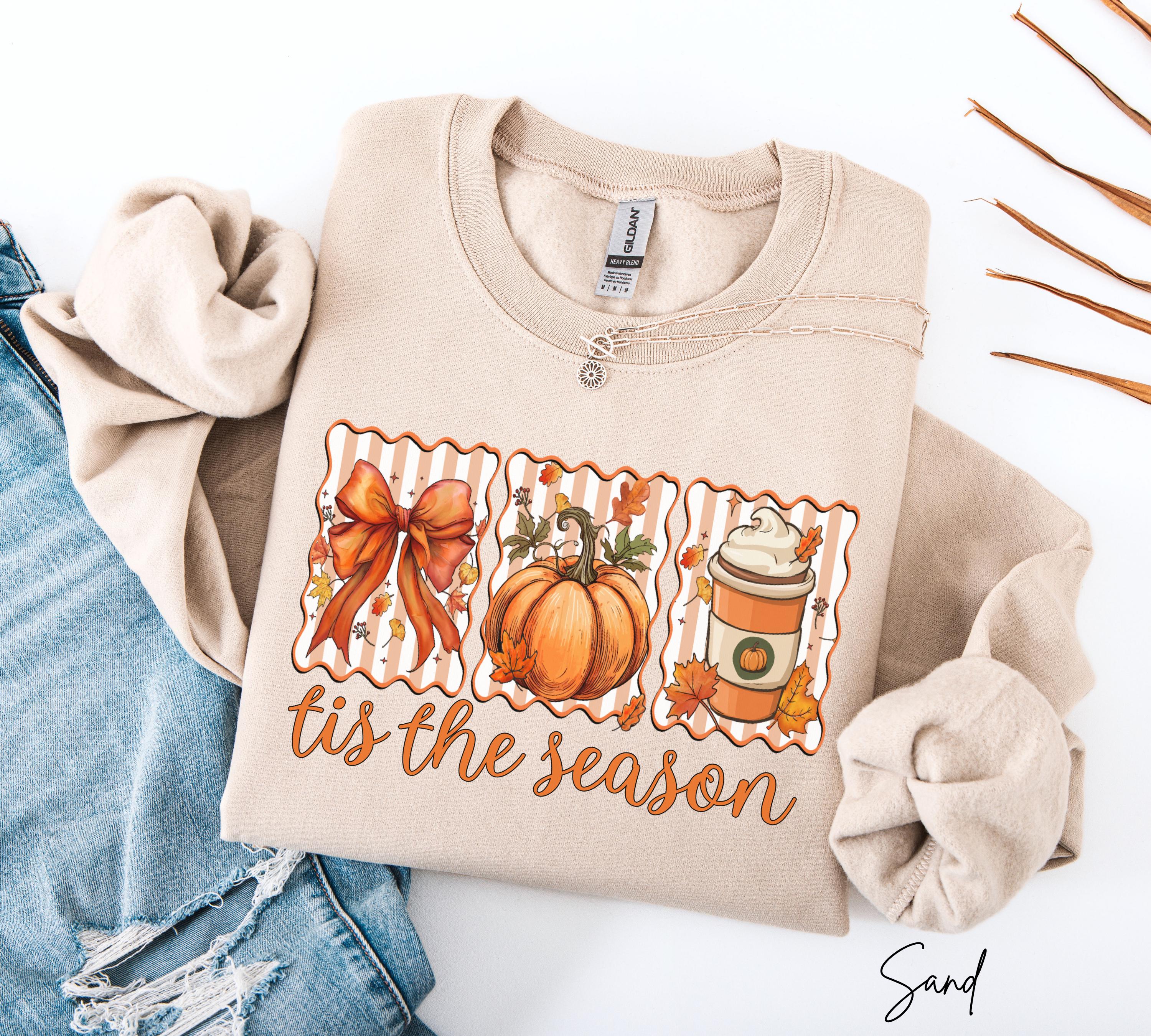 Tis The Season Sweatshirt, Autumn Pumpkin Coffee Shirt, Cozy Fall Crewneck, Thanksgiving Gift For Her, Pumpkin Spice Latte Sweatshirts