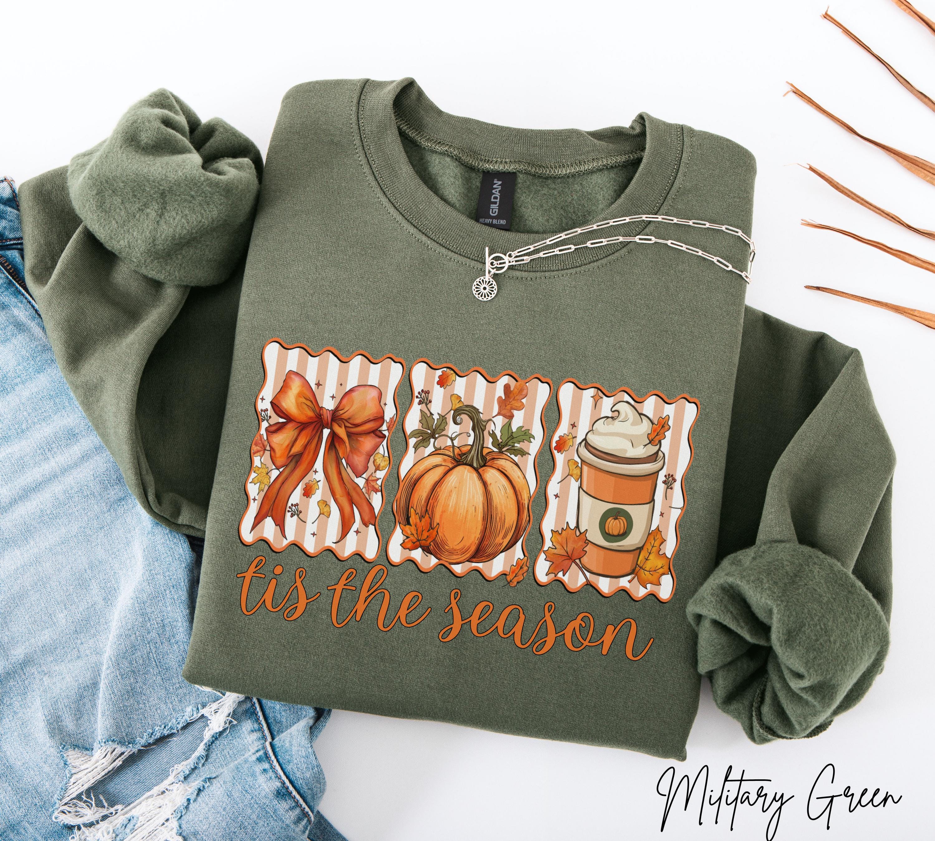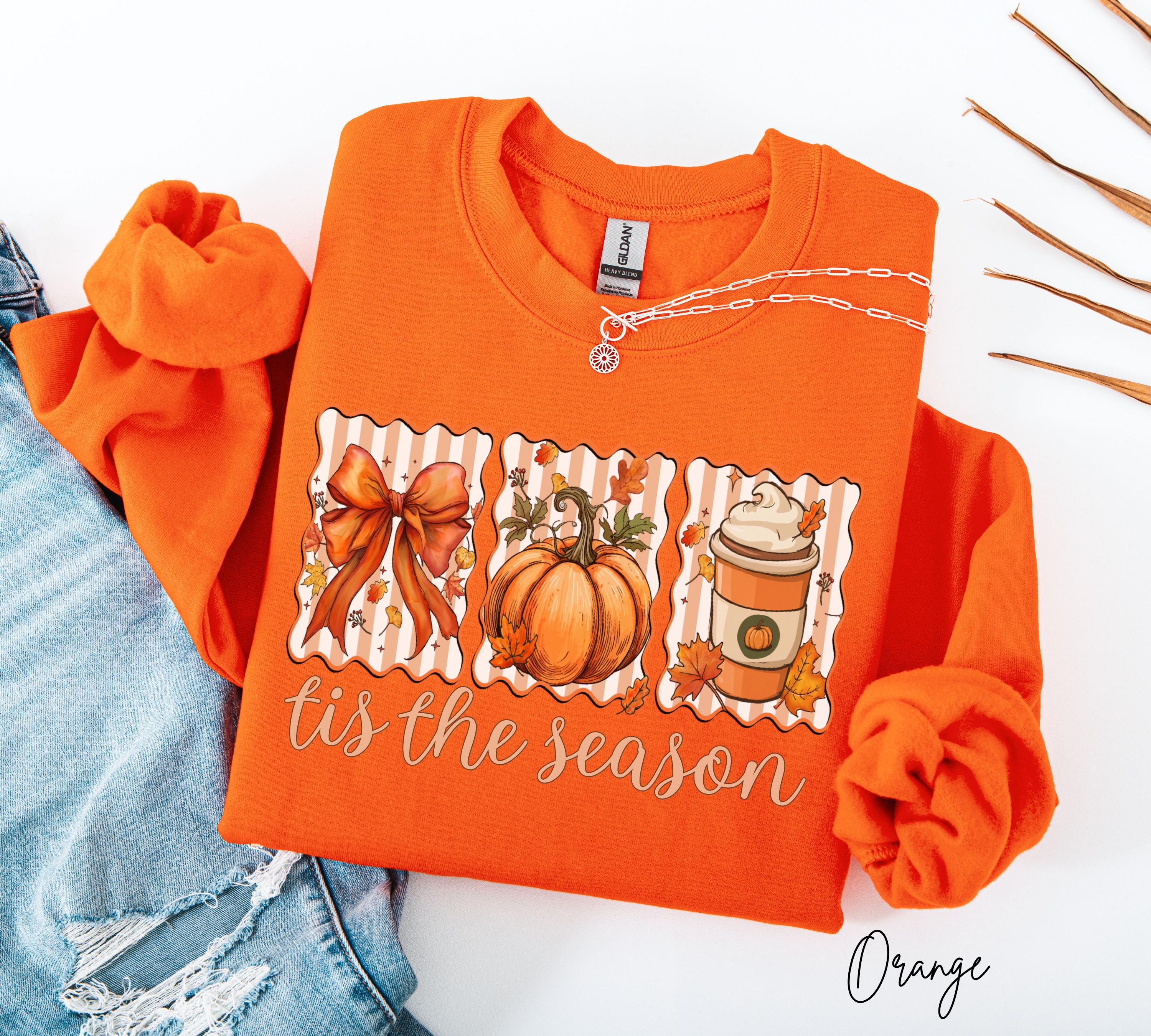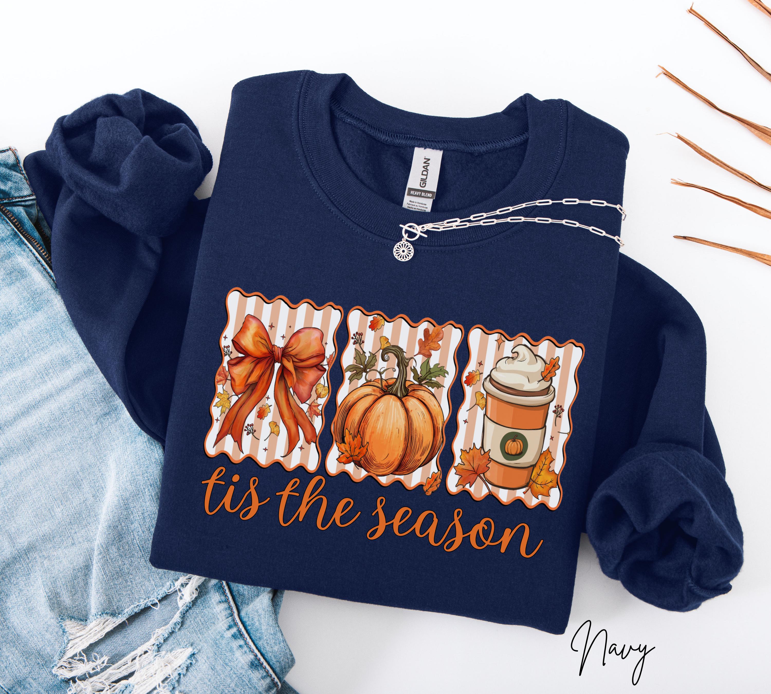 Tis The Season Sweatshirt, Autumn Pumpkin Coffee Shirt, Cozy Fall Crewneck, Thanksgiving Gift For Her, Pumpkin Spice Latte Sweatshirts