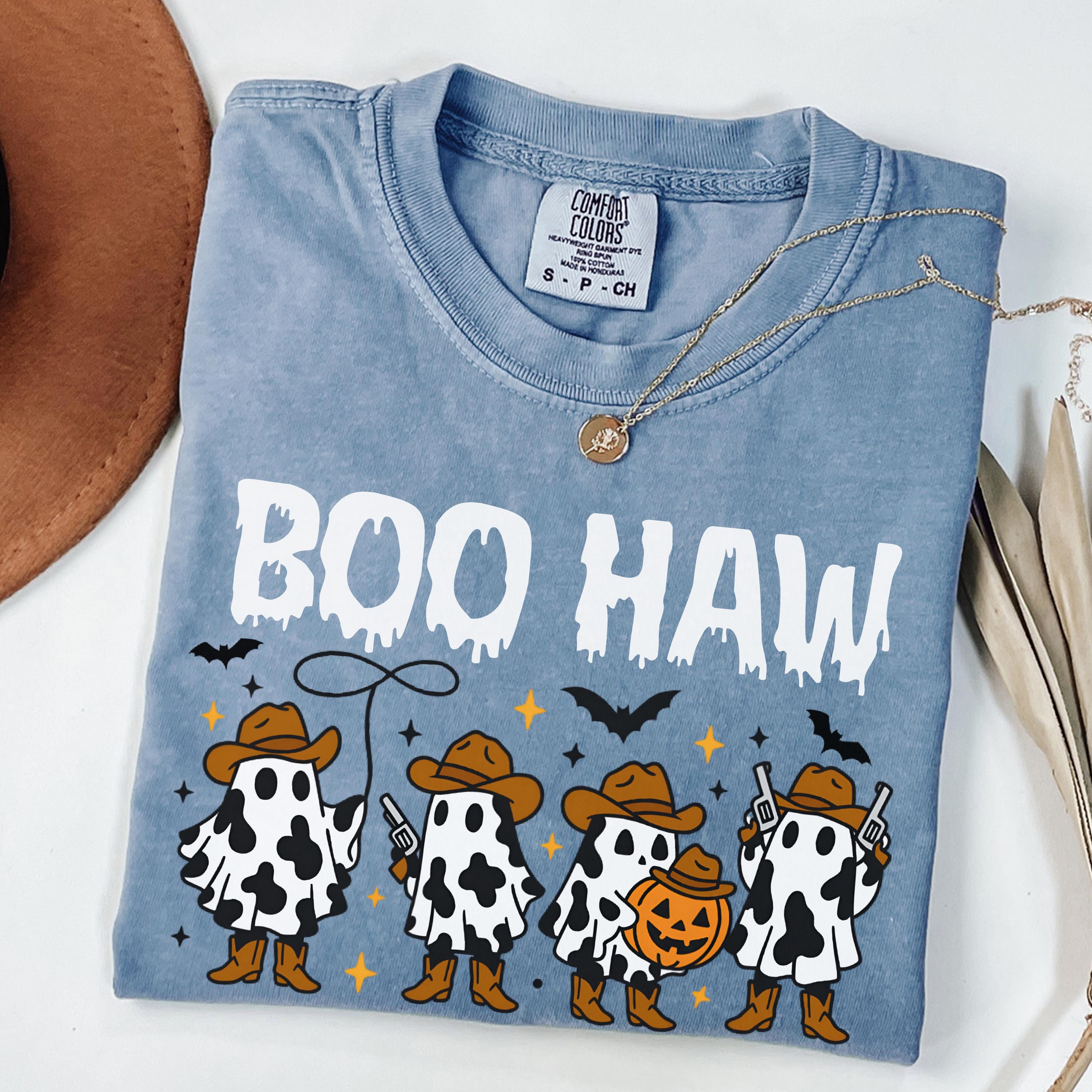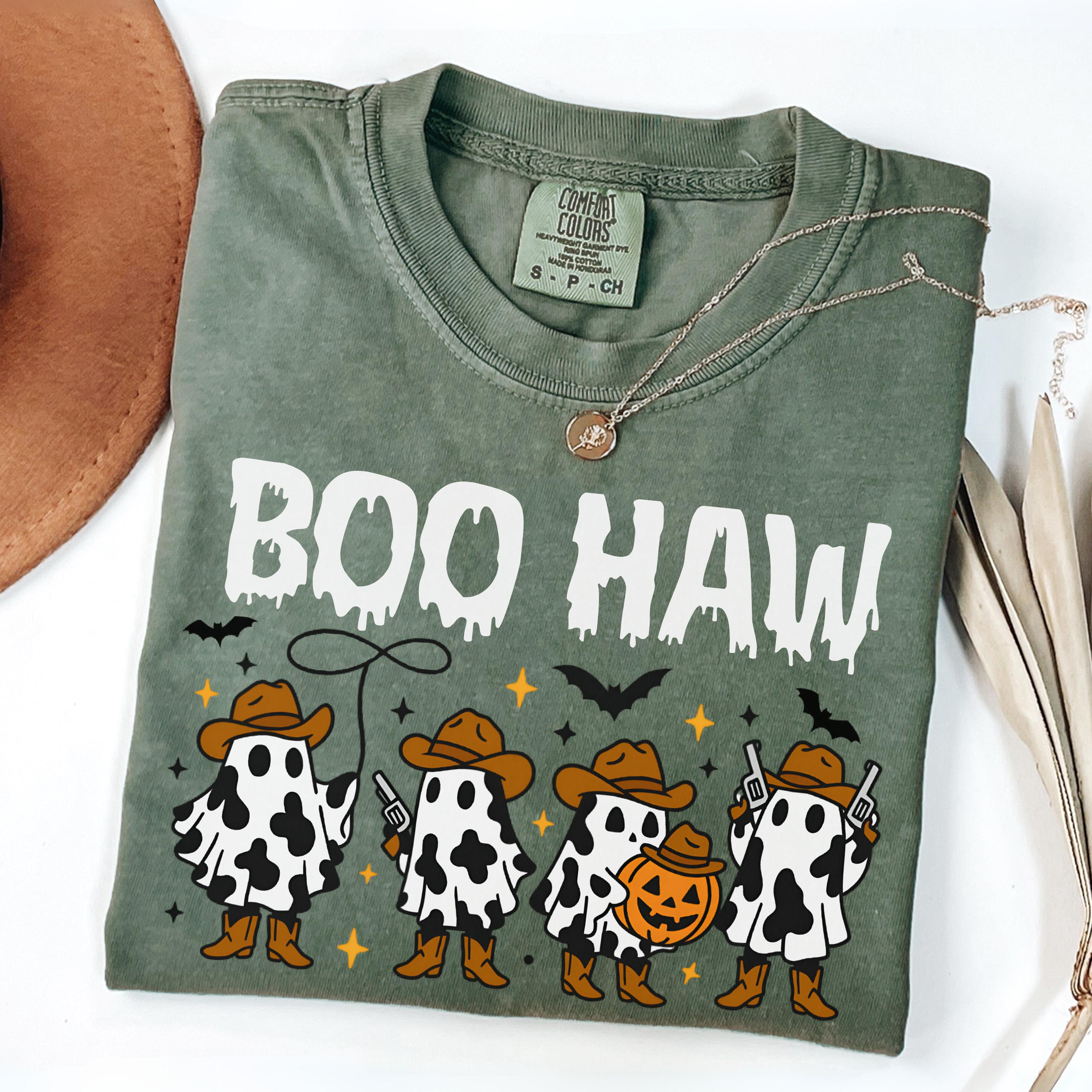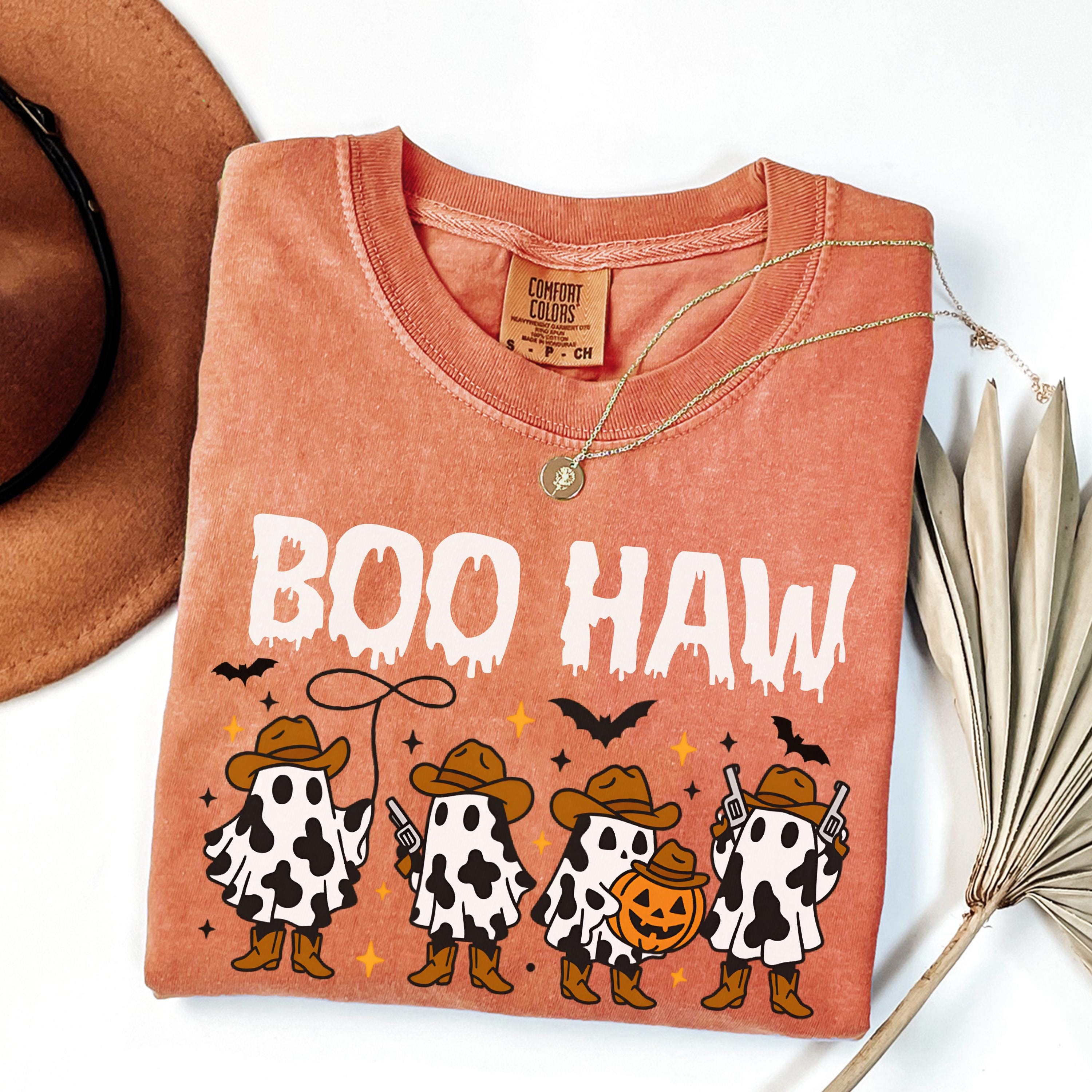 Comfort Colors® Boo Haw Shirt, Funny Ghost Cowboy Tee, Western Halloween Shirt, Spooky Fall Shirt, Rodeo Shirt, Yeehaw Tee,Country Girl Gift