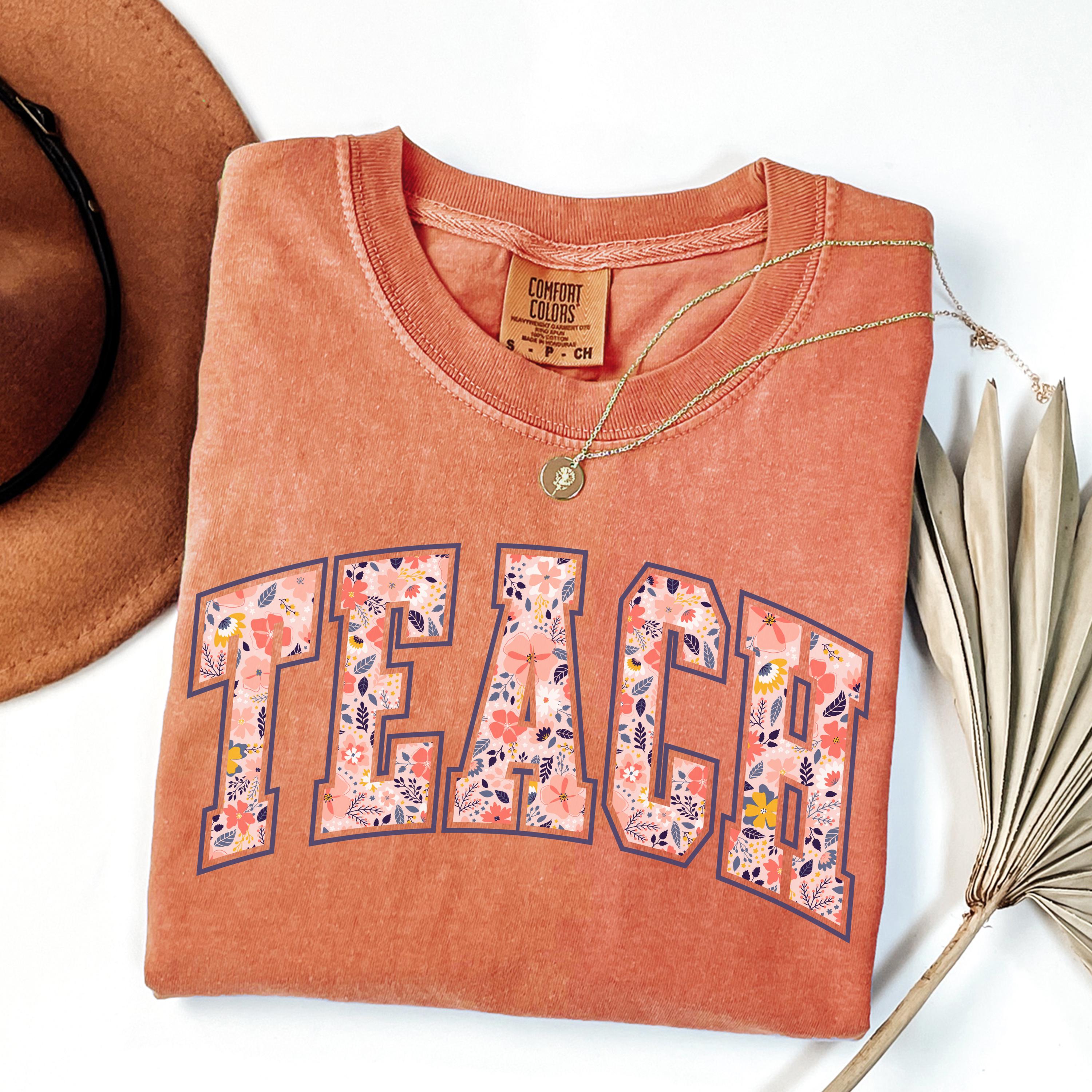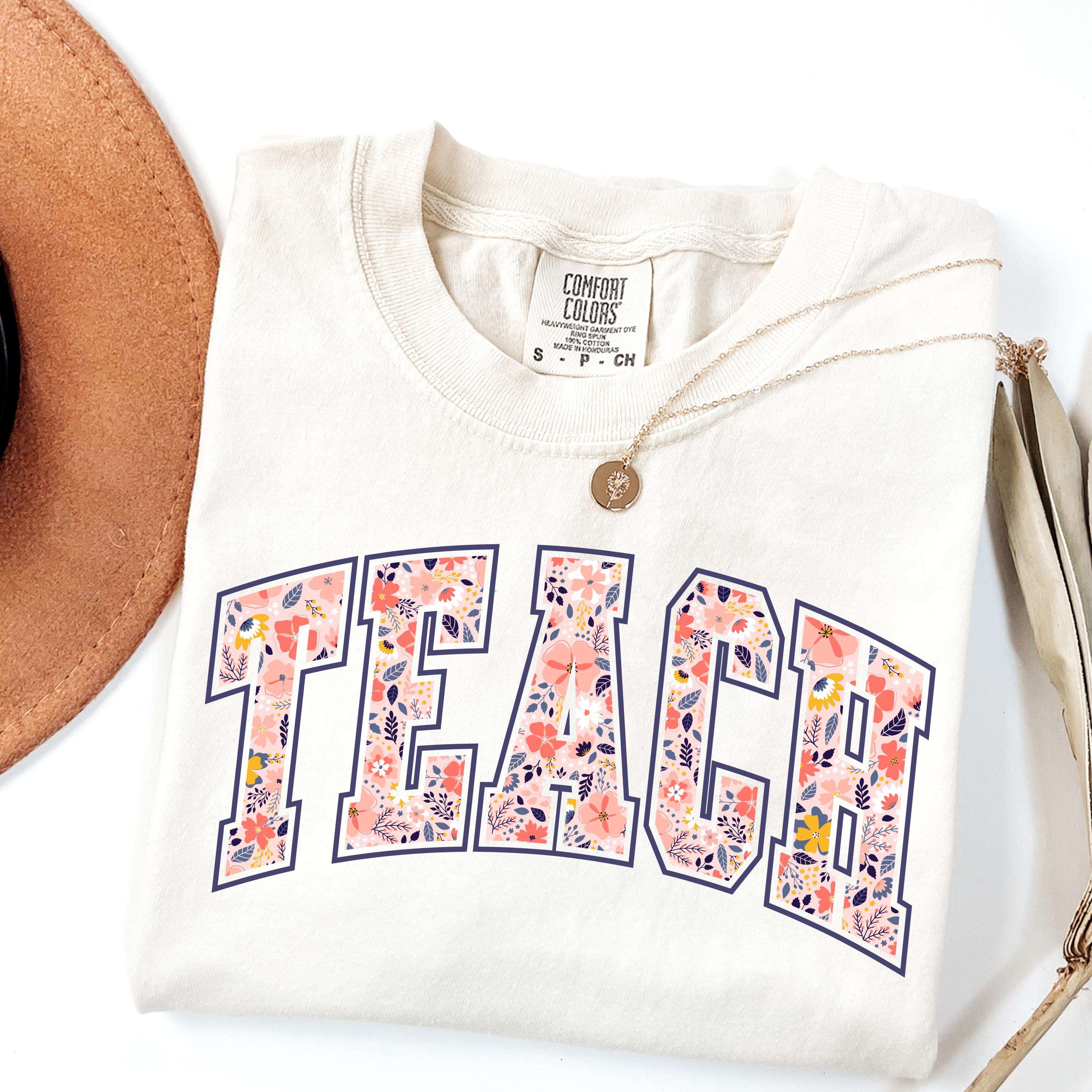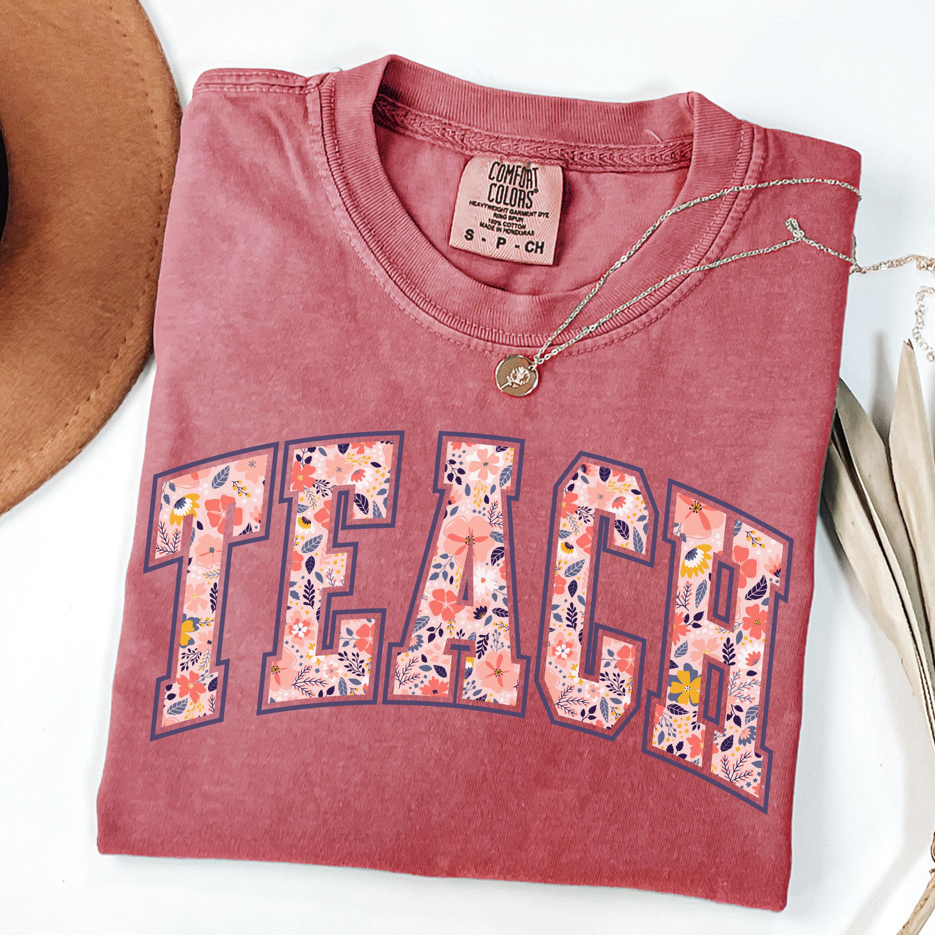 Comfort Colors® Floral Teach Shirt, Varsity Teacher Shirt, Spring Teacher Shirt, Cute Teacher Gift, Teacher Appreciation, School Shirt