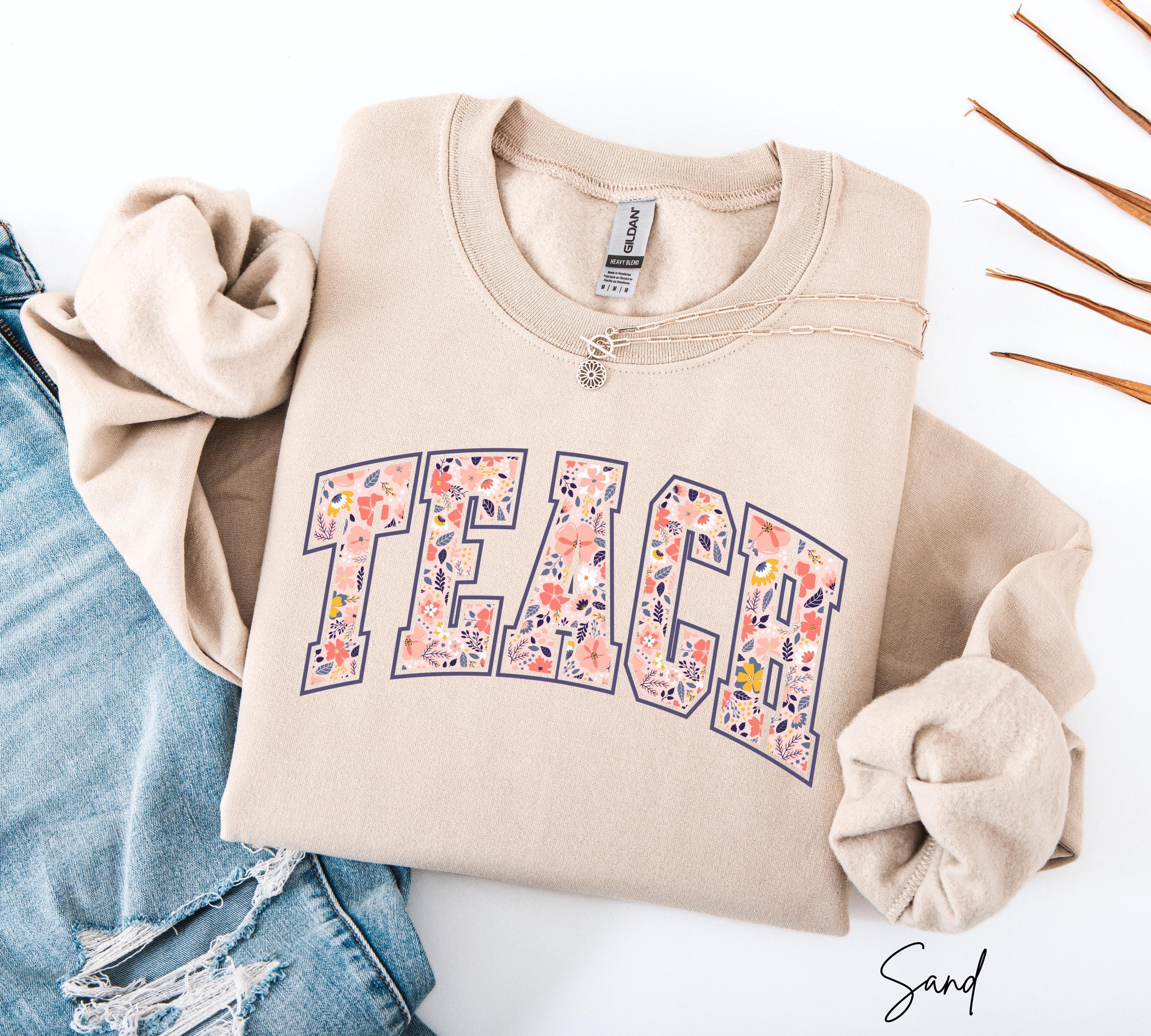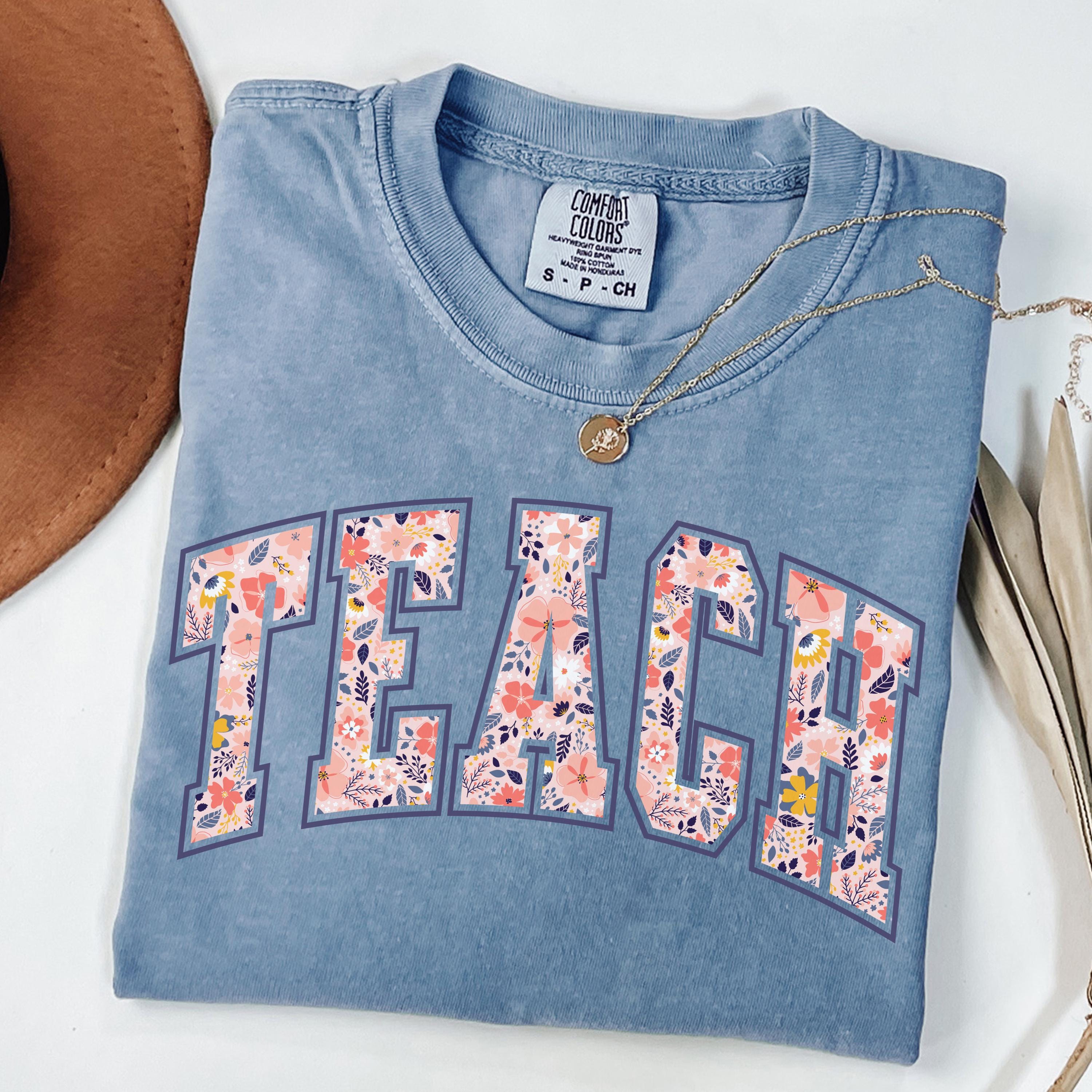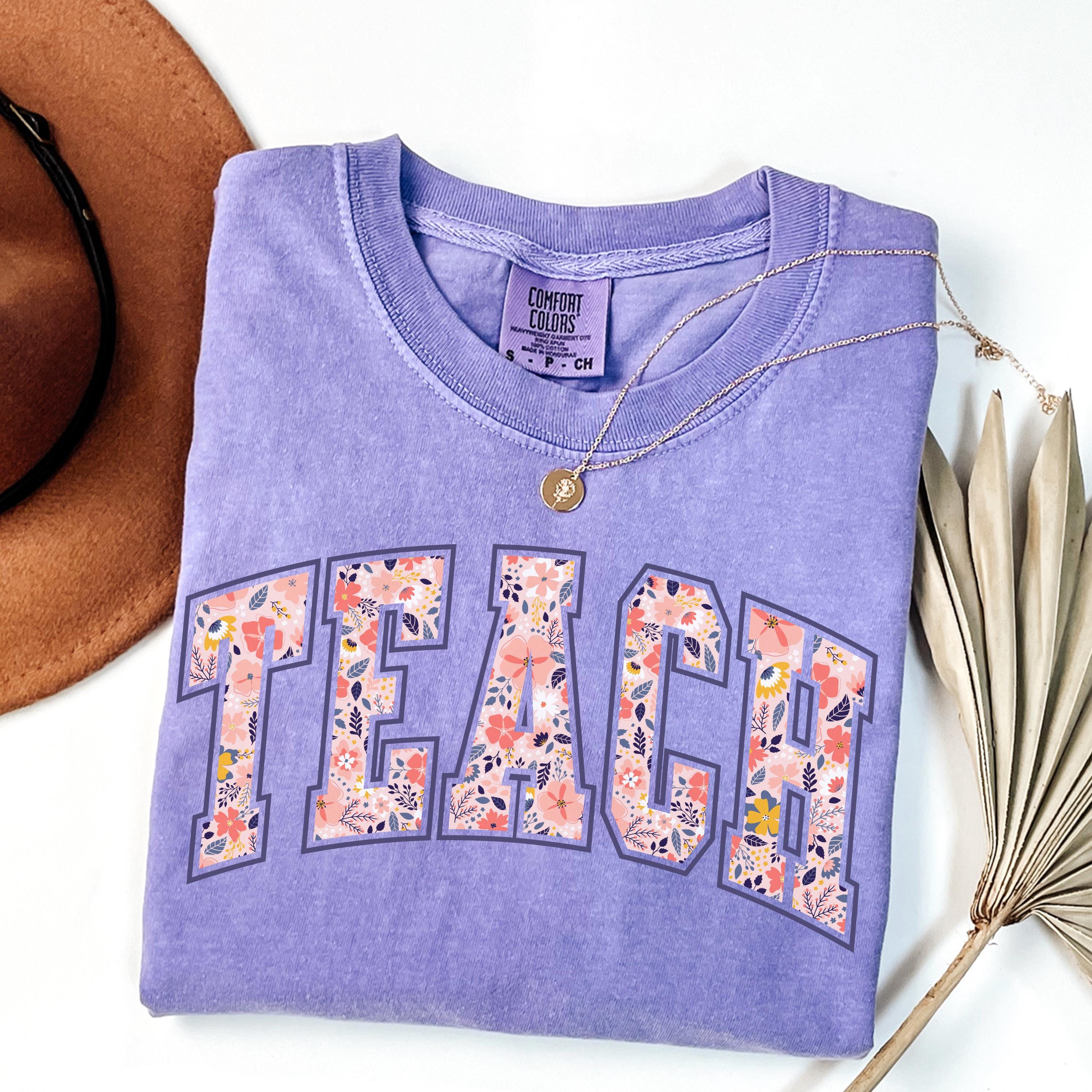 Comfort Colors® Floral Teach Shirt, Varsity Teacher Shirt, Spring Teacher Shirt, Cute Teacher Gift, Teacher Appreciation, School Shirt