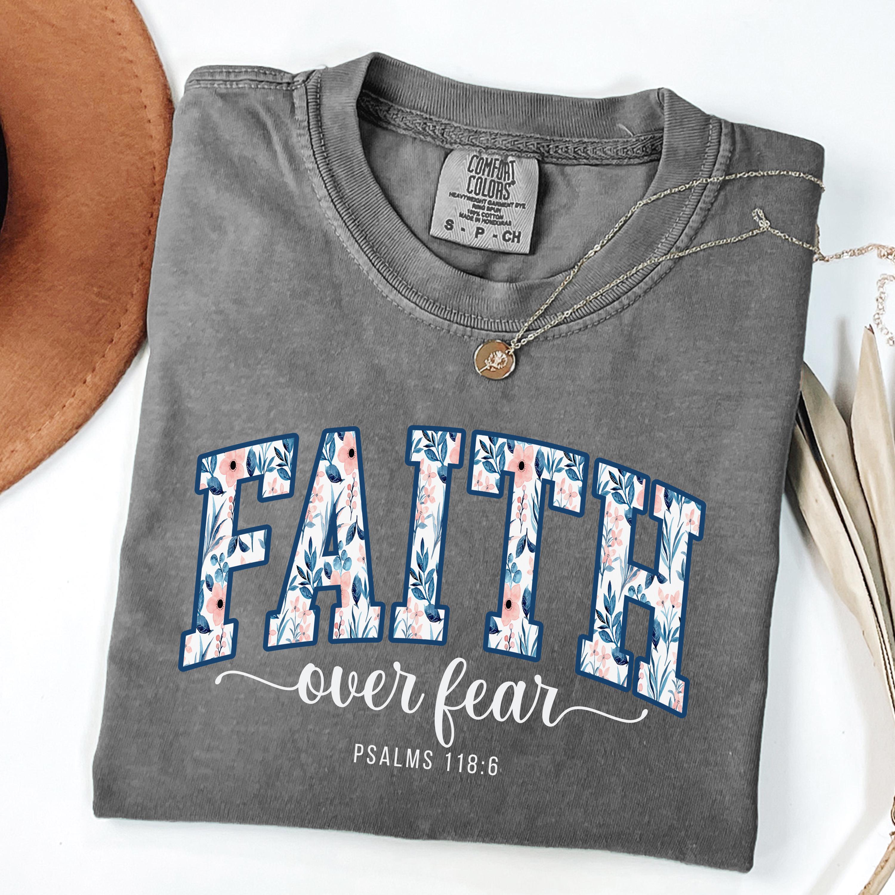 Faith Over Fear Shirt, Christian Inspirational T-Shirt, Bible Verse Faith Tee