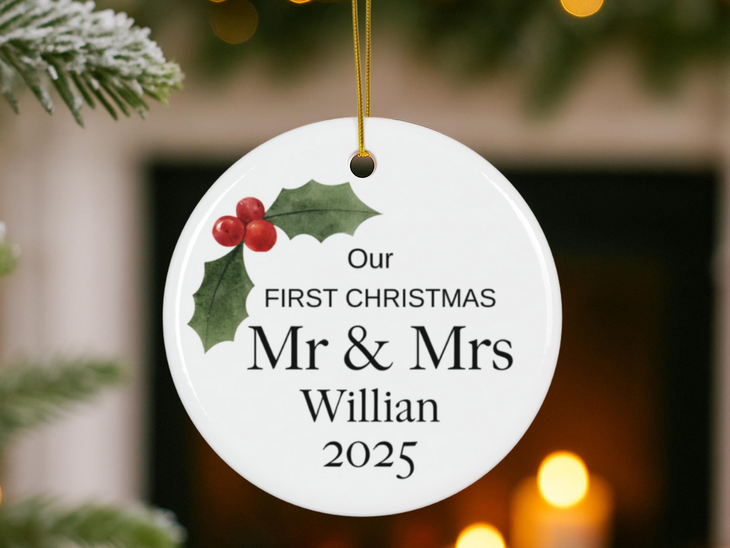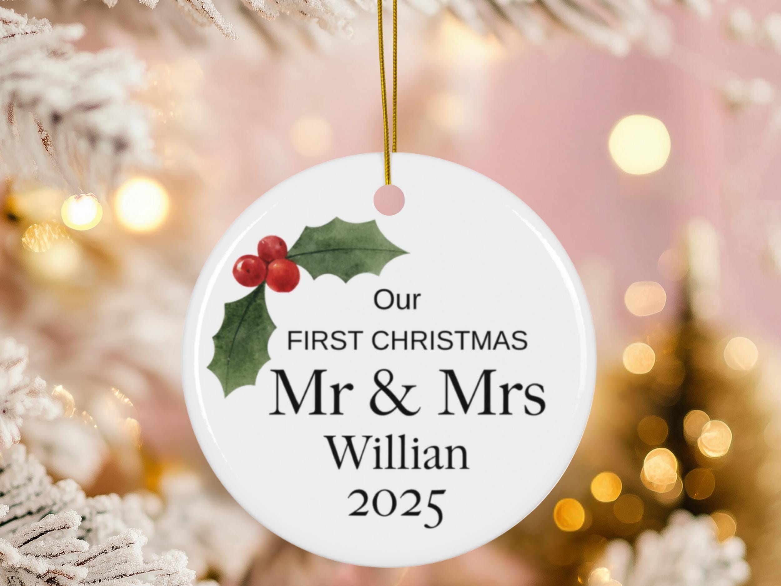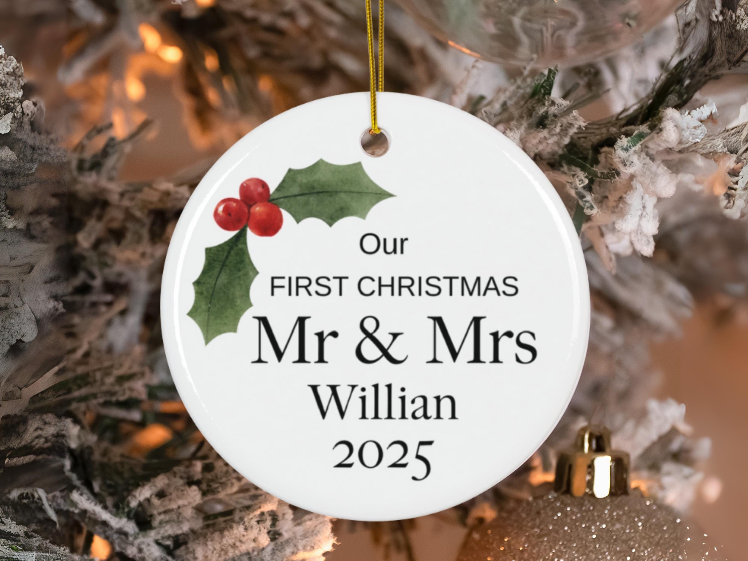 Personalized First Christmas Married Ornament 2025, Mr & Mrs Ceramic Ornament, Newlywed Christmas Ornament, Custom Last Name Gift