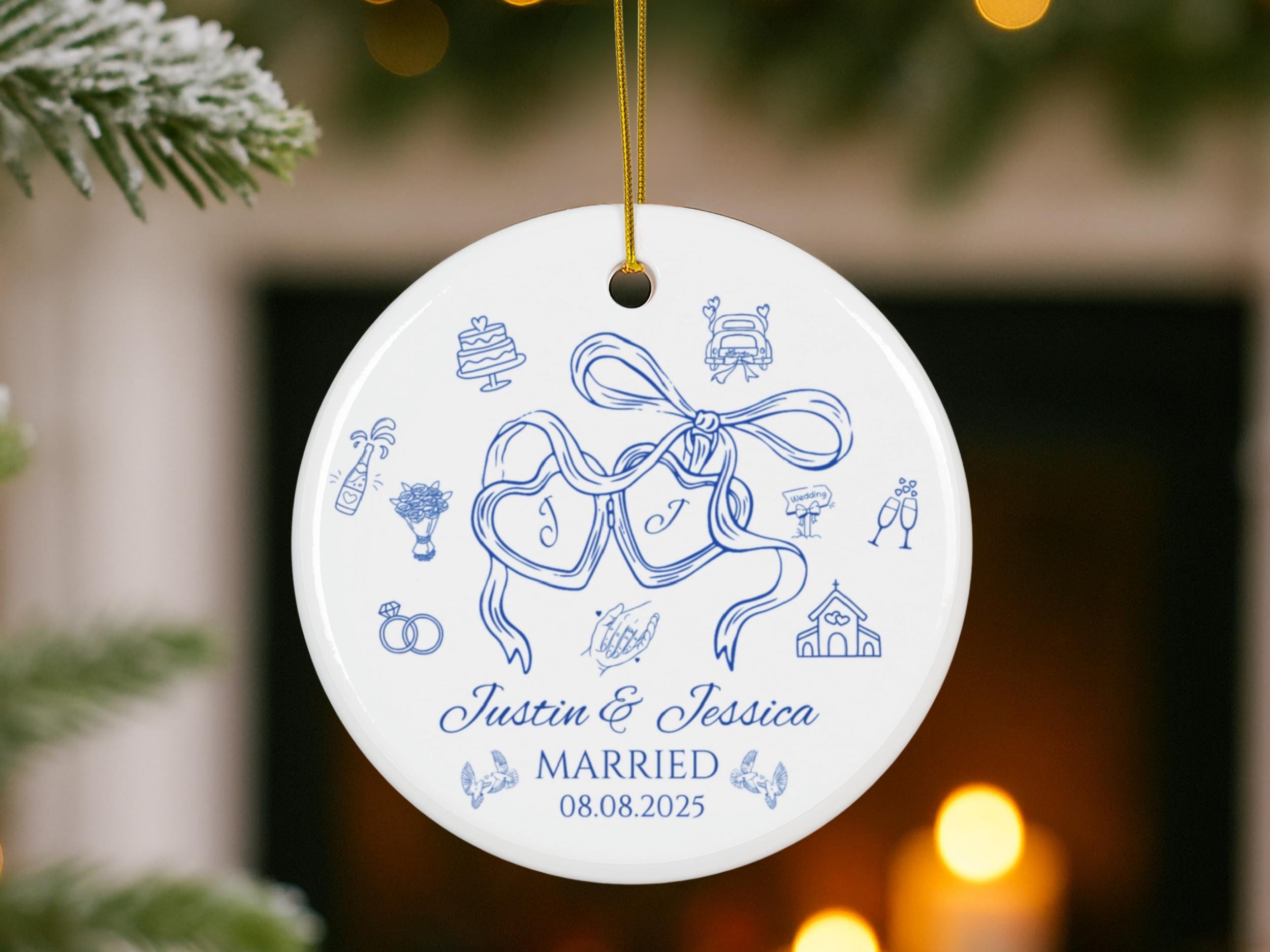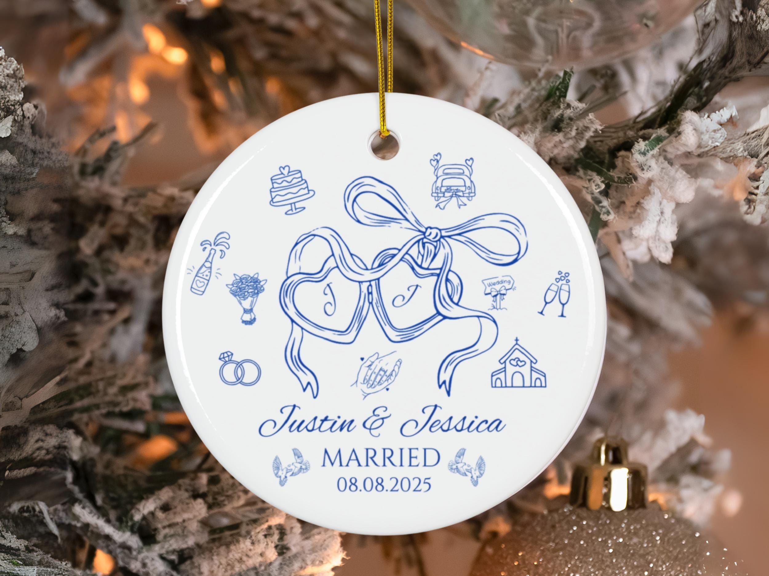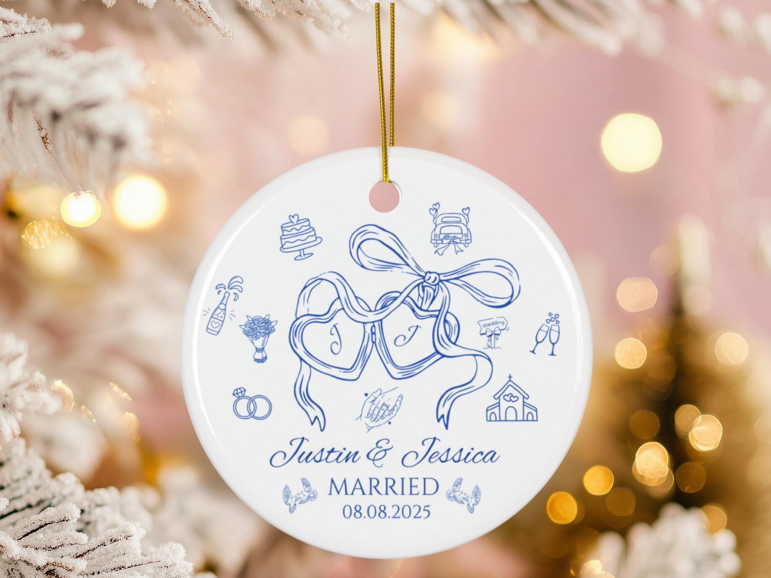 Personalized Engagement Ornament, Newlywed Christmas Ornament, Wedding Gift Keepsake, Just Married Holiday Ornament, Couple Whimsical Gift