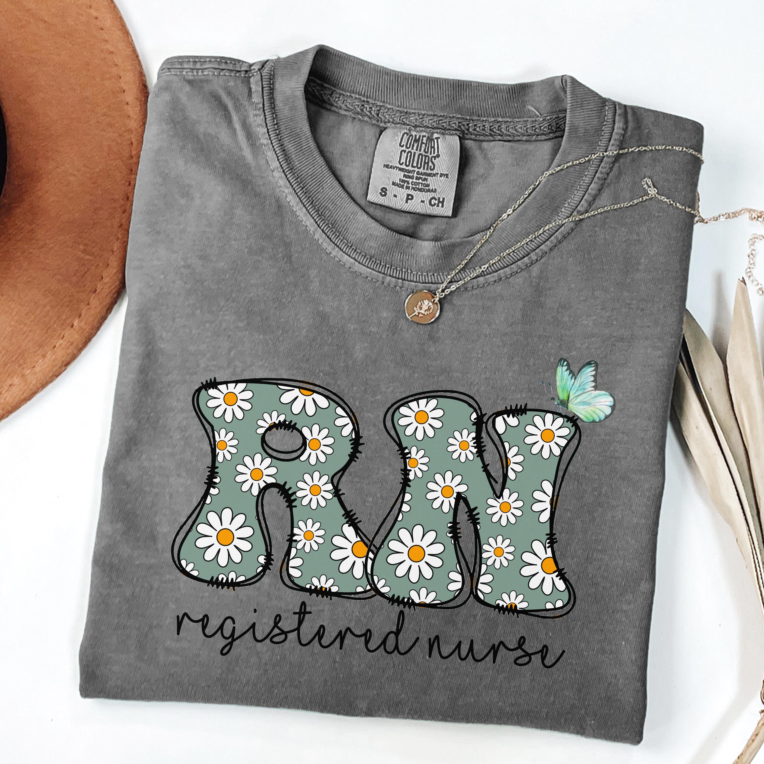Comfort Colors® Registered Nurse Shirt, RN Shirt, Floral Nurse Tee, RN Graduation Gift, Nursing School Shirt, Nurse Life Tee, RN Clothes