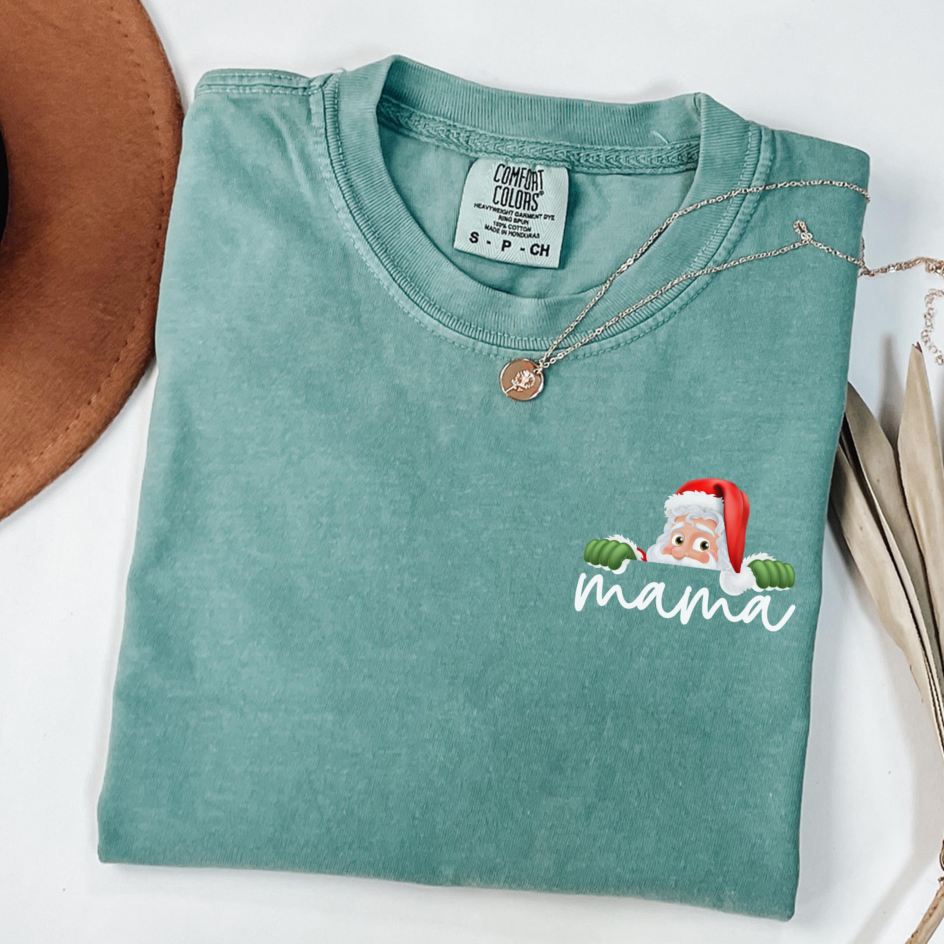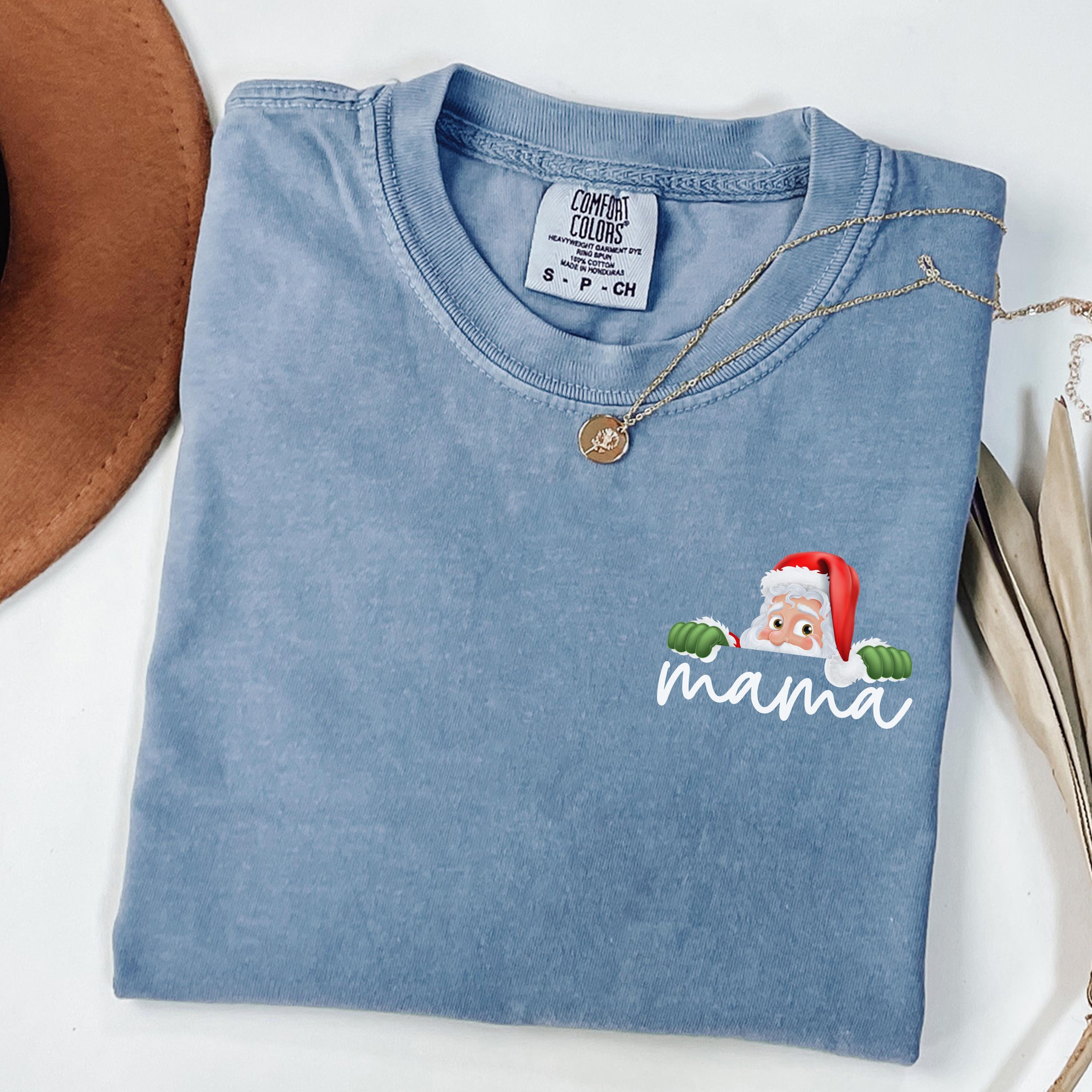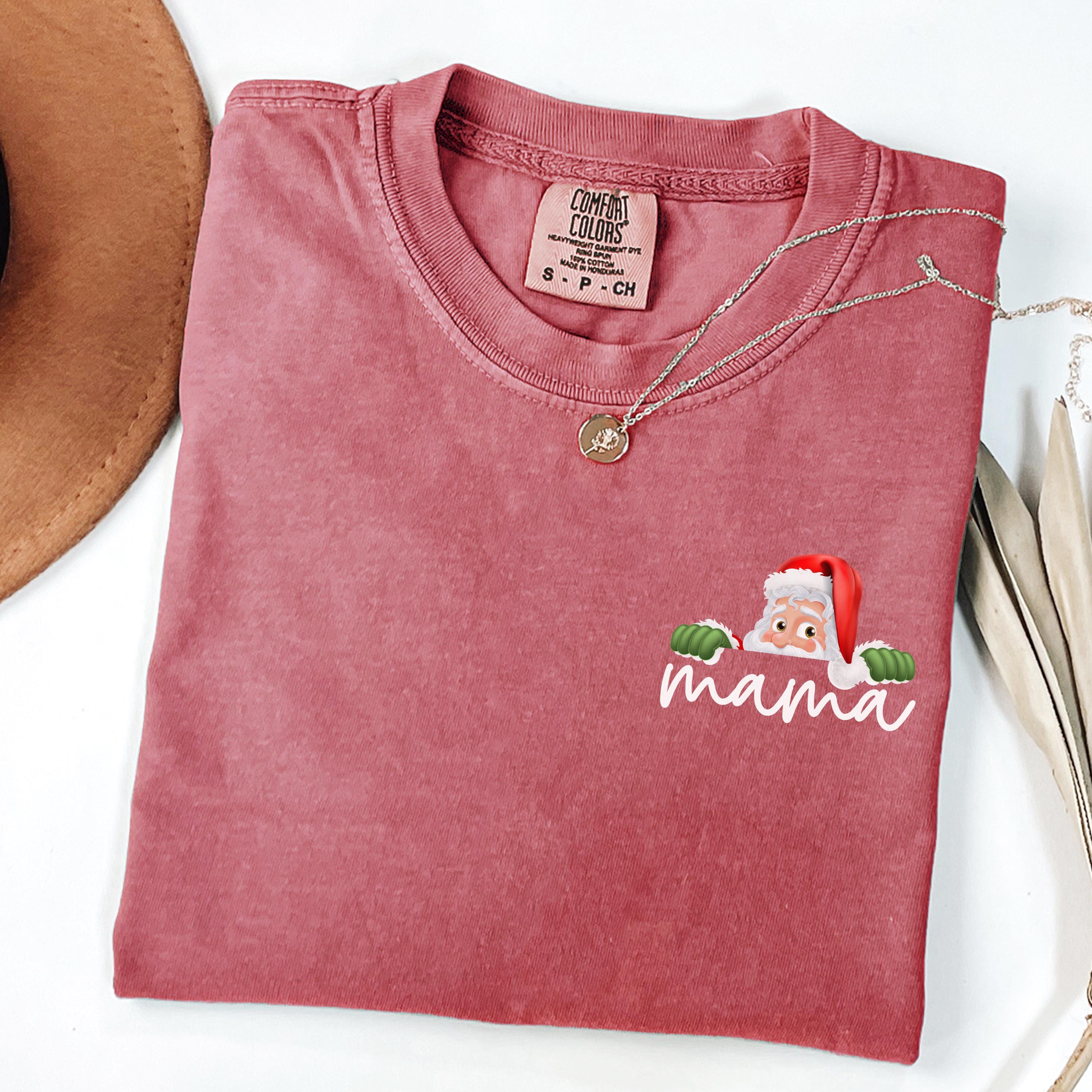 Comfort Colors® Mama Christmas Shirt, Custom Santa Shirt, Mom Christmas Tee, Grandma Christmas Shirt, Matching Family Holiday Shirt