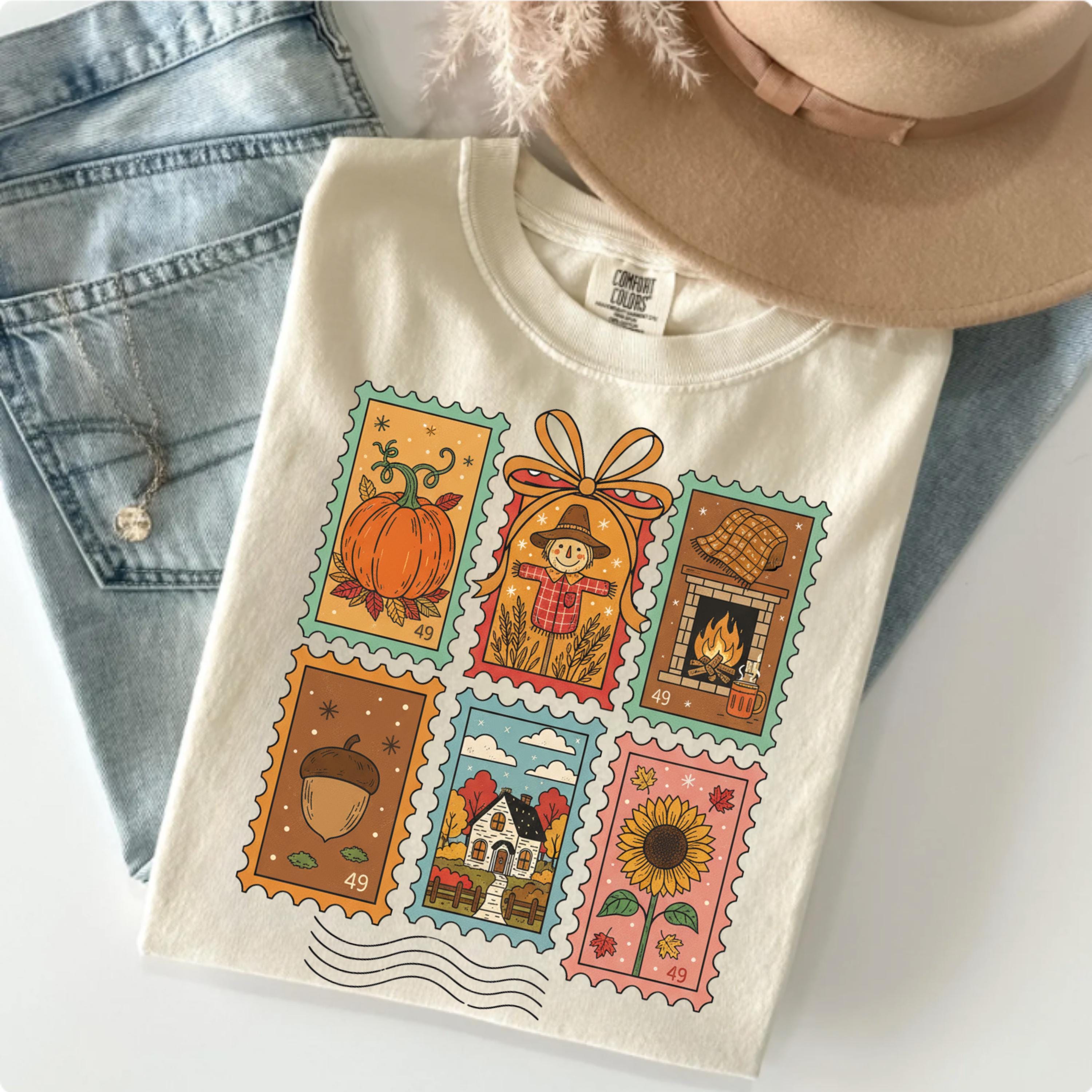 Are you looking for a Fall Stamp Shirt or a Retro Autumn Postcard Tee? We got you!