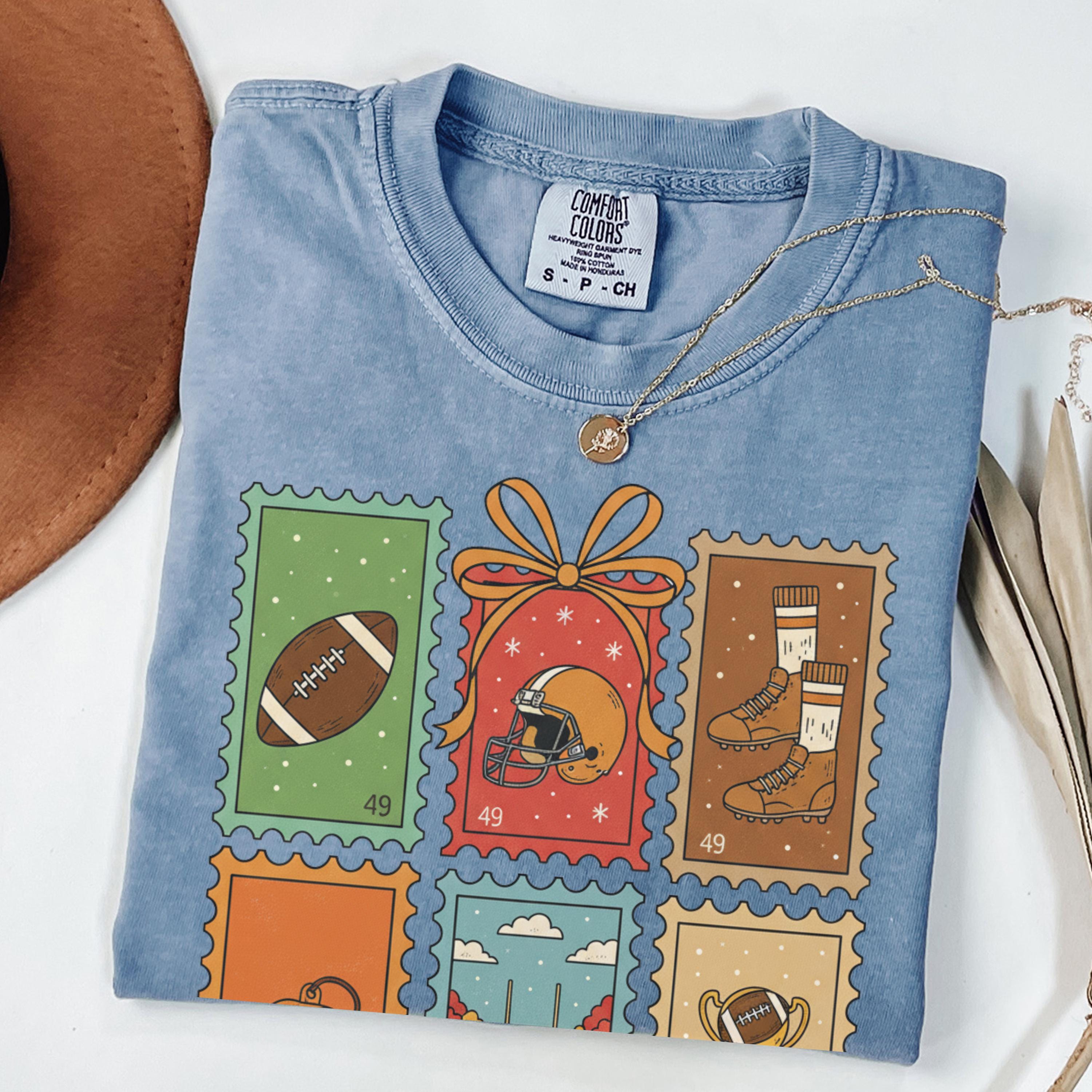 Comfort Colors® Football Stamp Shirt, Retro Game Day Sweatshirt, Vintage Football Postcard Tee, Sports Fan Shirt, Fall Tailgate Crewneck