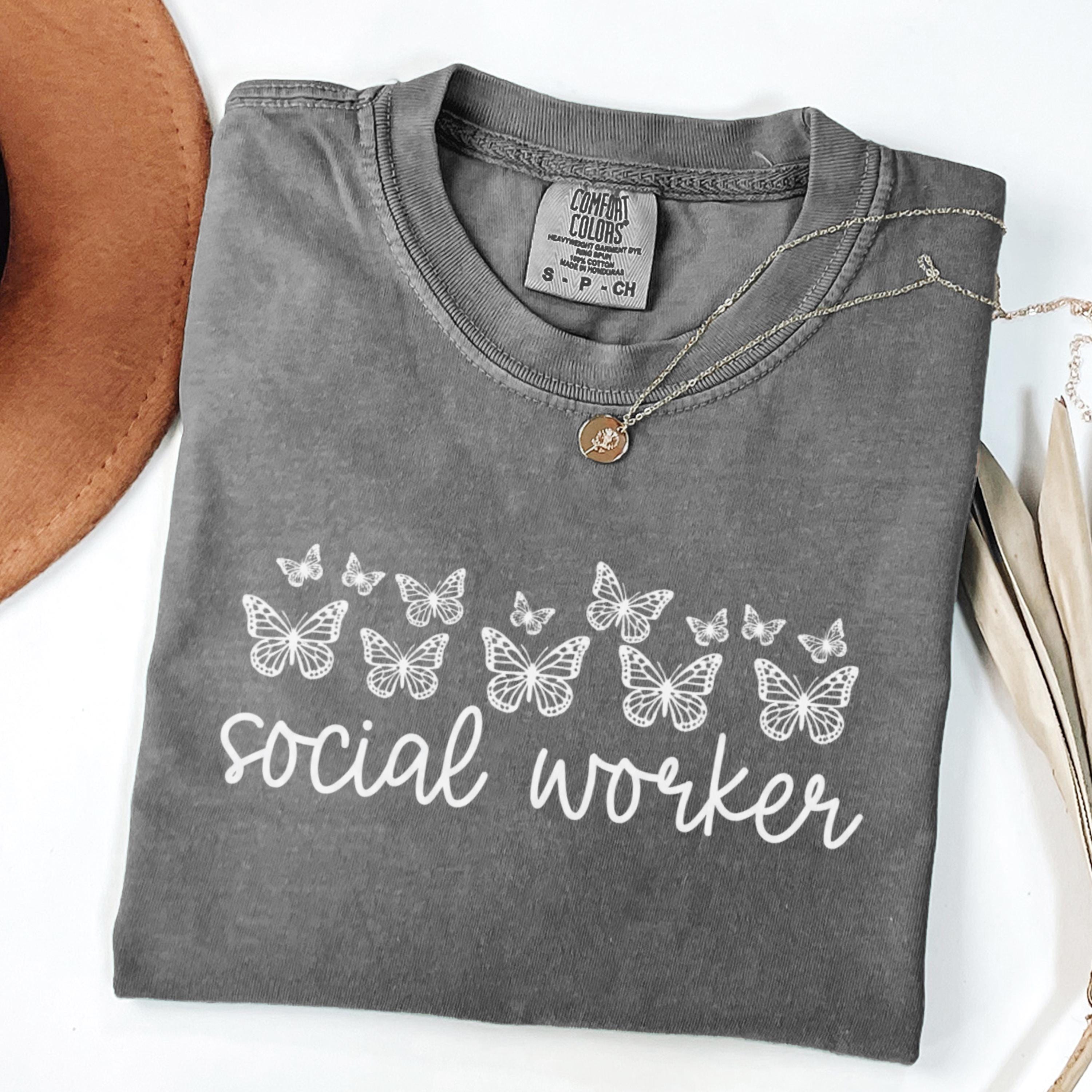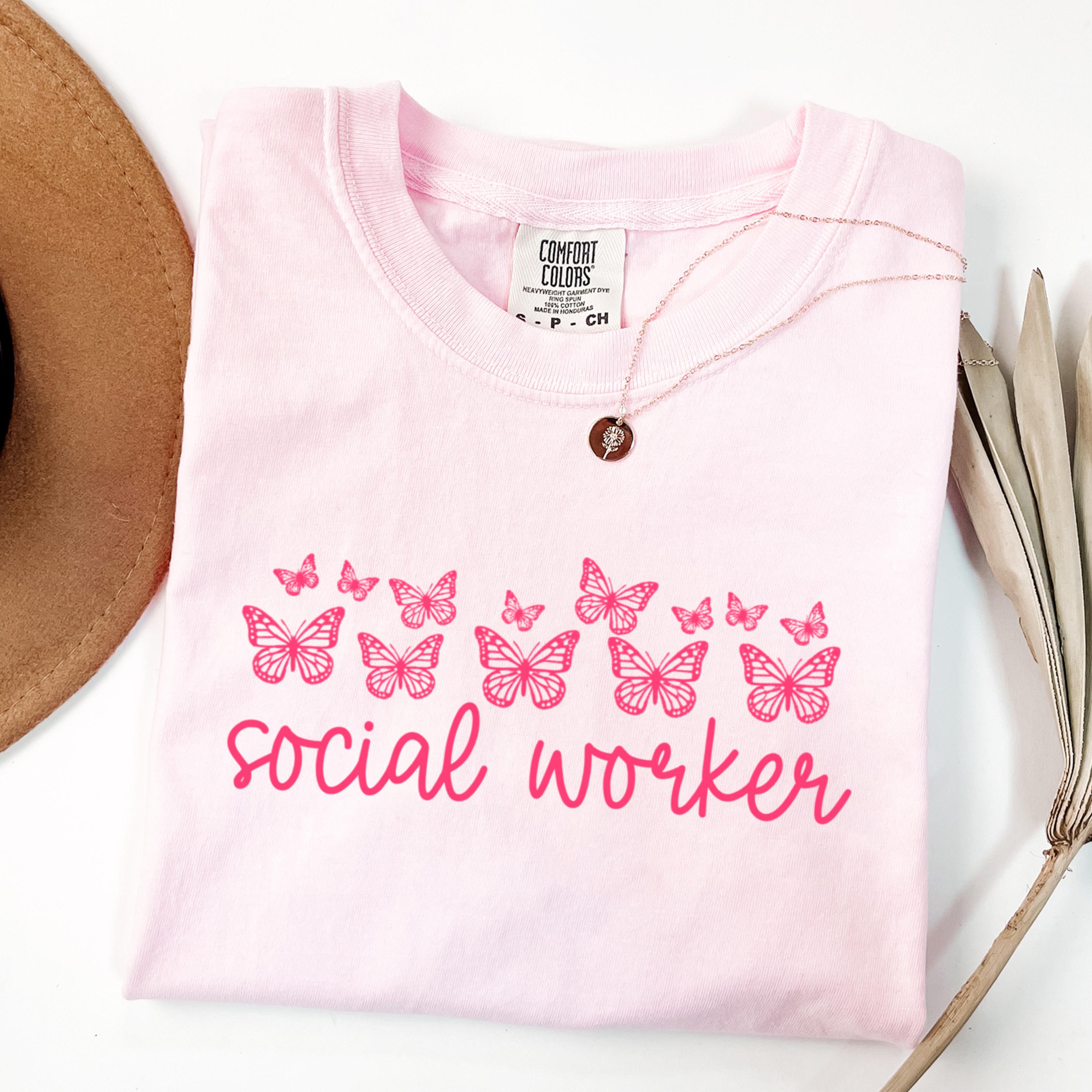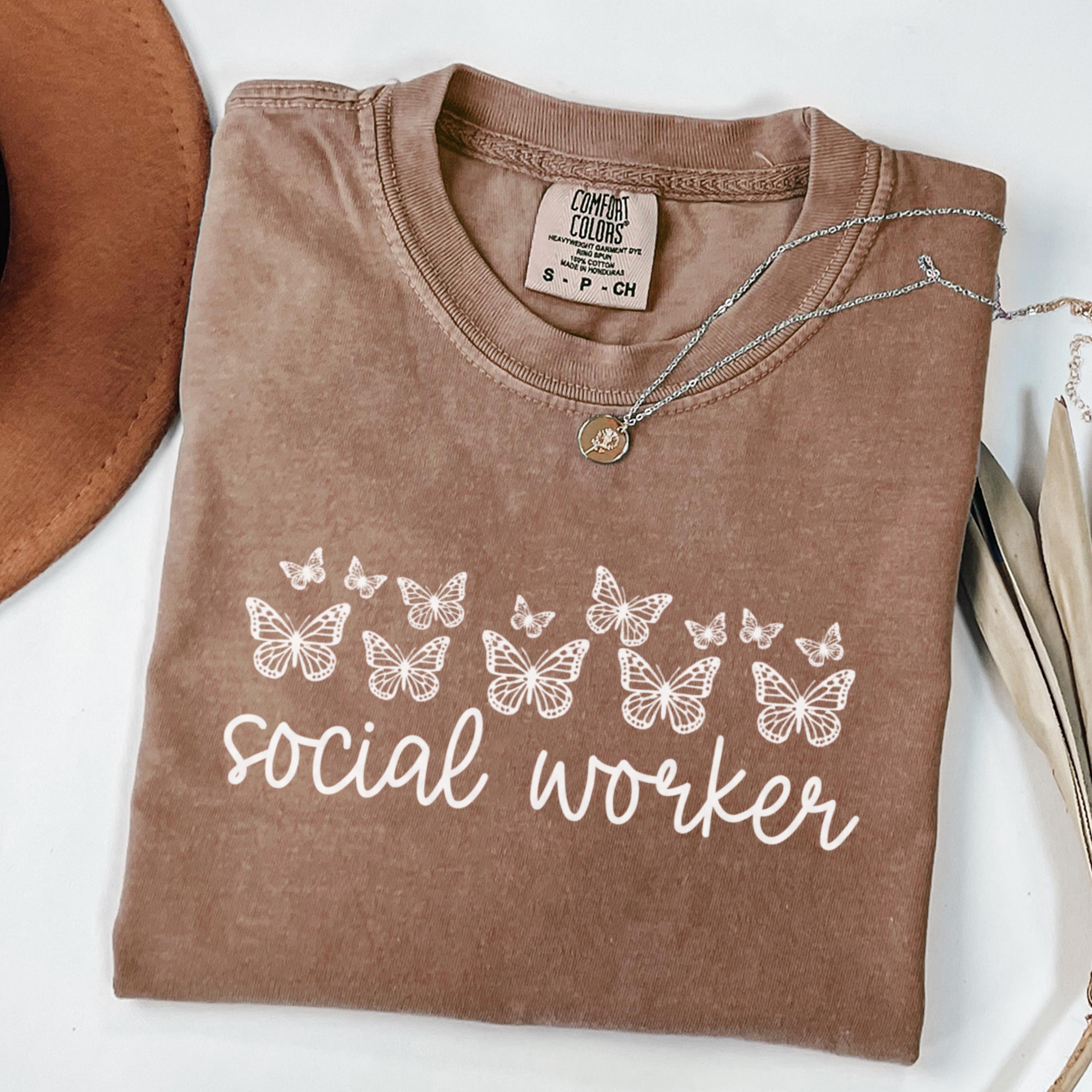 Comfort Colors® Social Worker Shirt, Butterfly Graphic Tee, Cute Social Work Shirt for Women, School Social Worker Shirt, Social Worker Gift
