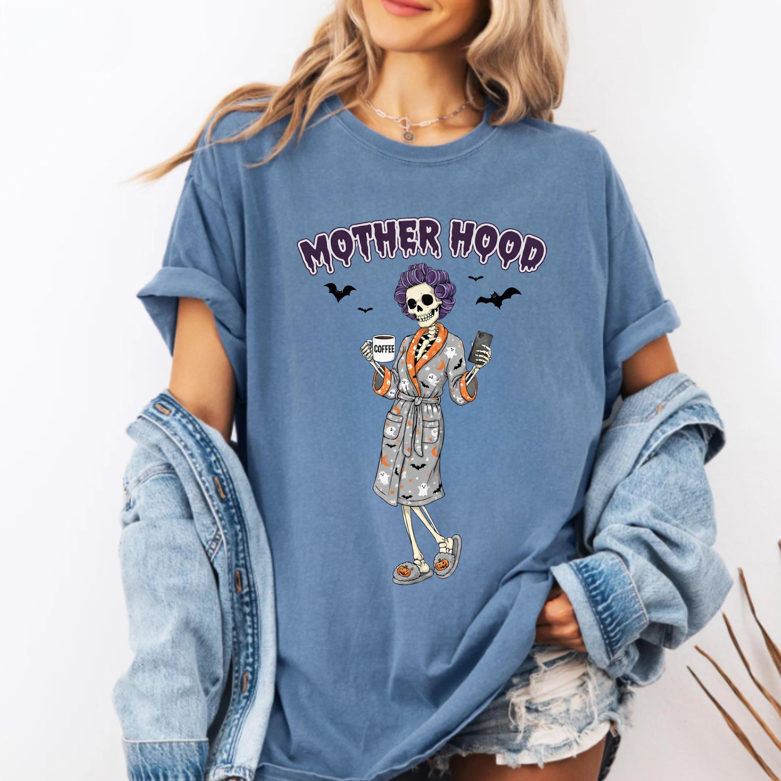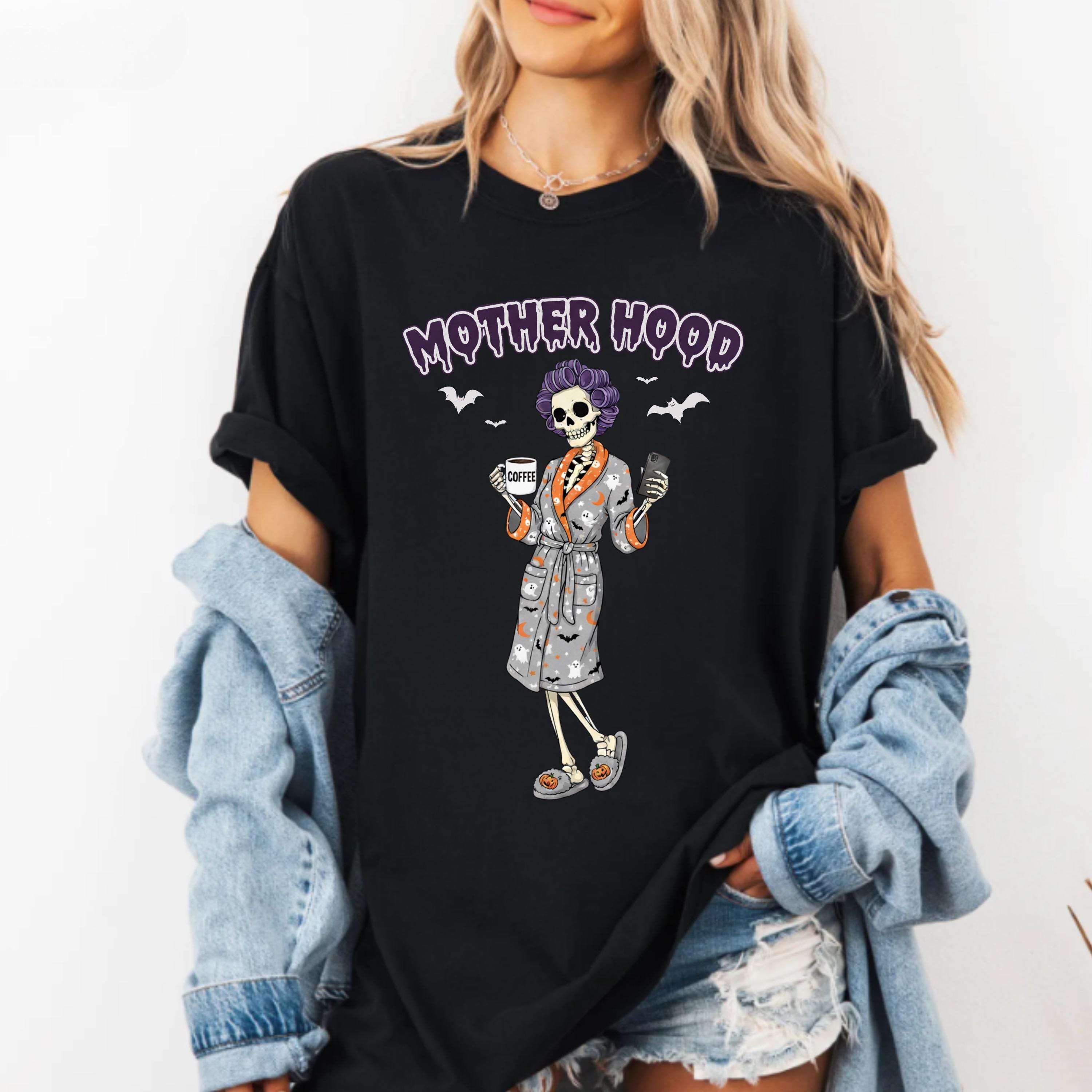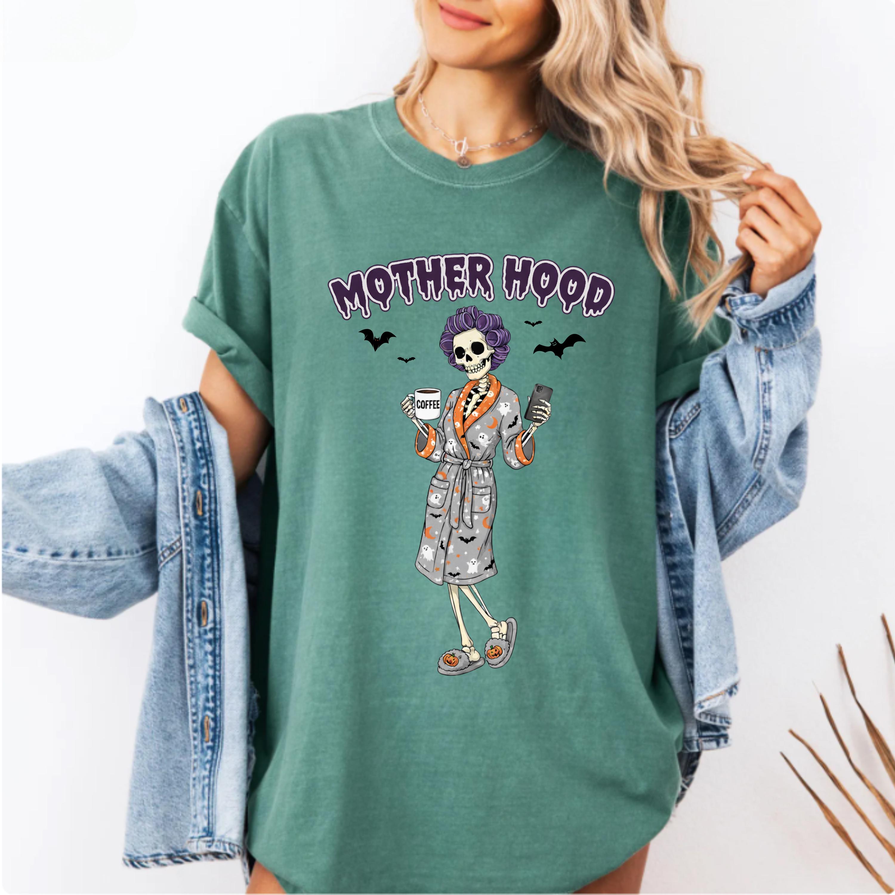 Mother Hood Halloween Shirt, Comfort Colors® Mom Life Tee, Spooky Mama T-shirt, Oversized Graphic Tee, Cool Mom Club Shirt
