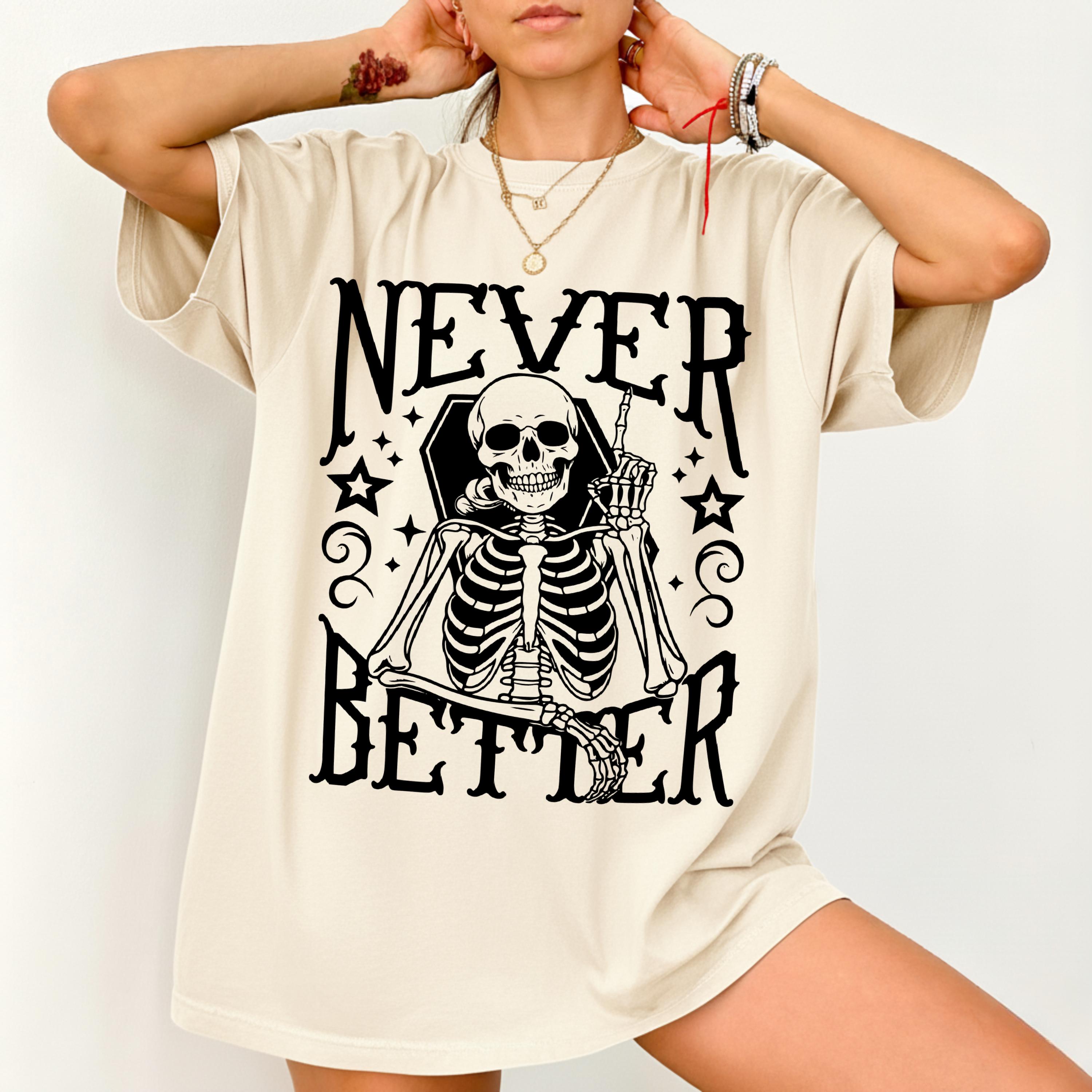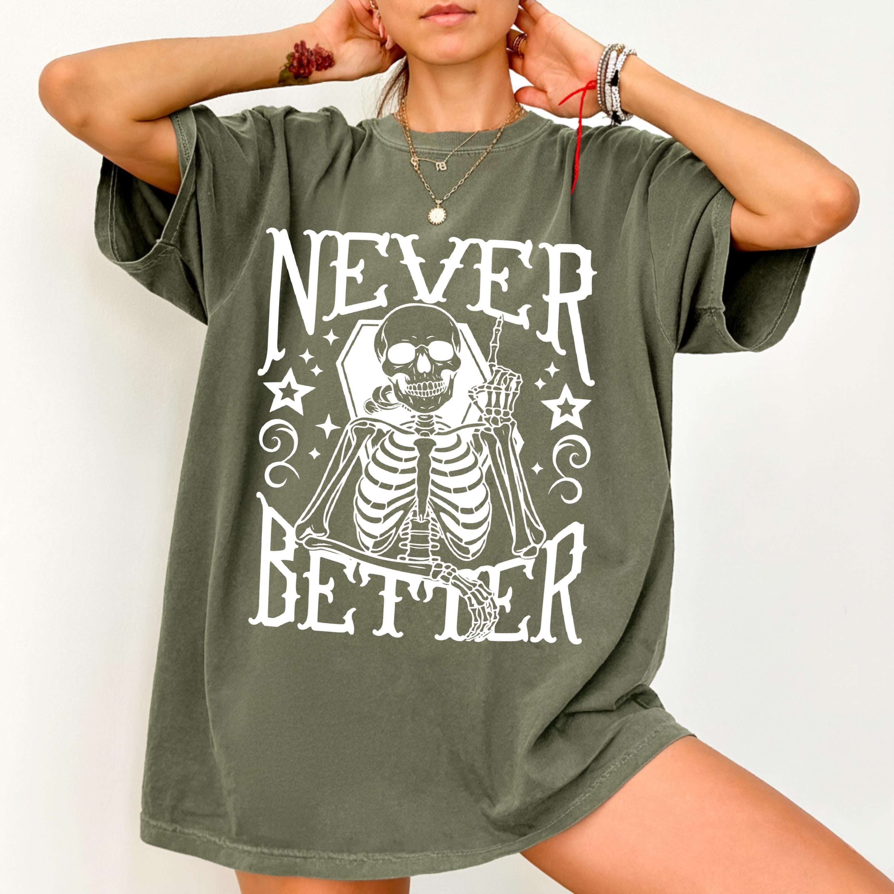 Never Better Skeleton Shirt Comfort Color, Funny Skeleton T-Shirt, Retro Skull Halloween Shirt.