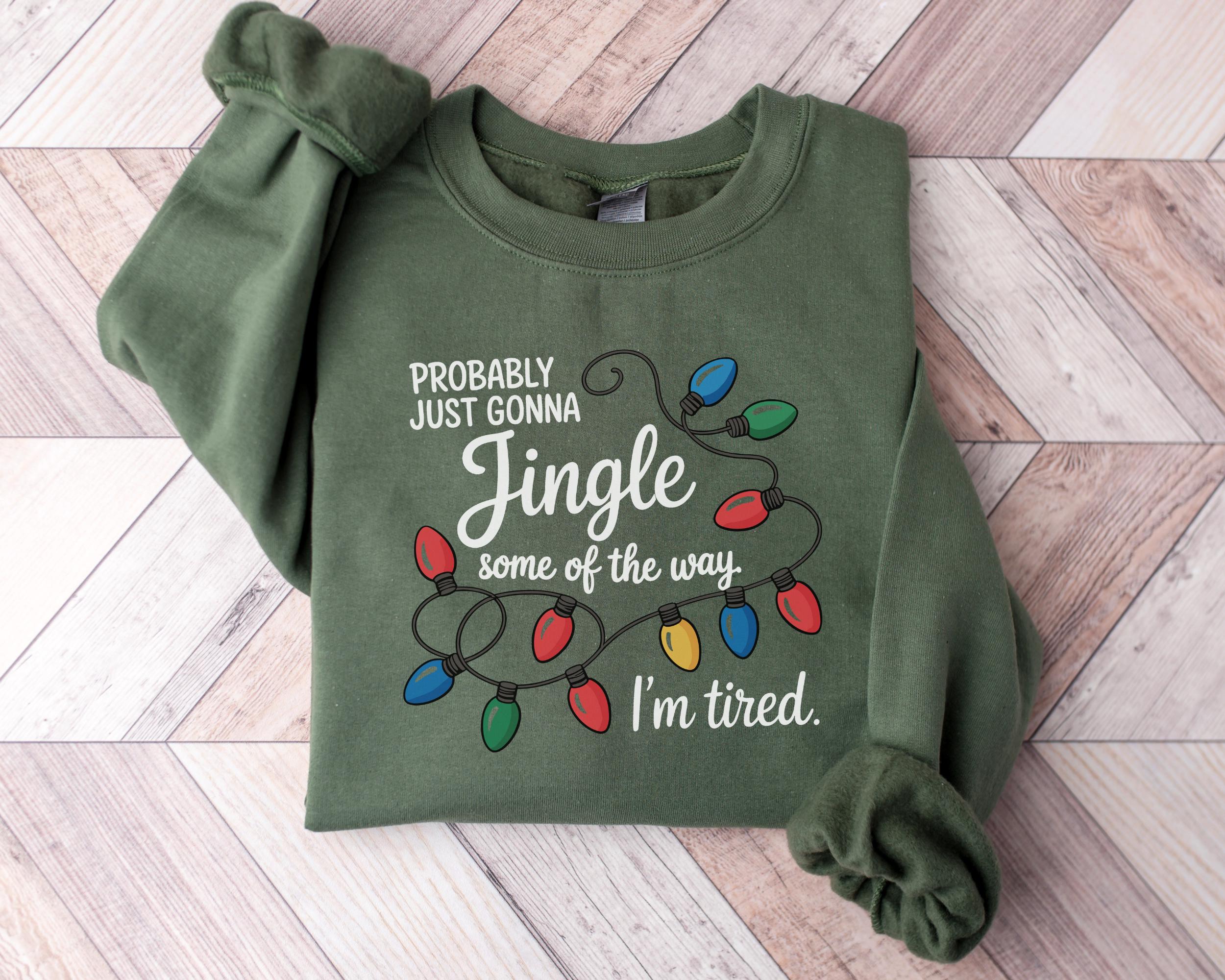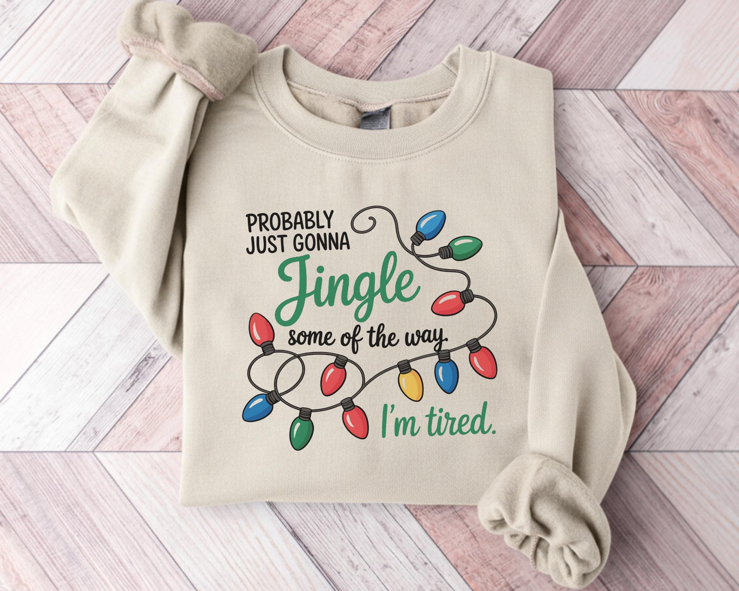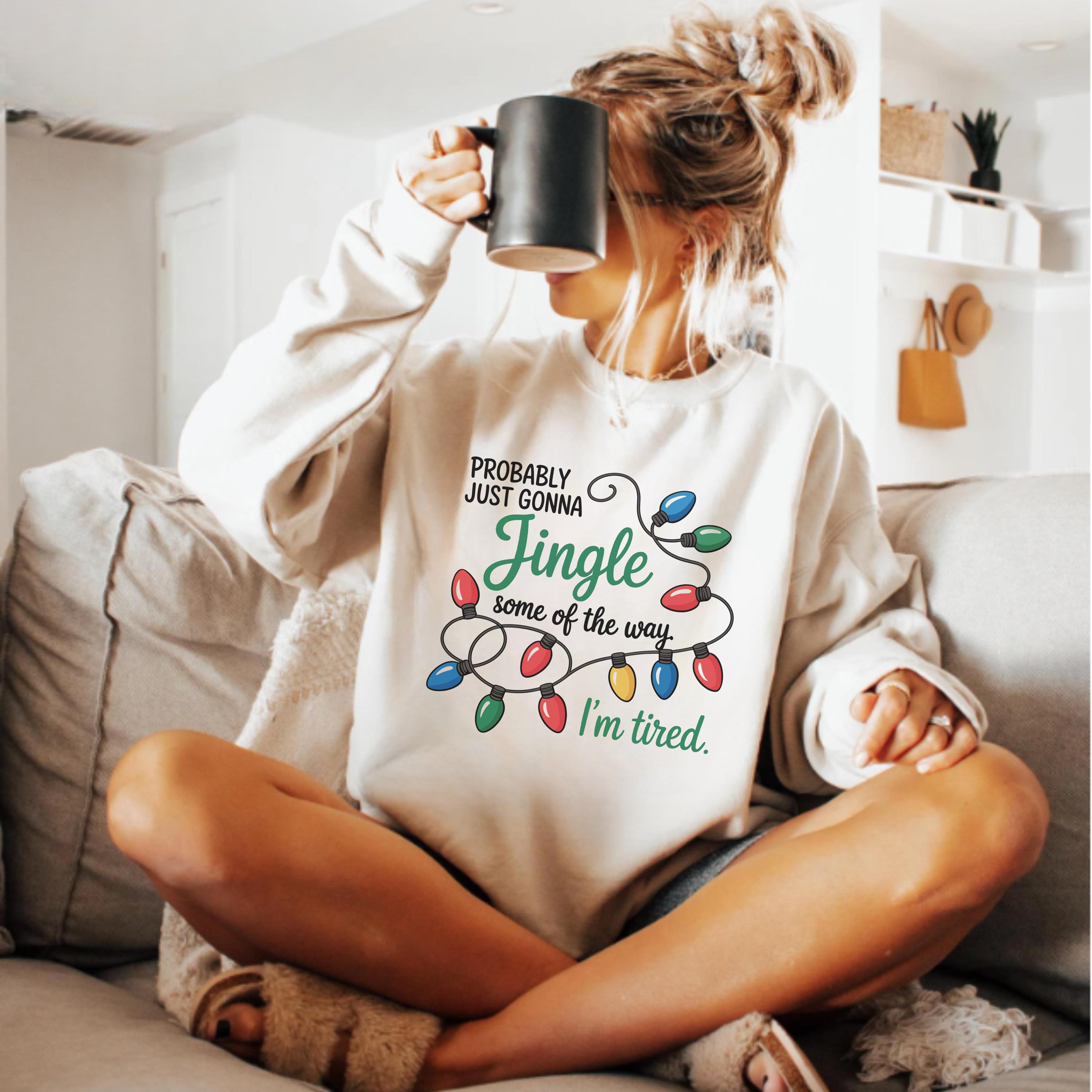 Probably Just Gonna Jingle Some Of The Way I'm Tired Christmas Sweater, Funny Holiday Shirt, Xmas Lights Sweater, Tired Mom Sweatshirt