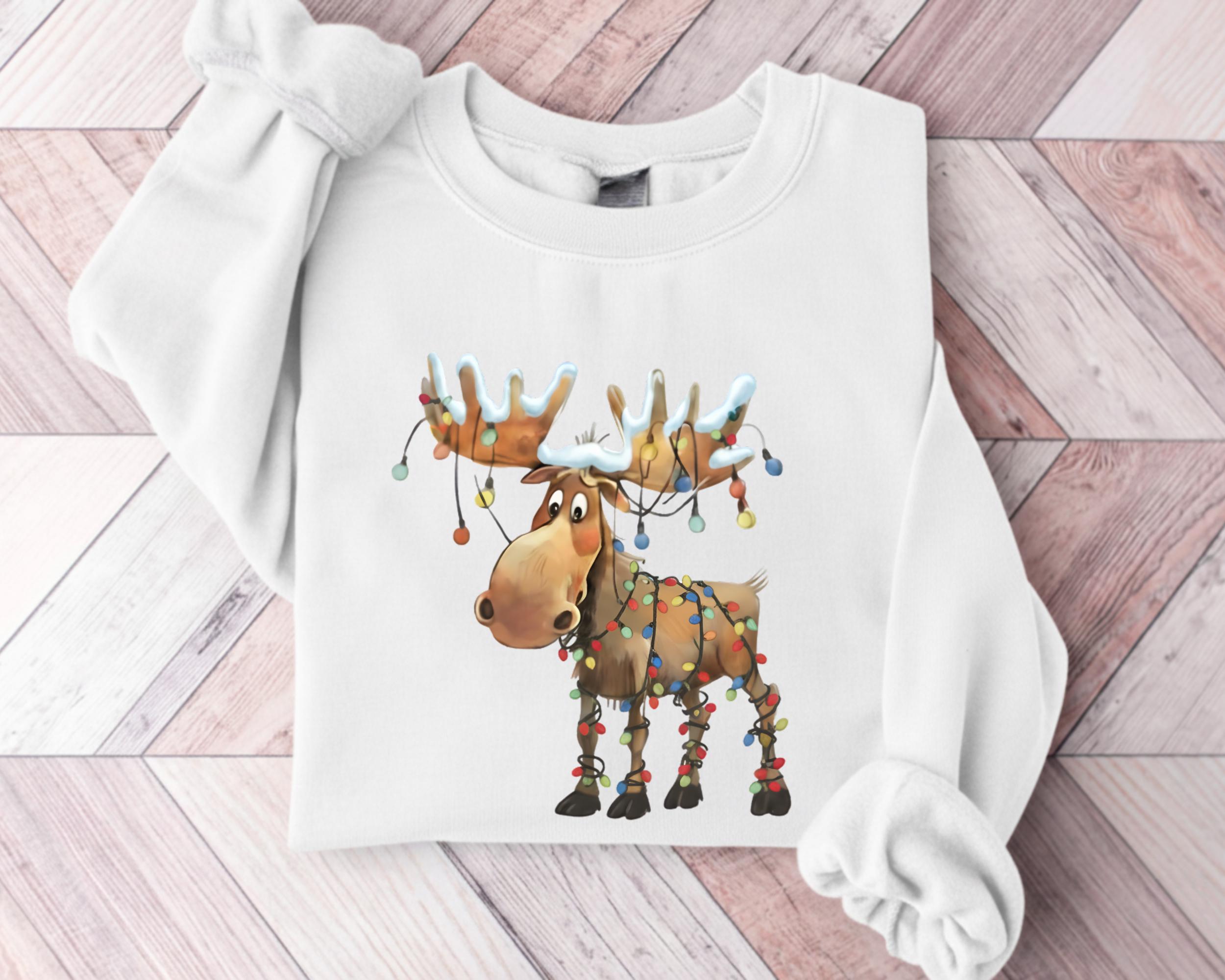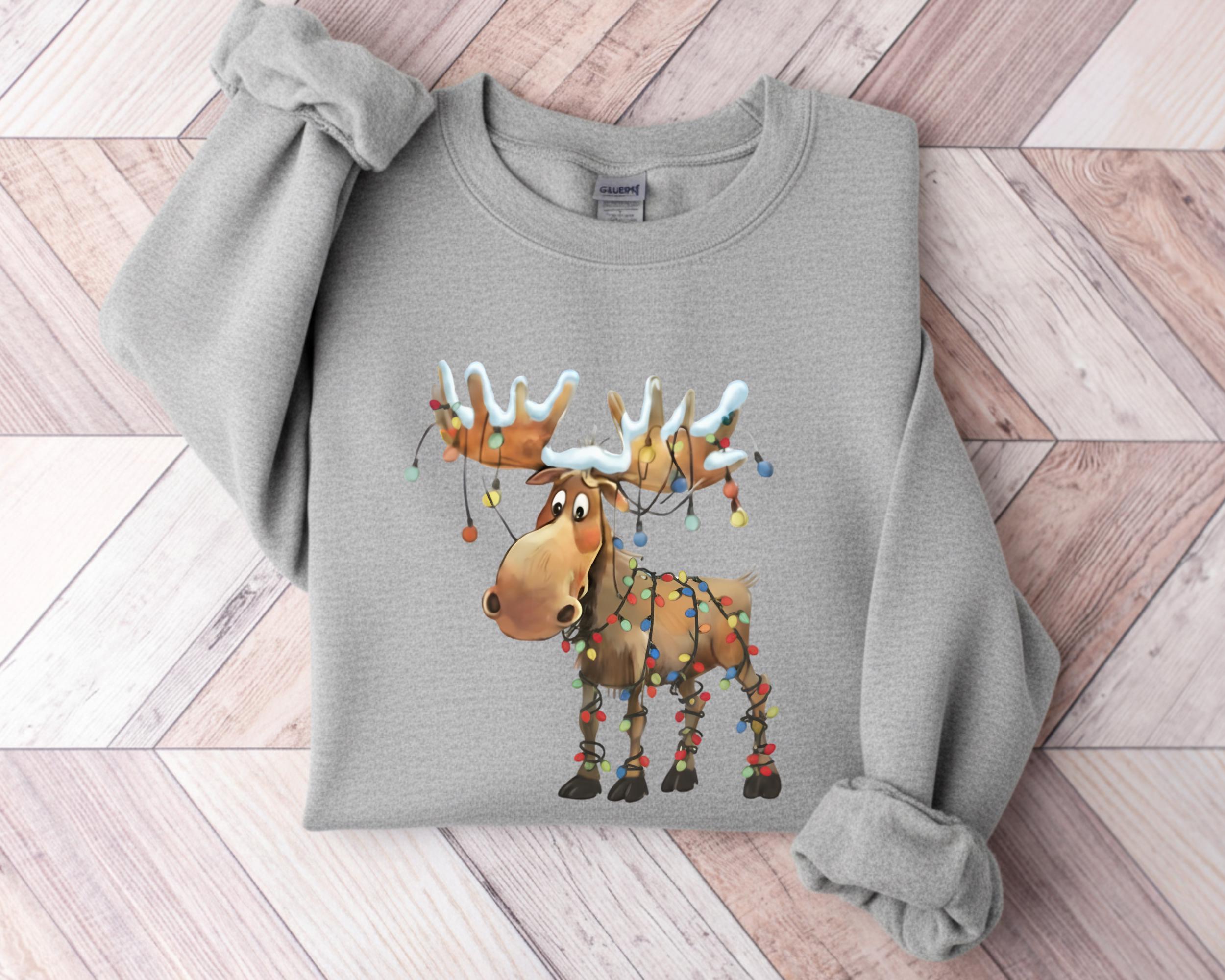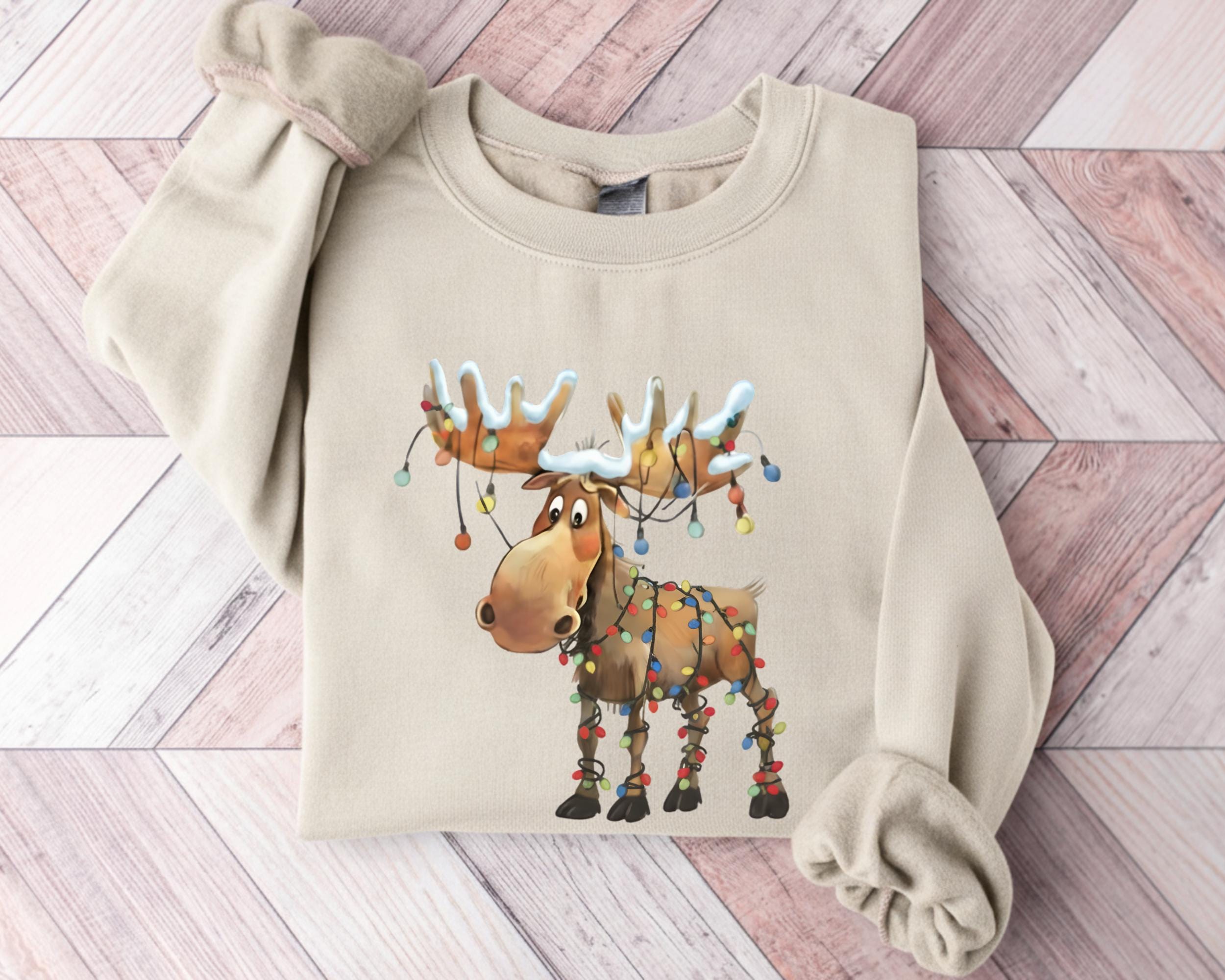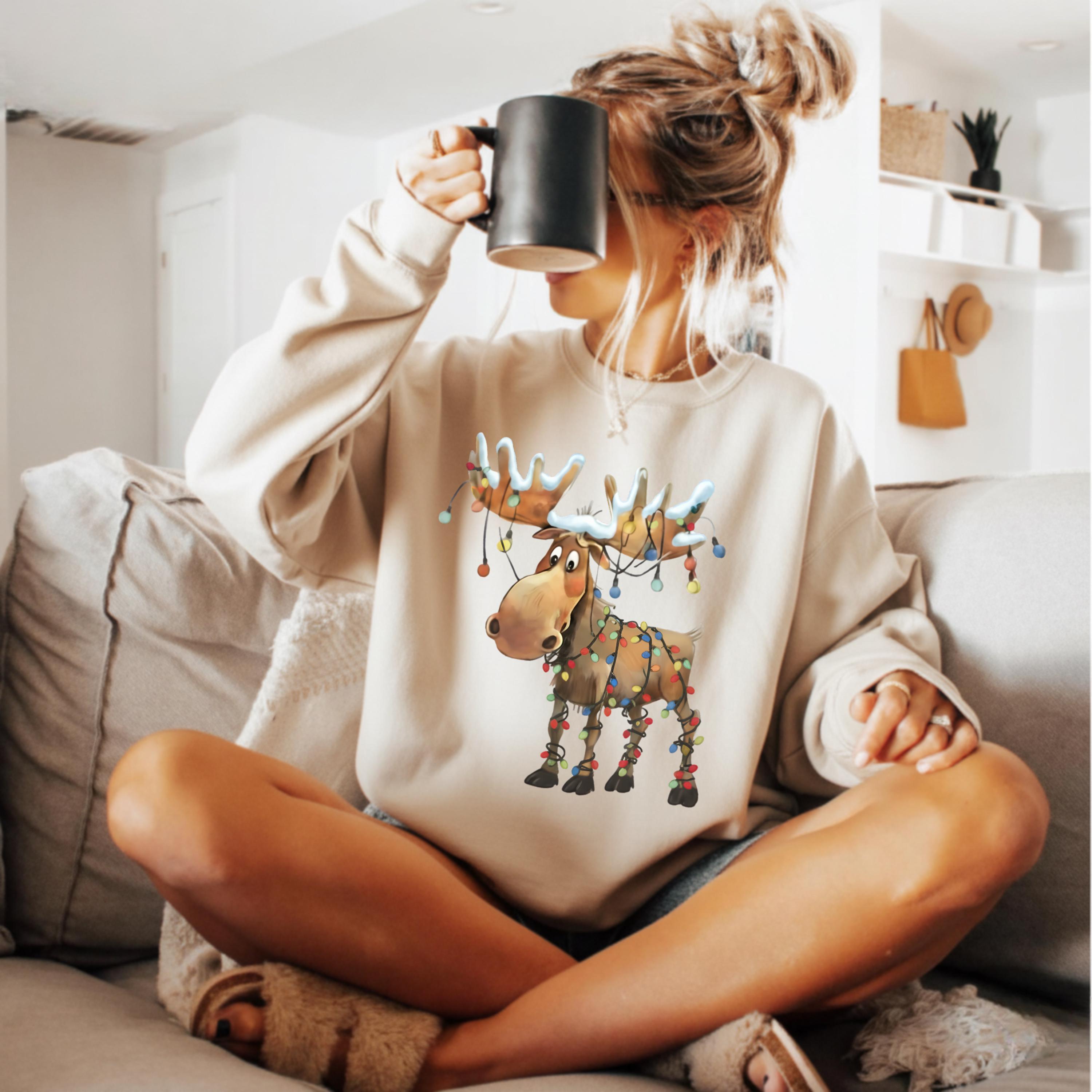 This retro reindeer sweatshirt is ideal for anyone who loves cozy Christmas vibes — reindeer lovers, matching holiday crews, or as a cute winter gift.