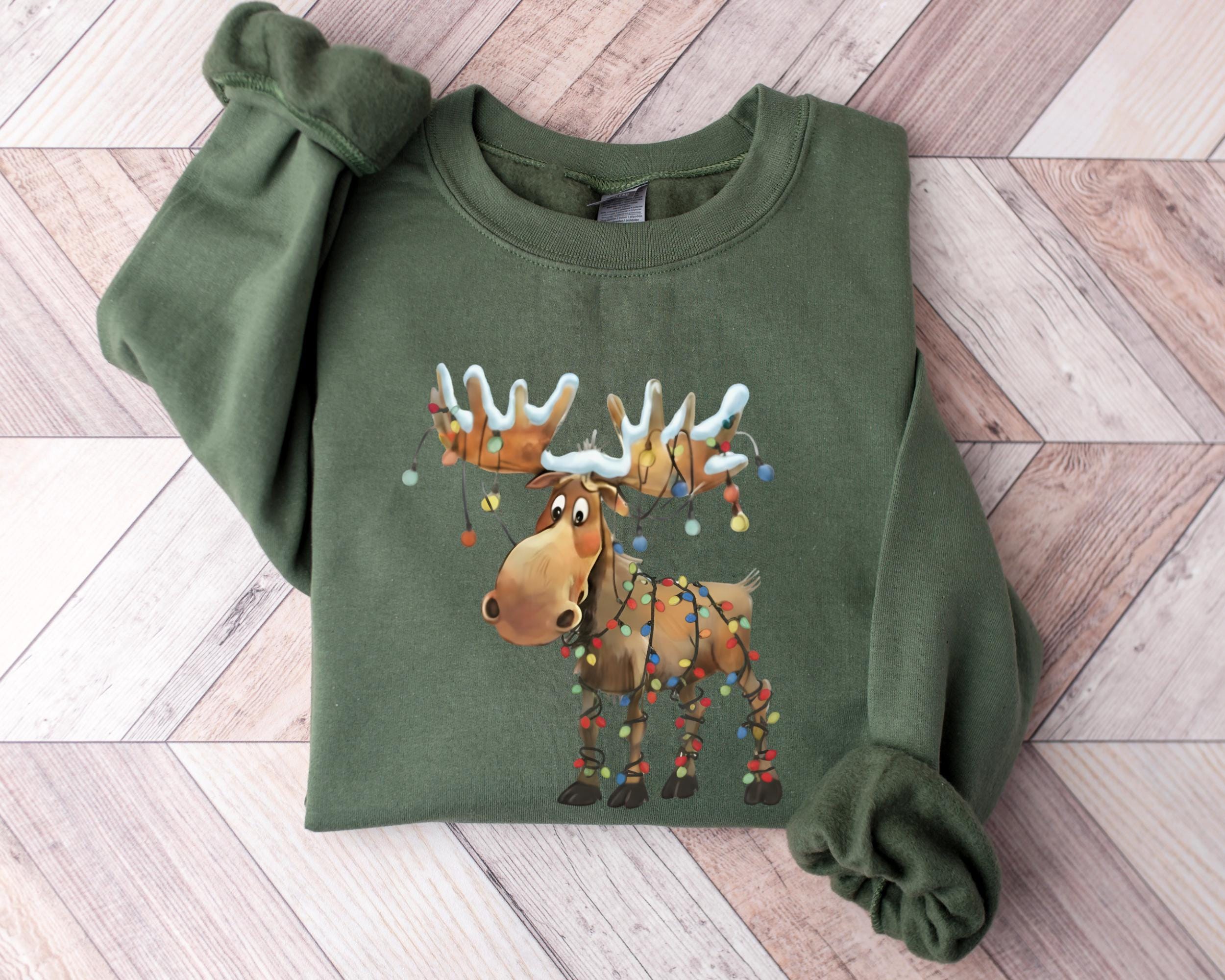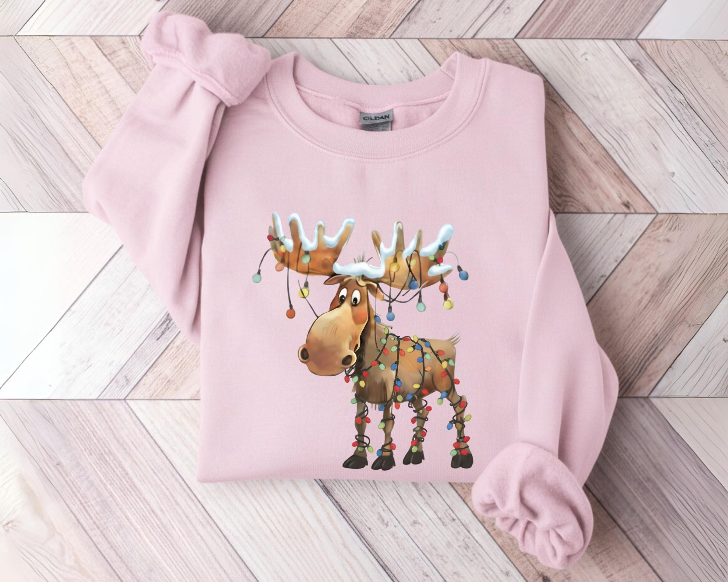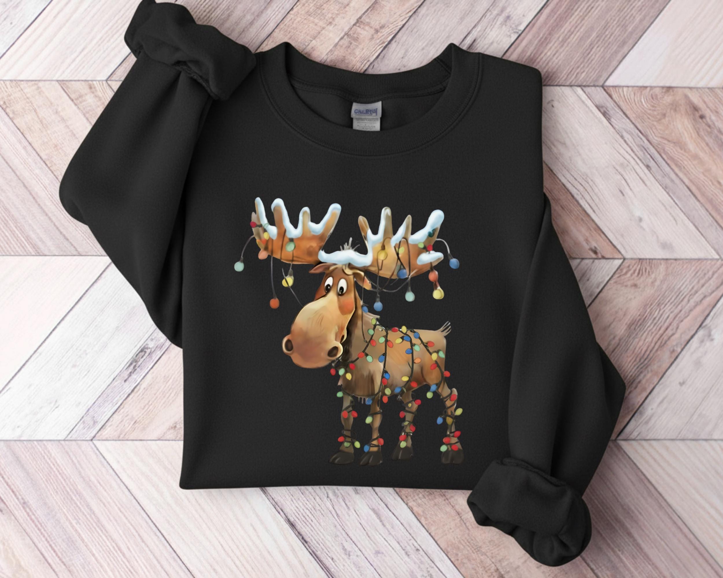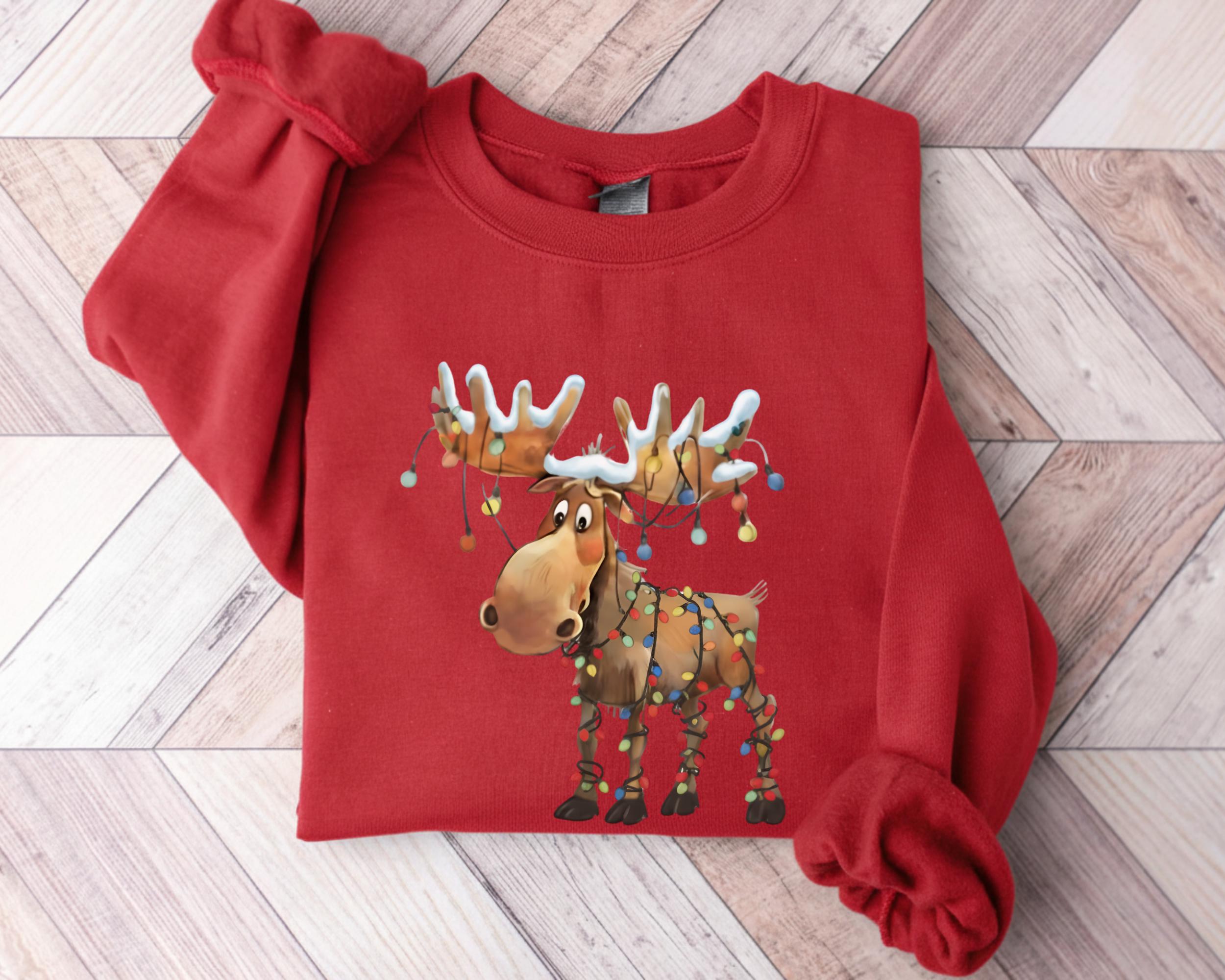 This retro reindeer sweatshirt is ideal for anyone who loves cozy Christmas vibes — reindeer lovers, matching holiday crews, or as a cute winter gift.