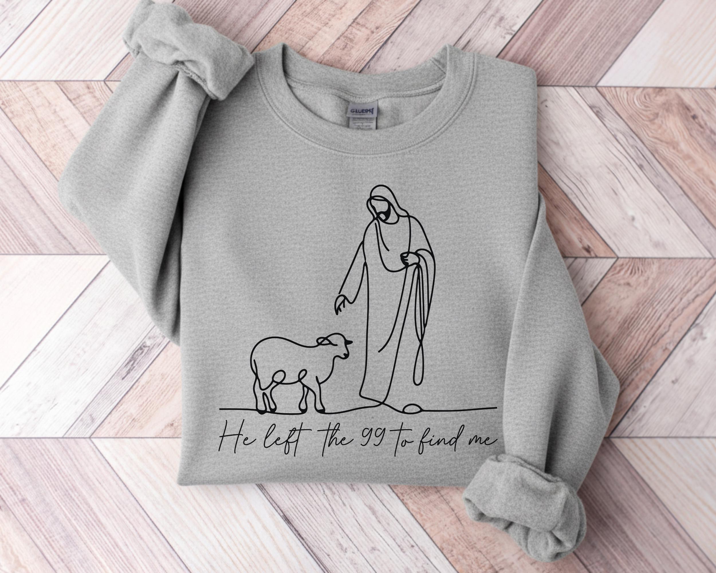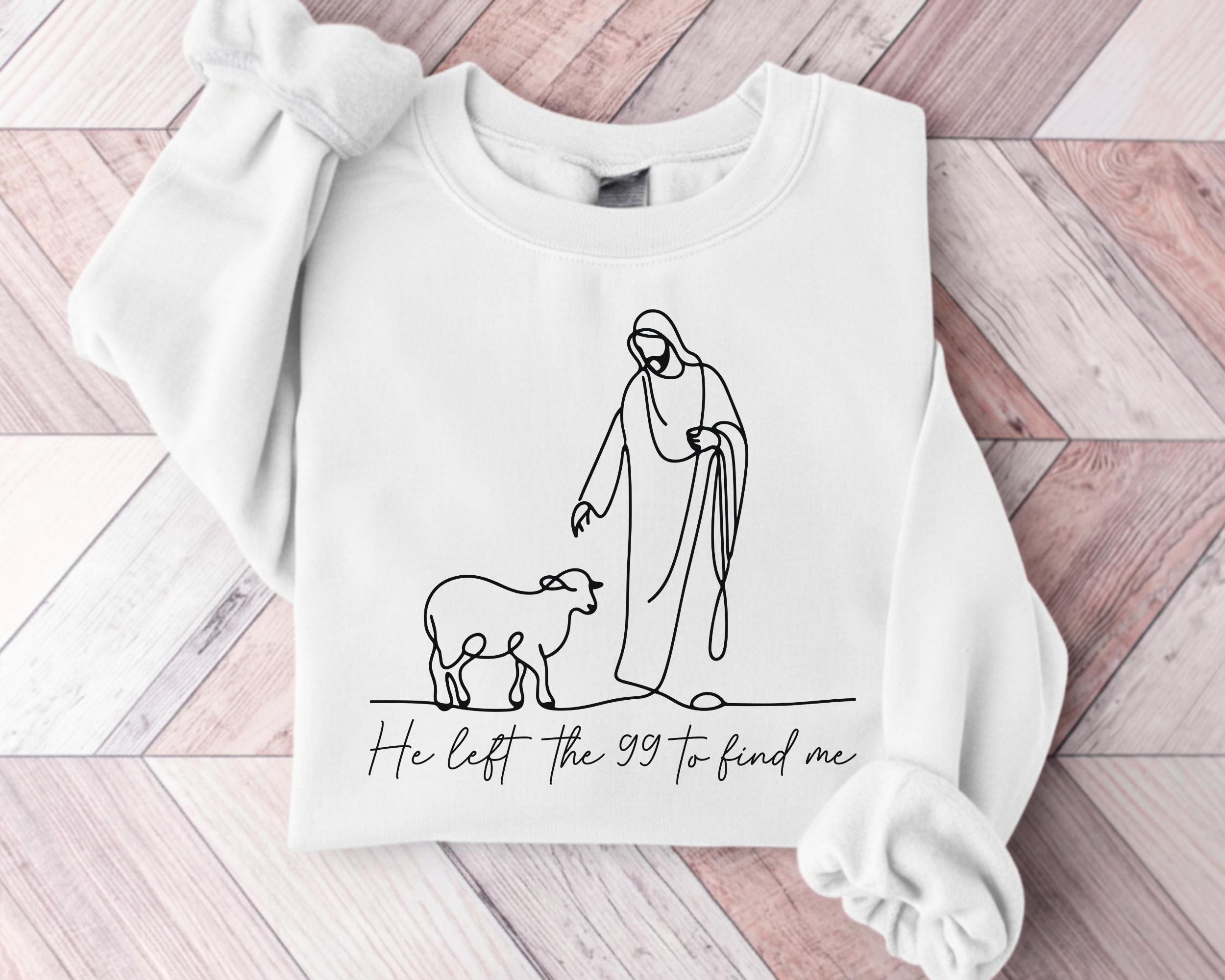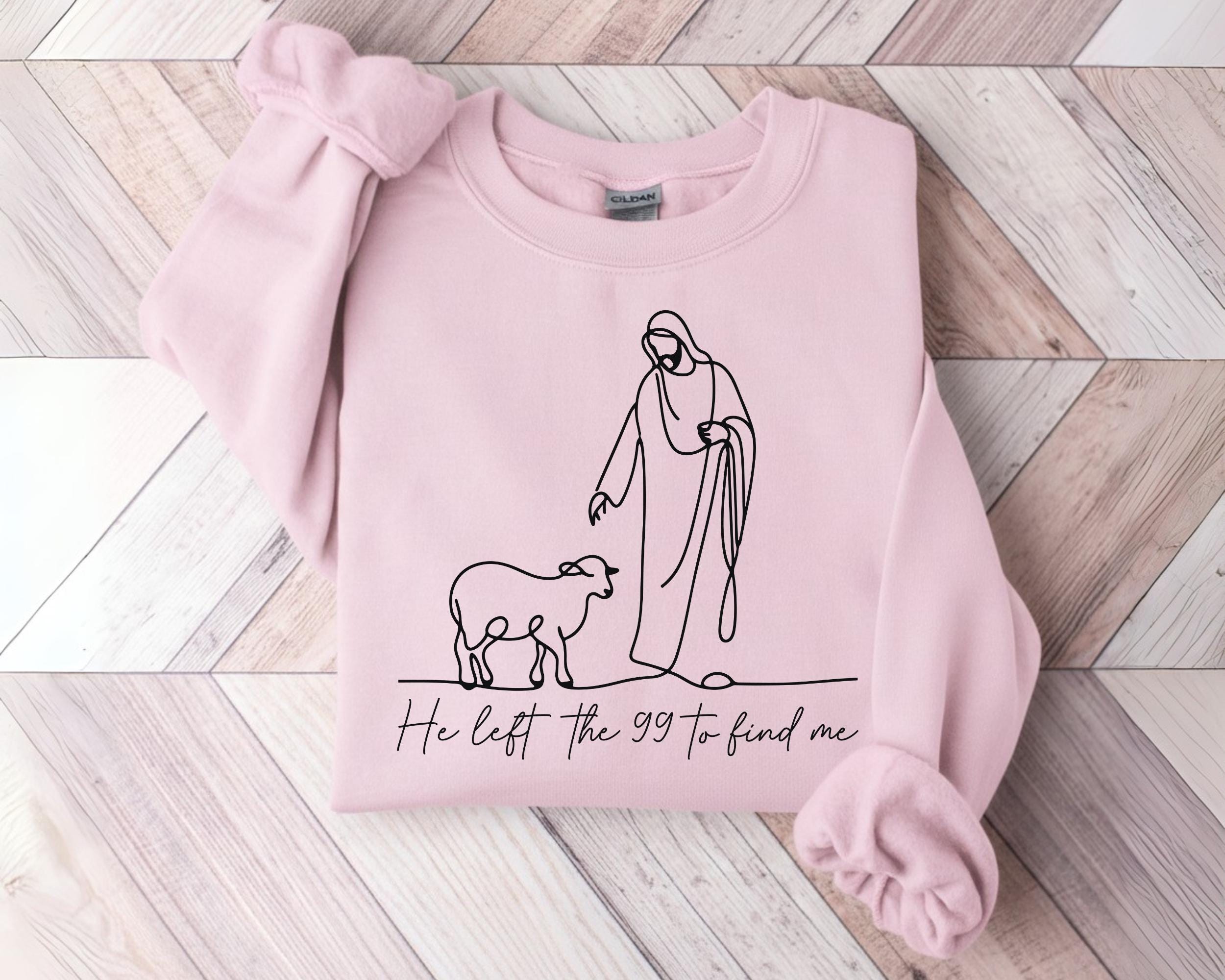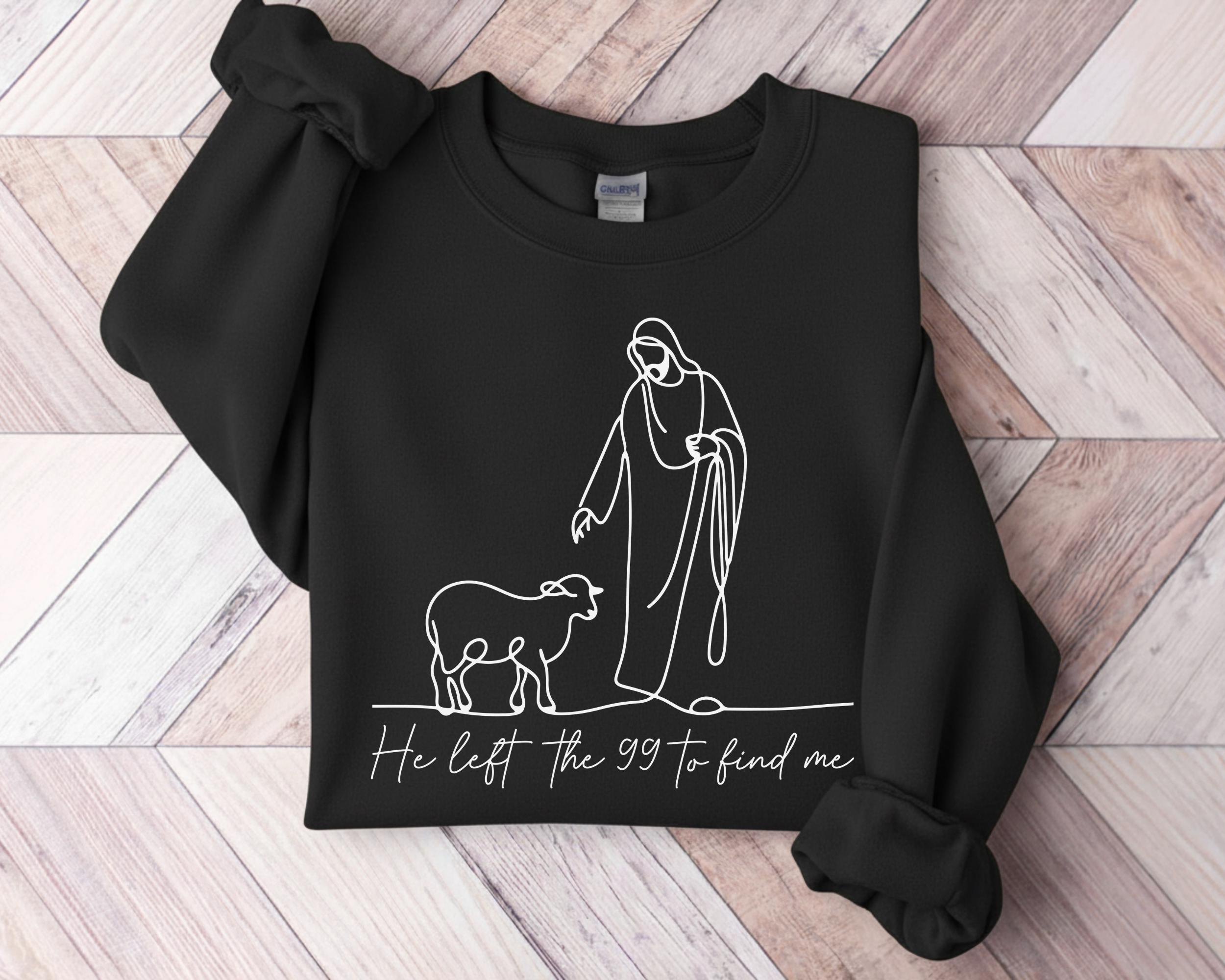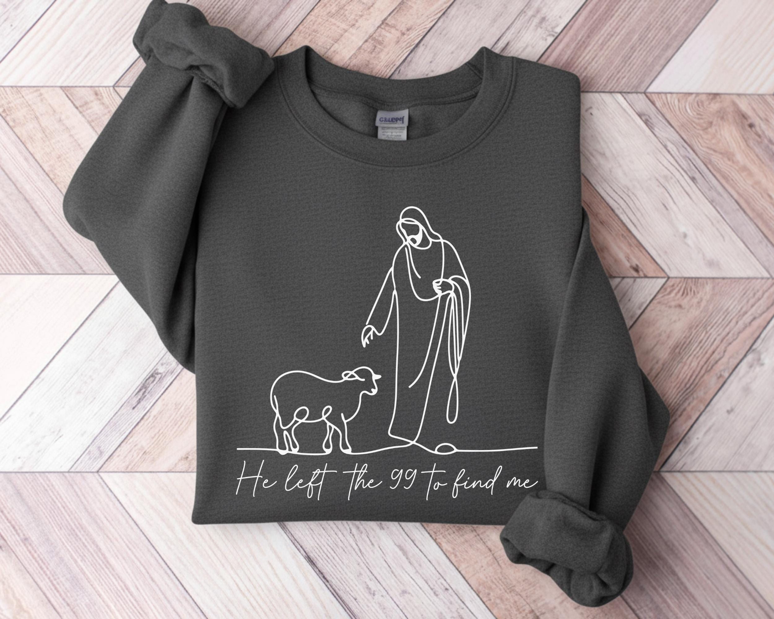 He Left the 99 to Find Me Sweatshirt, Christian Minimalist Shirt, Bible Verse Sweater, Religious Graphic Tee, Faith Gift for Women