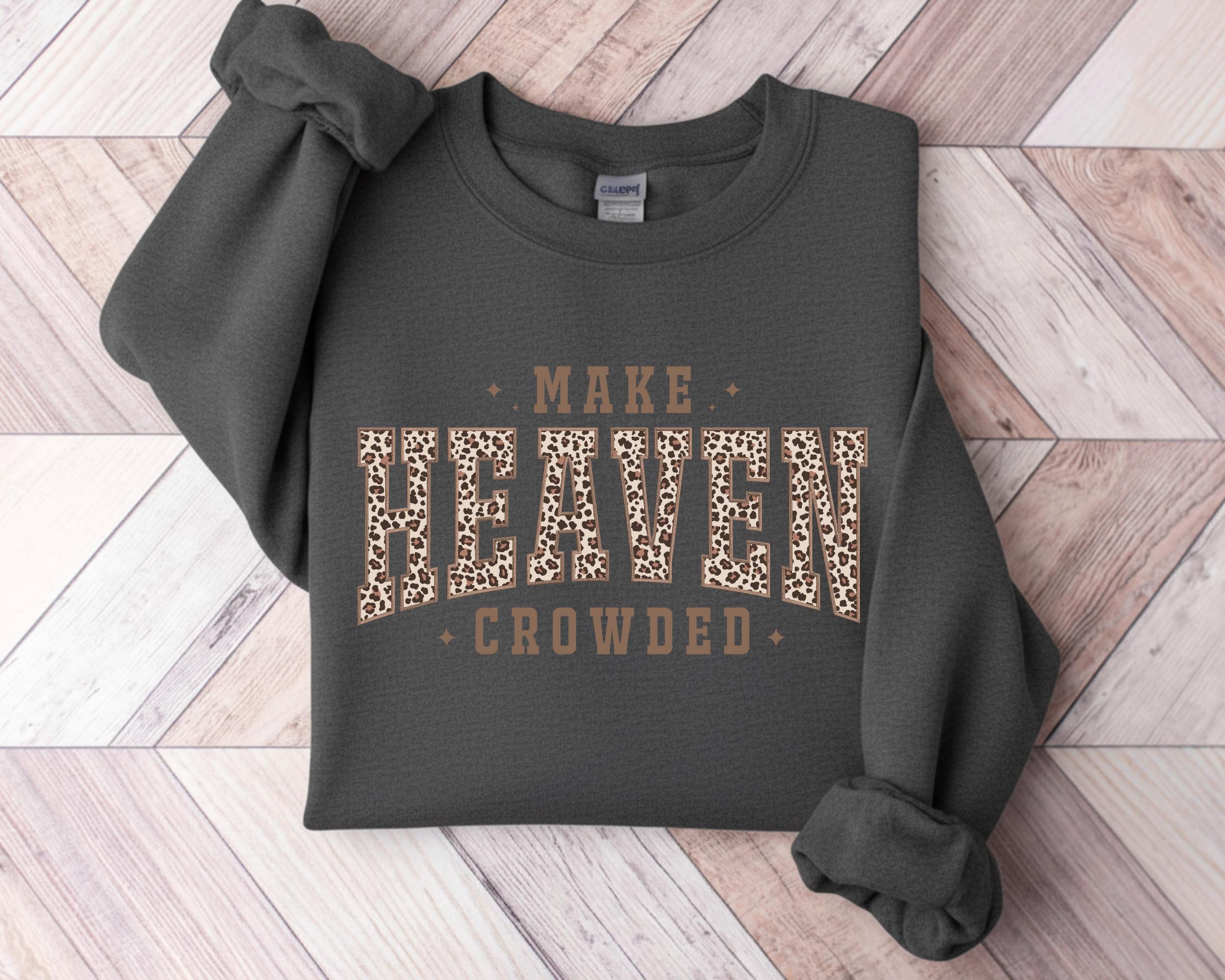 Make Heaven Crowded Sweatshirt, Christian Leopard Sweatshirt, Christian Fall Crewneck, Christmas Gift for Women, Holiday Bible Verse Shirt