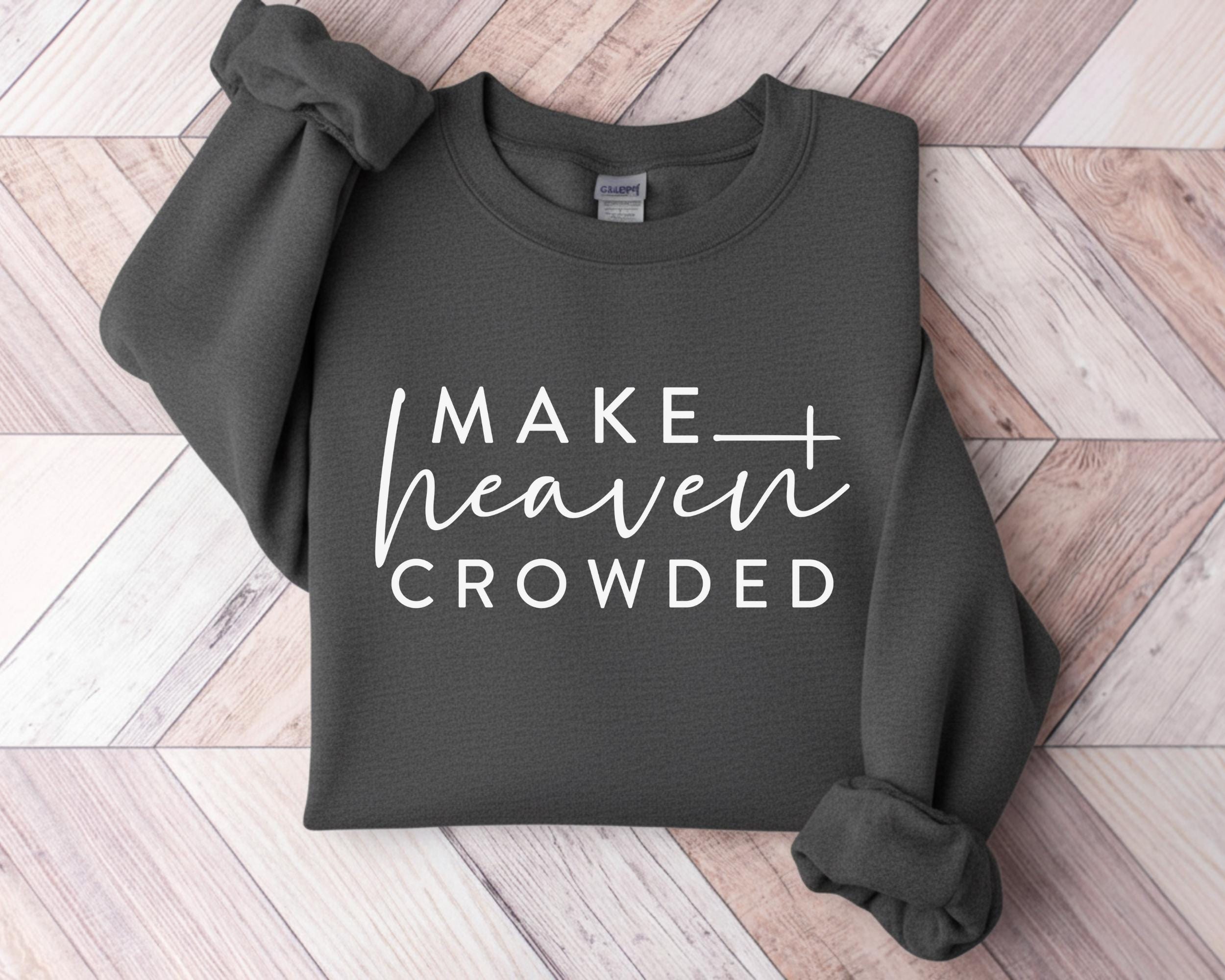 Religious Women Sweatshirt, Make Heaven Crowded Christian Sweater, Faith Tee, Bible Verse, Religious Mom Gift,