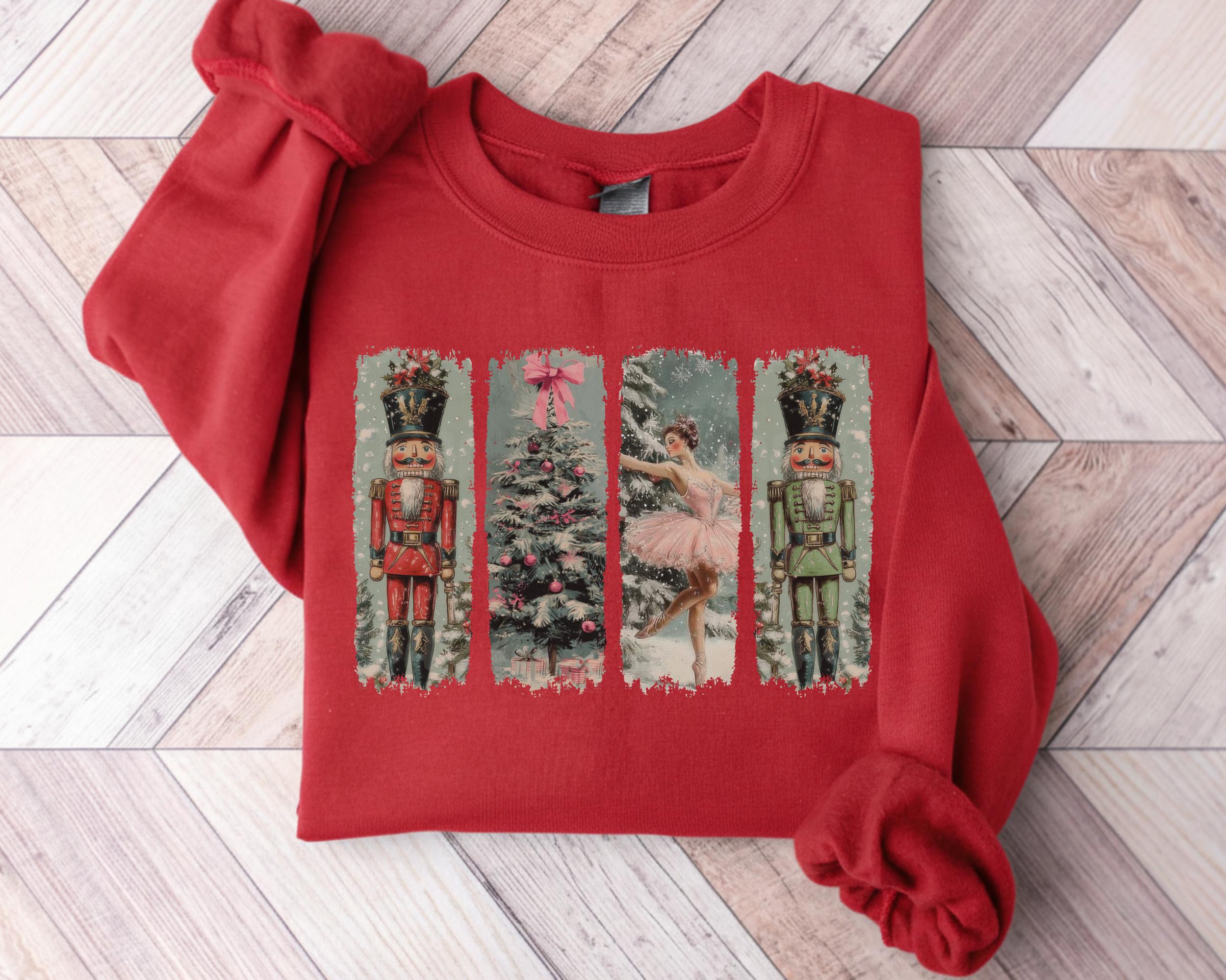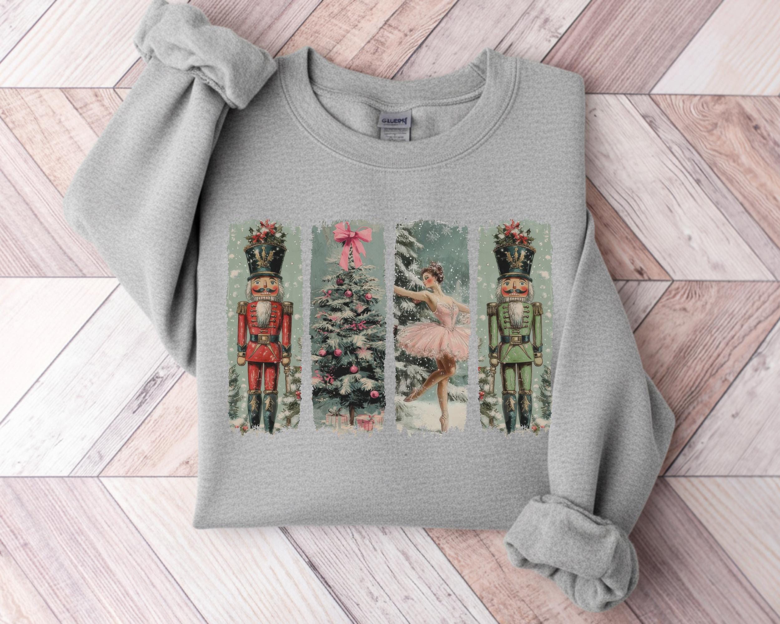 Vintage Christmas Crew Neck Sweatshirt, Retro Nutcracker Sweater, Gildan Christmas Jumper, Cozy Holiday Sweatshirt Gift