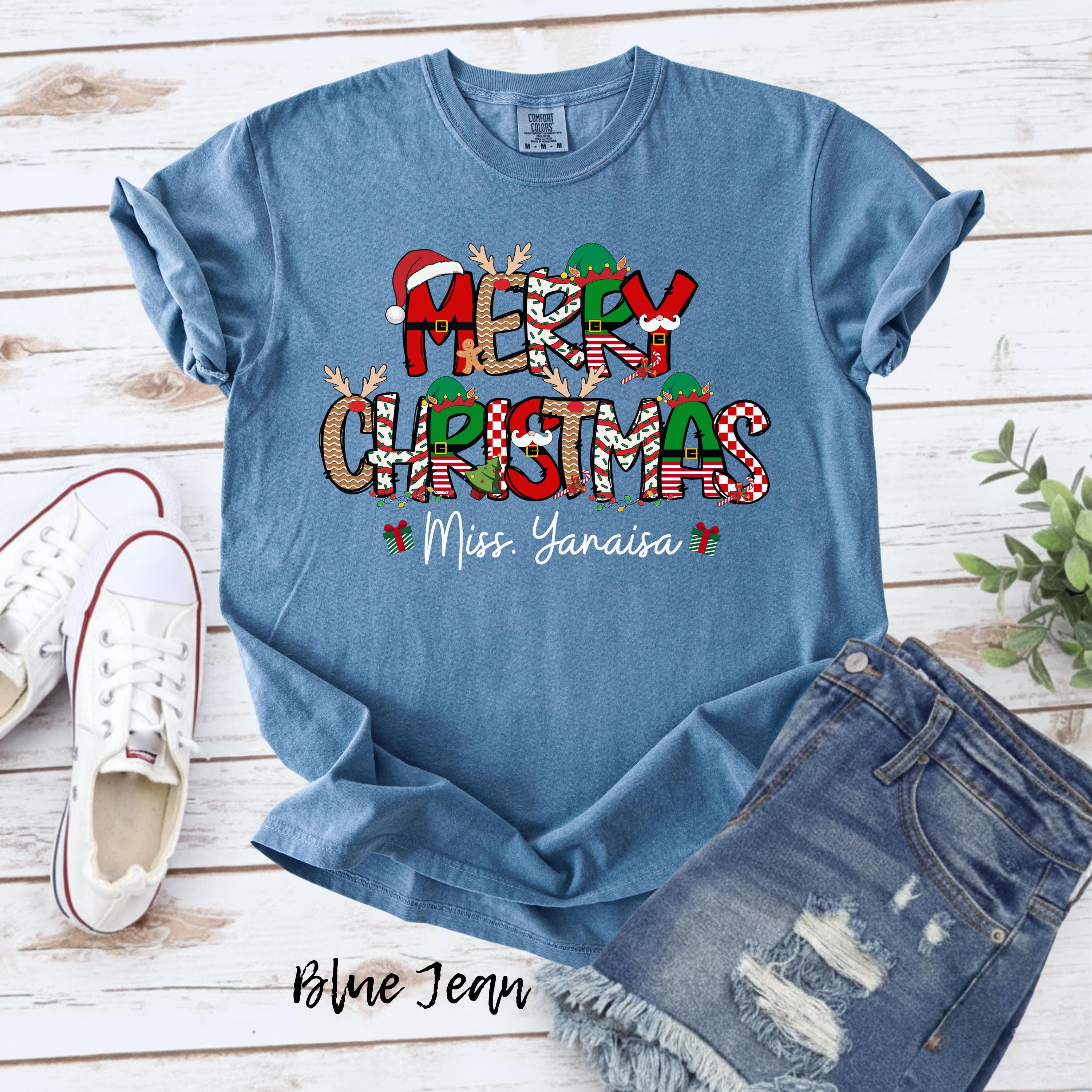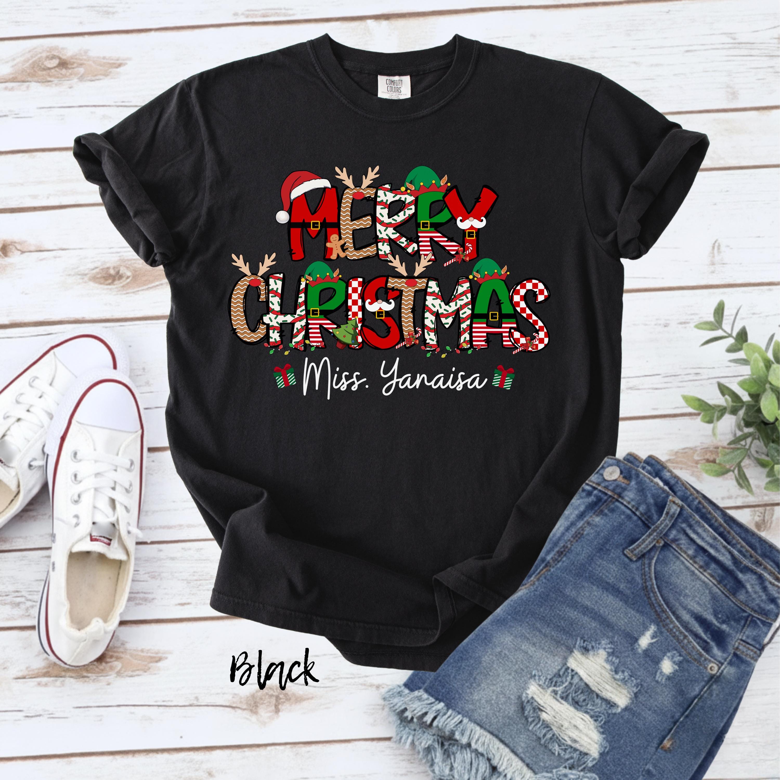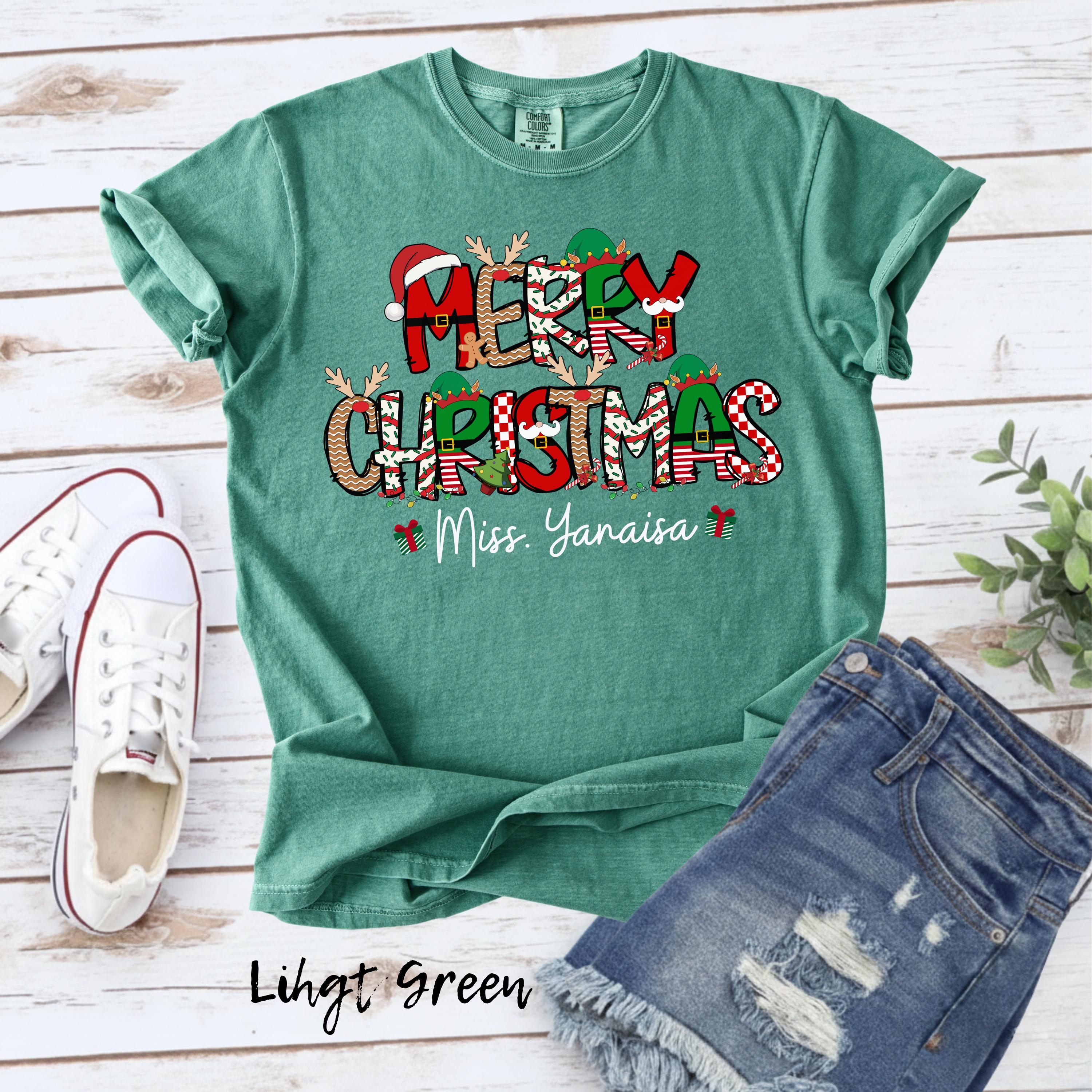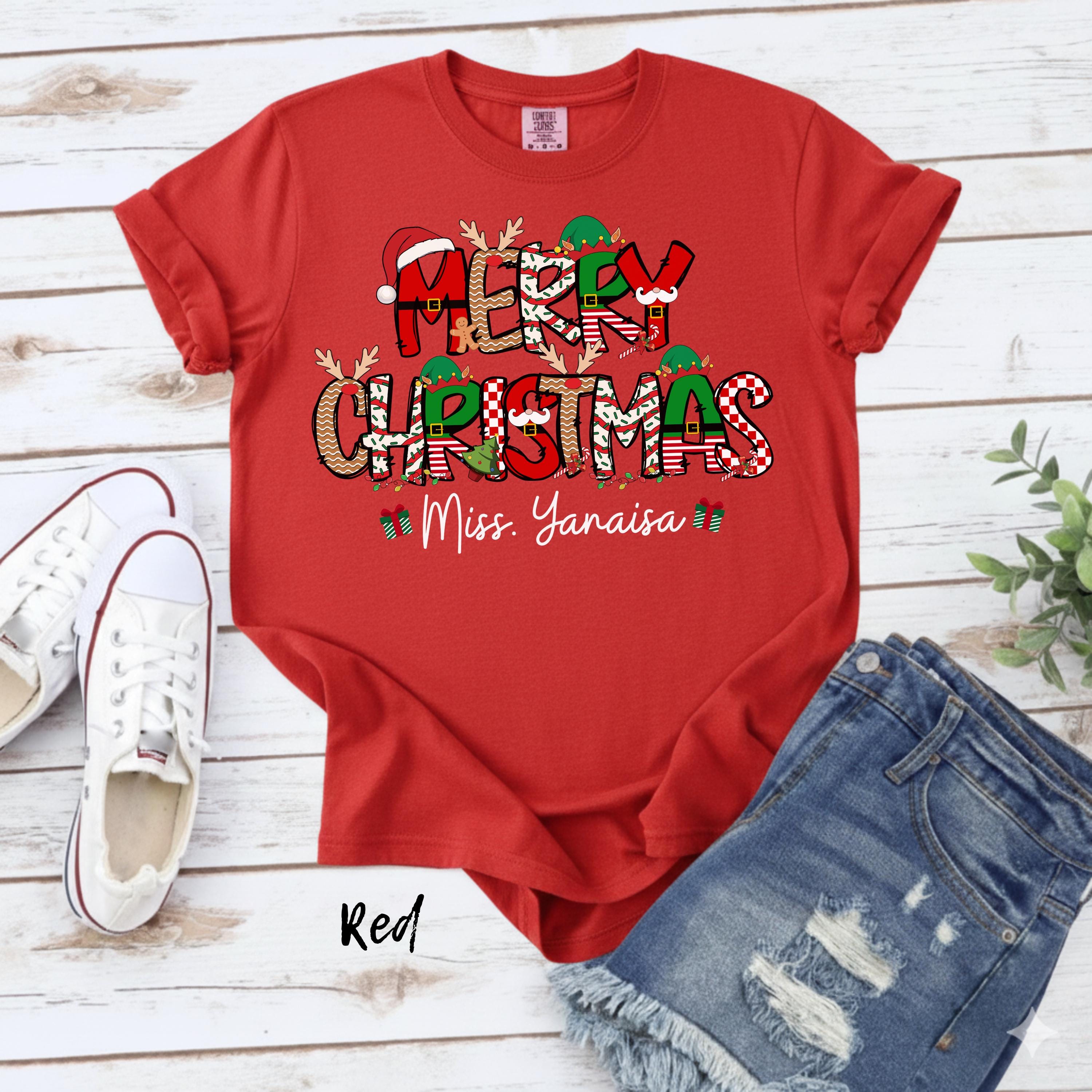Merry Christmas Teacher Shirt, Personalized Teacher Christmas Tee, Custom Name Christmas Shirt, Cute Holiday Teacher Shirt, Xmas Gift Top