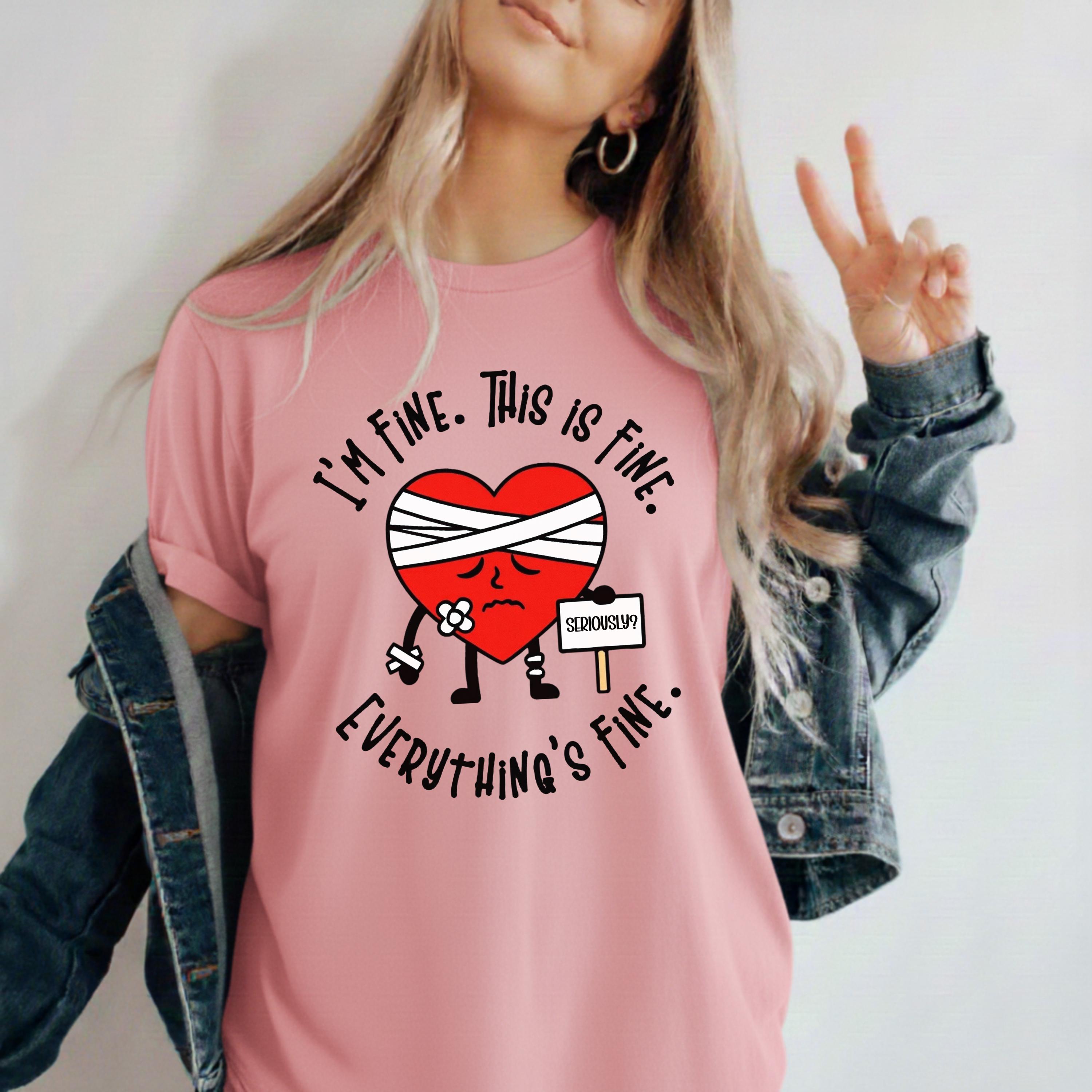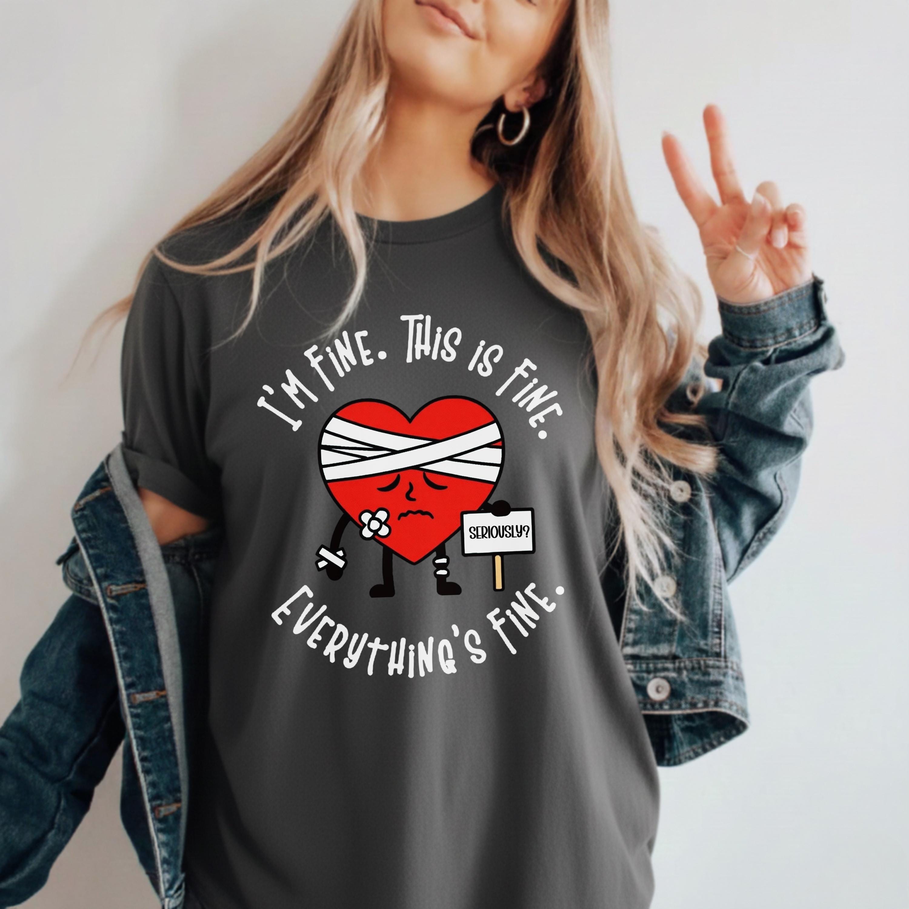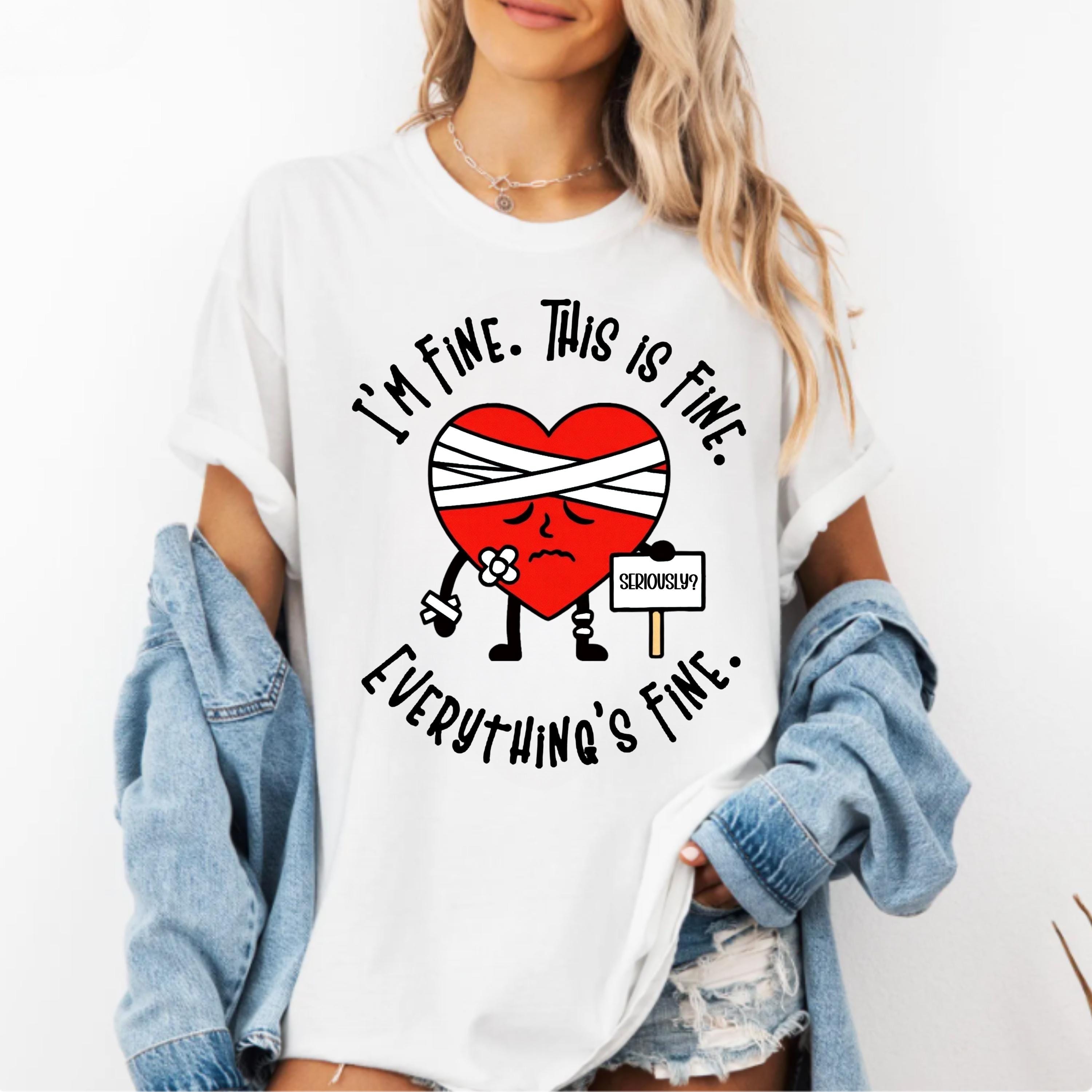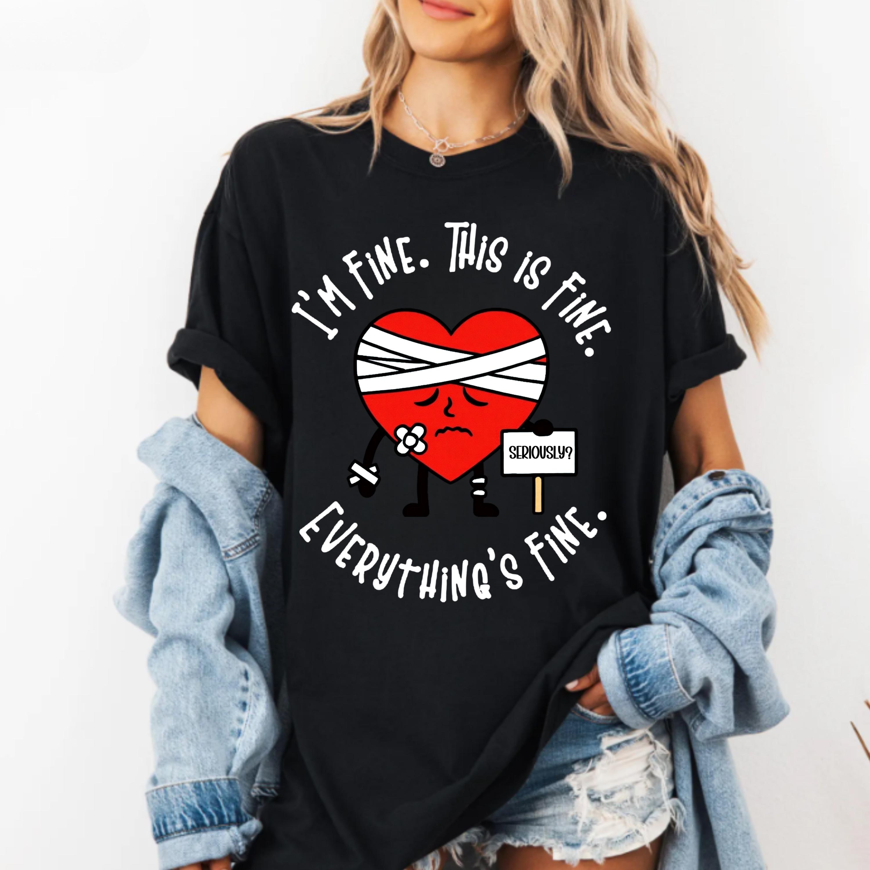 If you have any questions about your Funny Valentine's Day graphic Shirt with the text "I'm fine, everything is fine" please send us a message, we will be happy to help you!